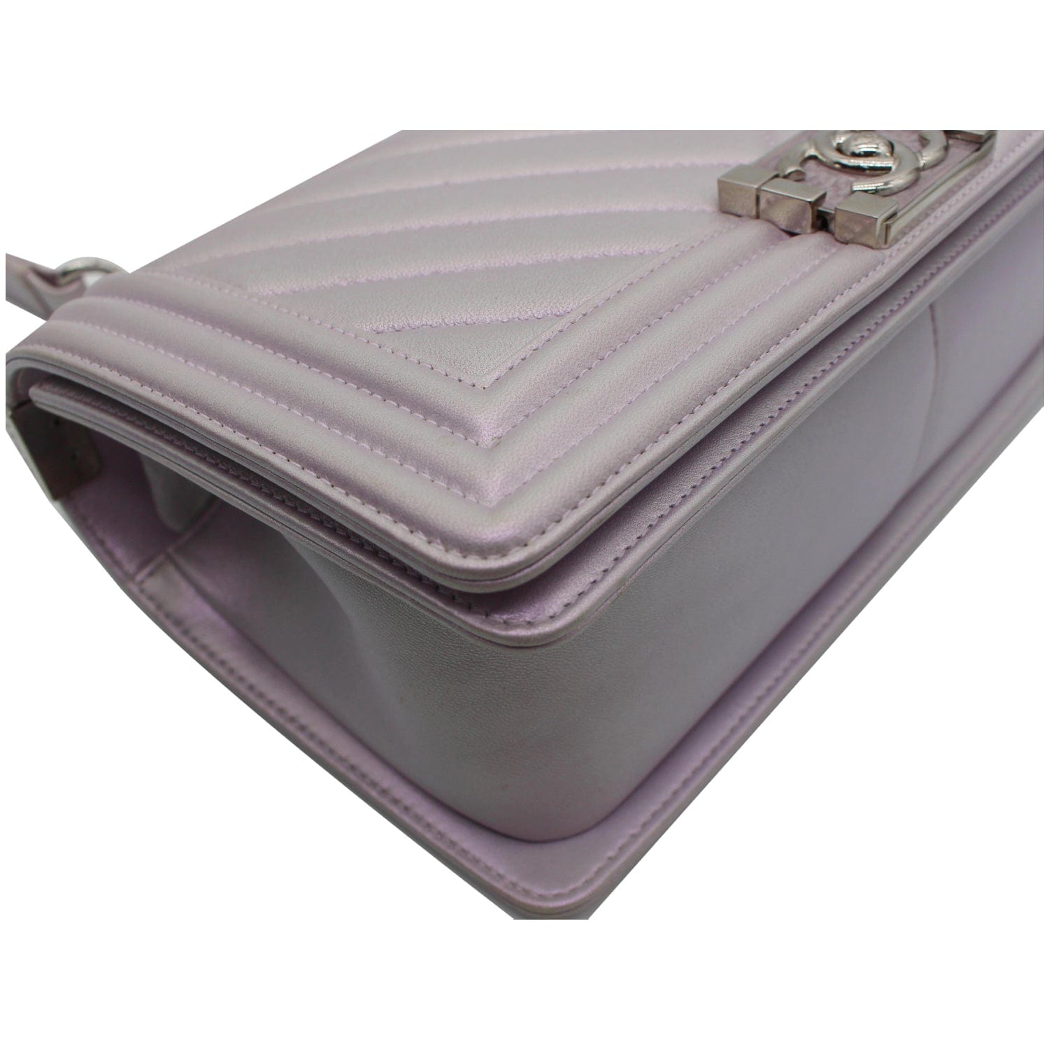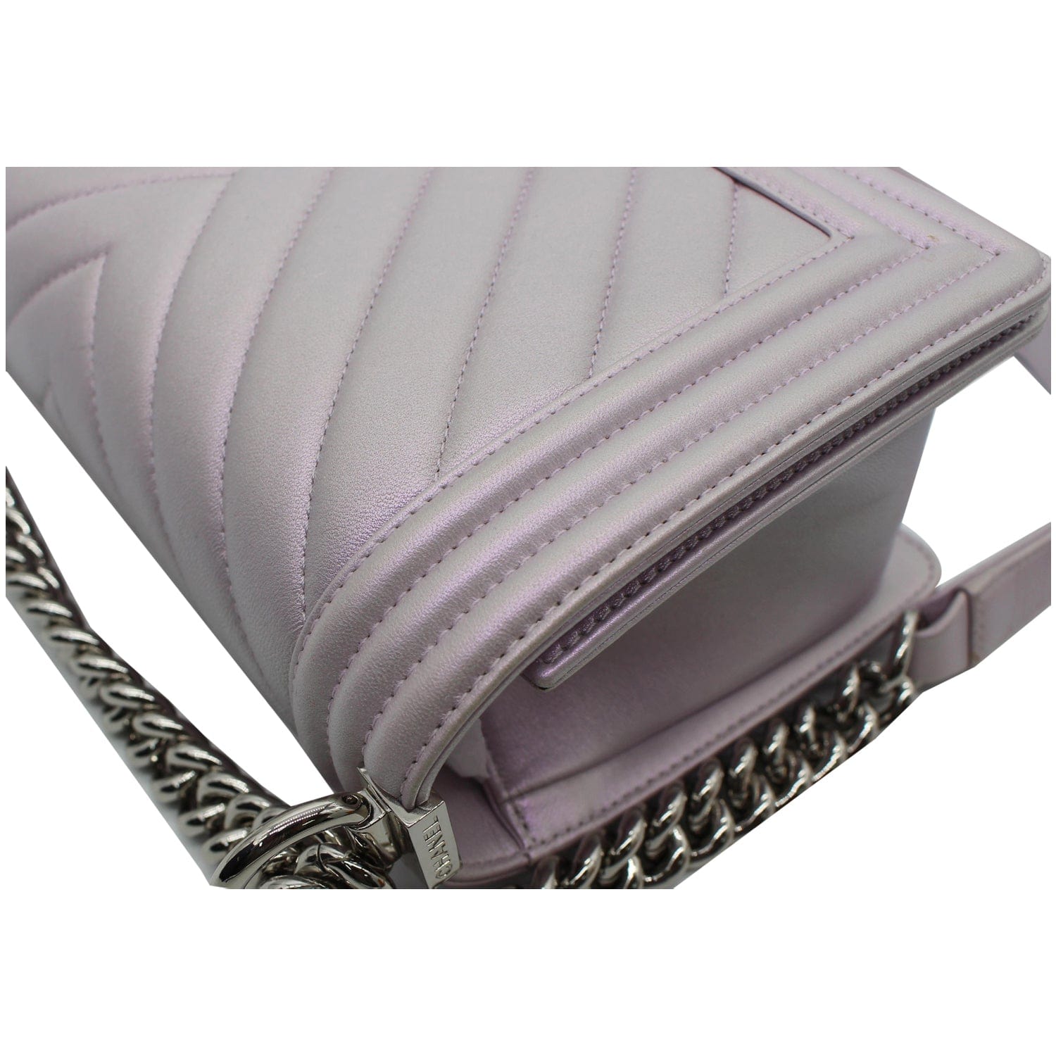 Medium Boy Flap Chevron Leather Shoulder Bag Iridescent Lilac