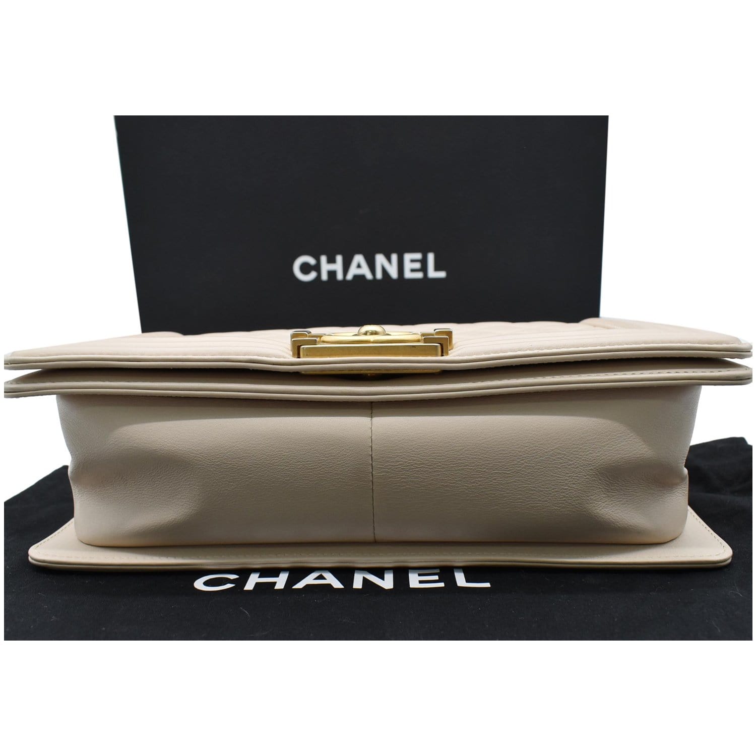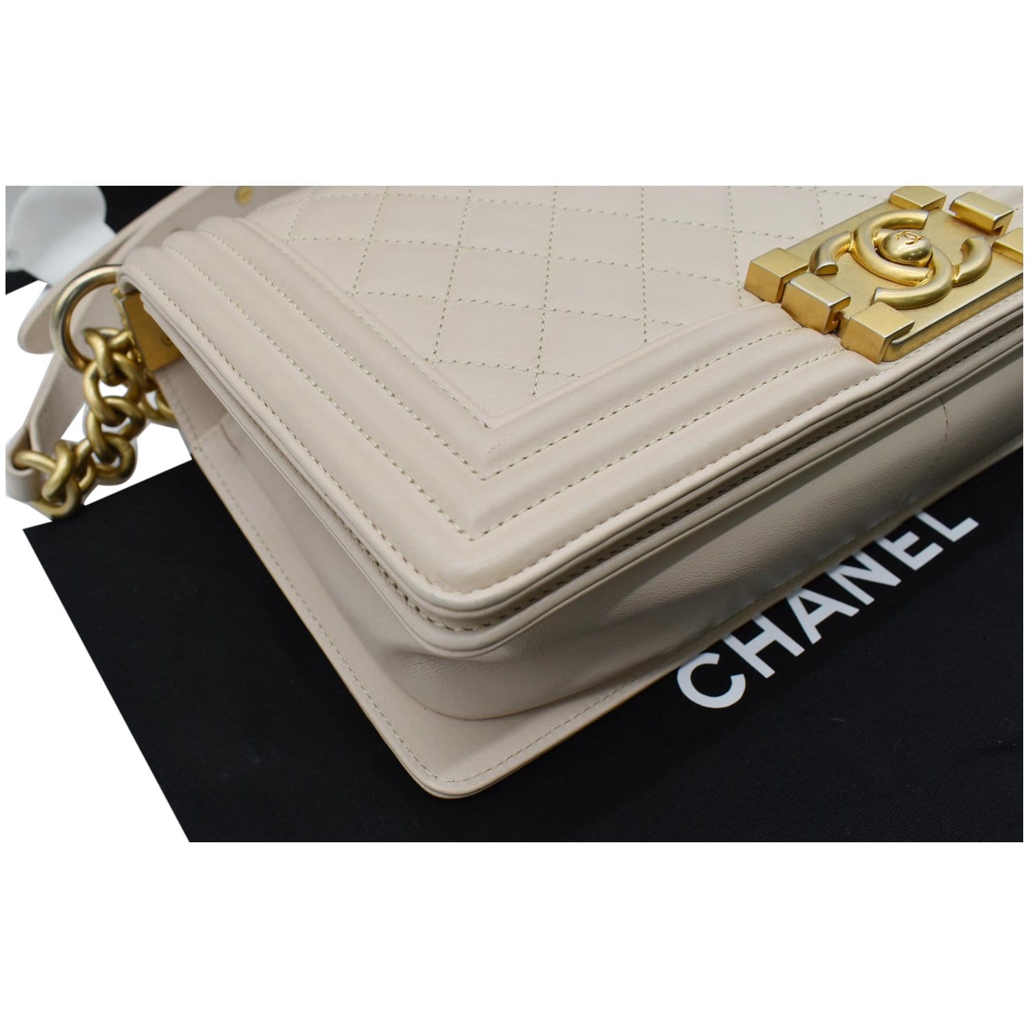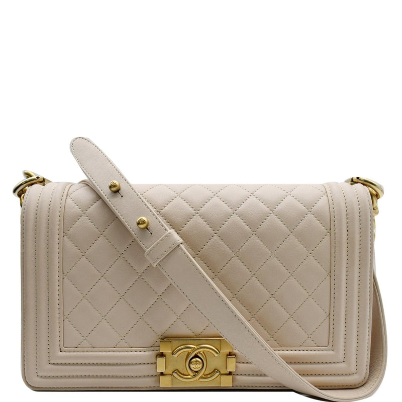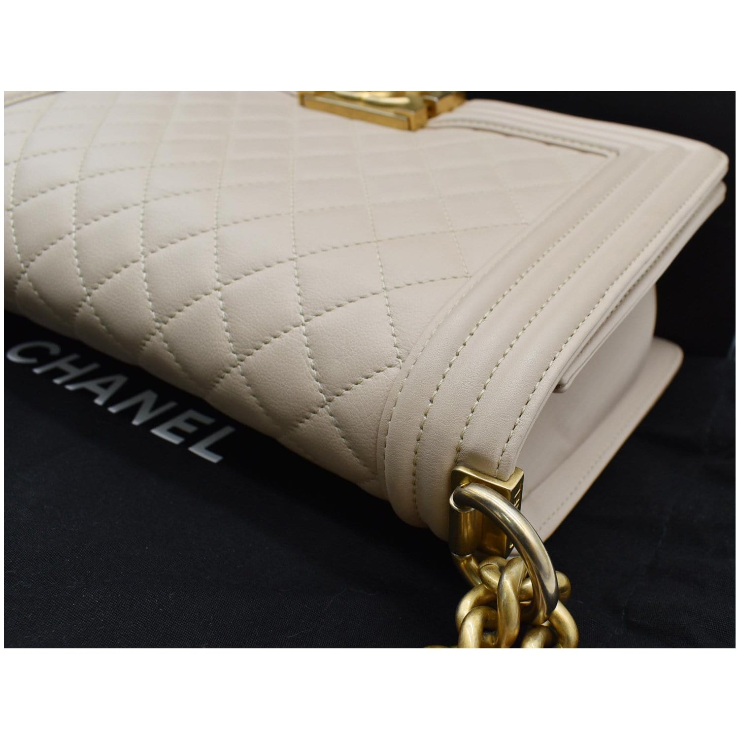 CHANEL Medium Boy Flap Calfskin Leather Shoulder Bag Light Cream