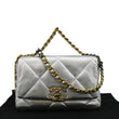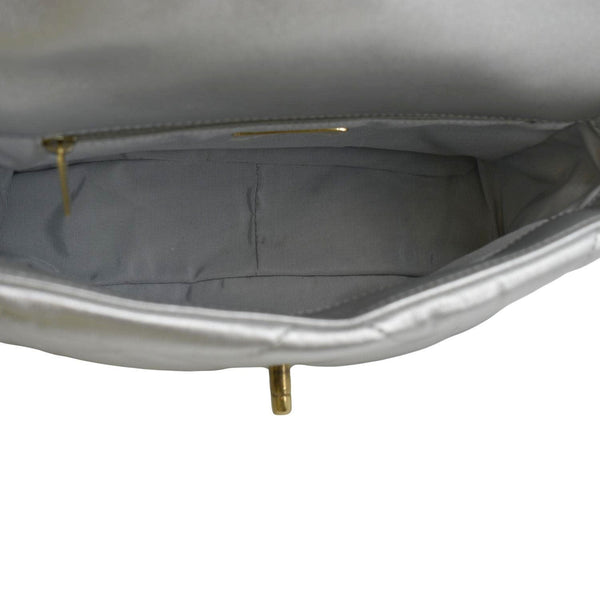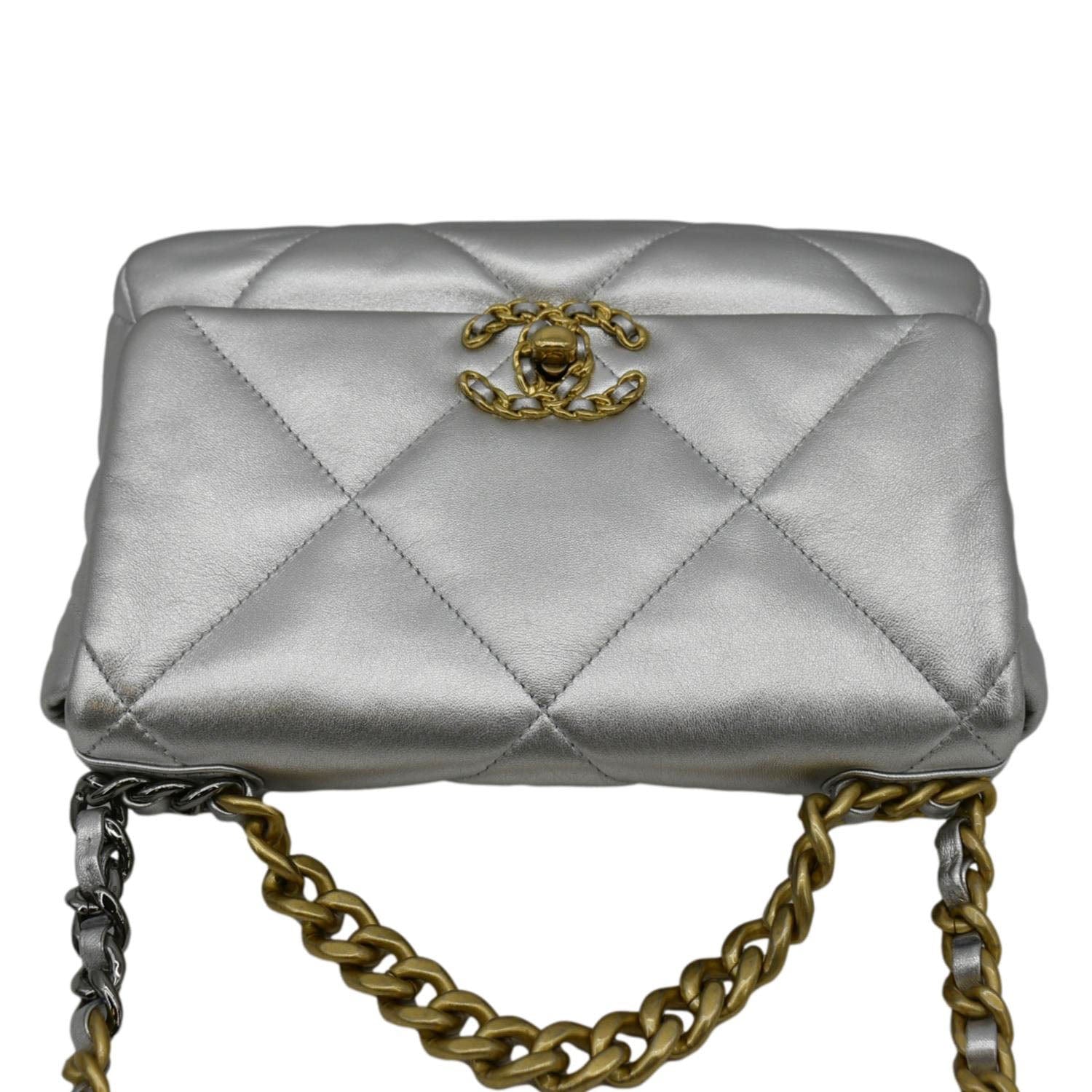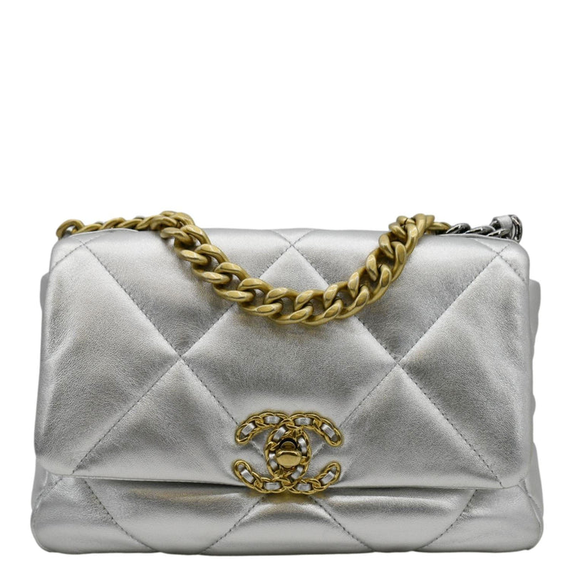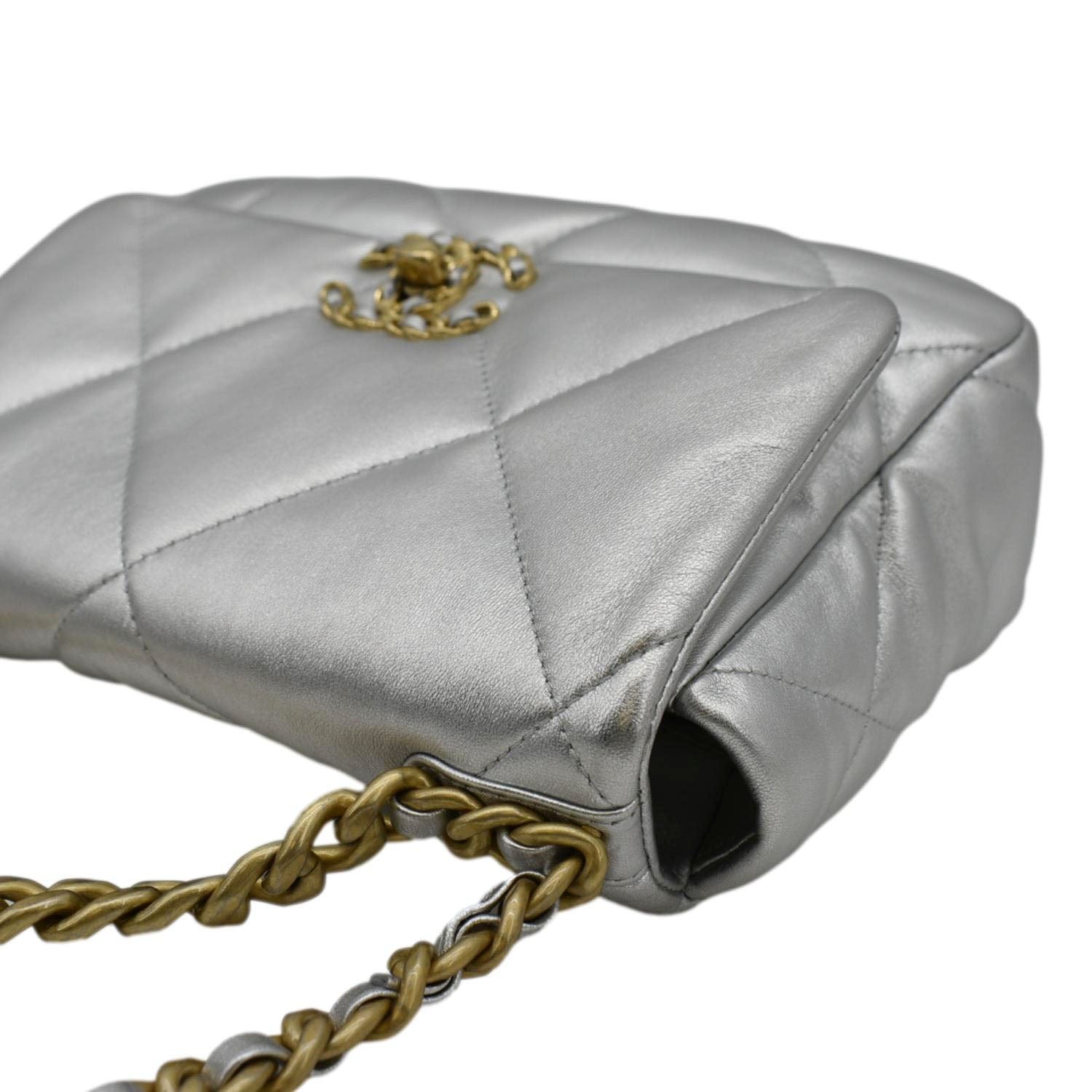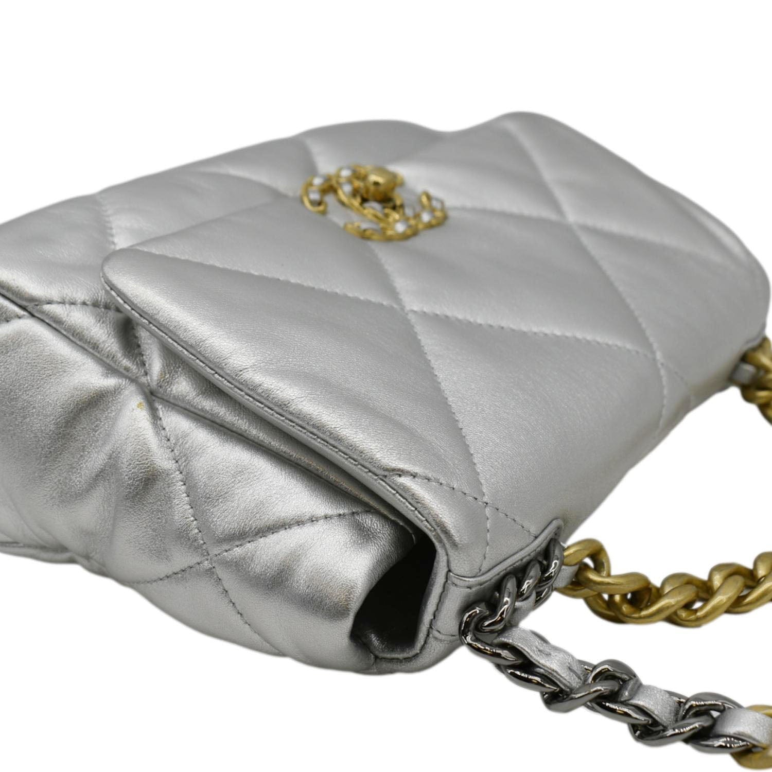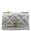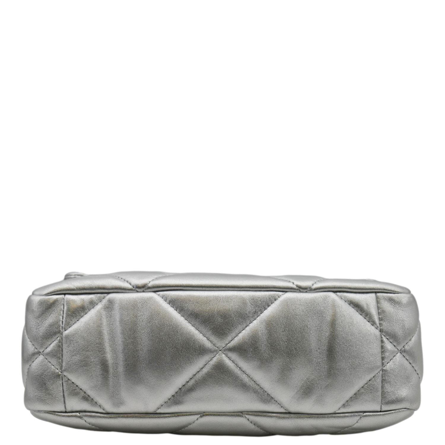 CHANEL 19 Medium Flap Quilted Leather Shoulder Bag Metallic Silver