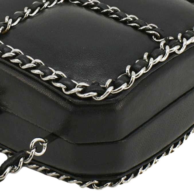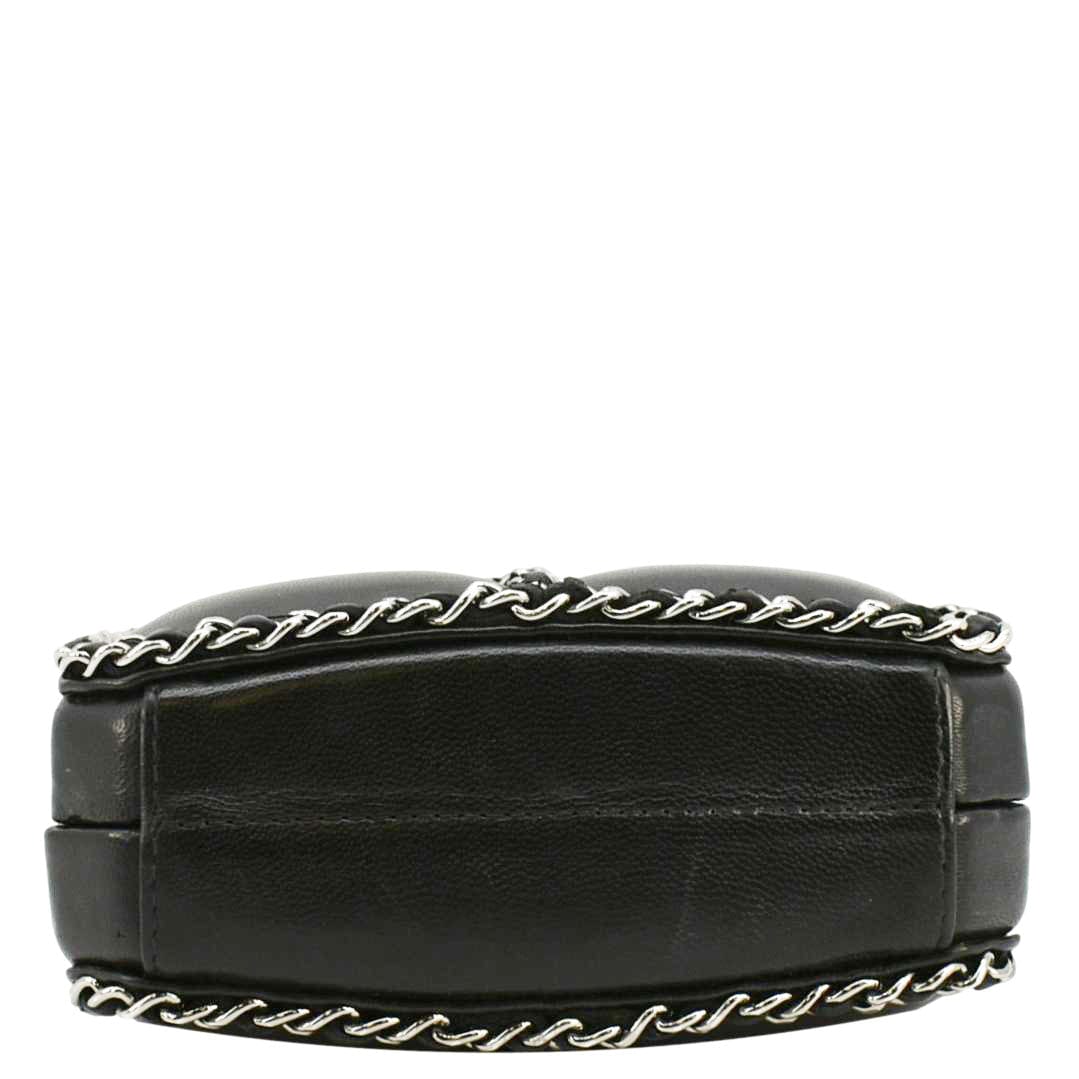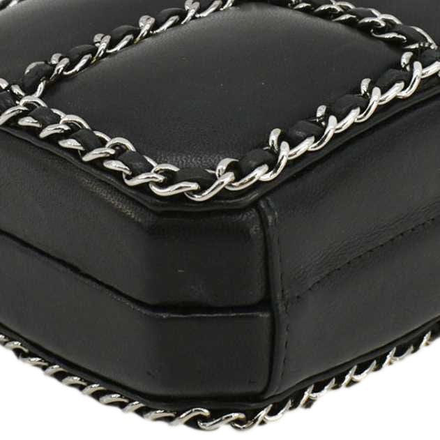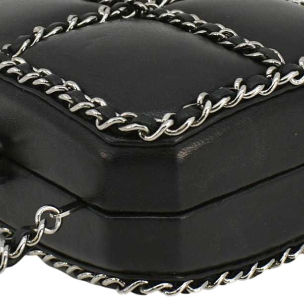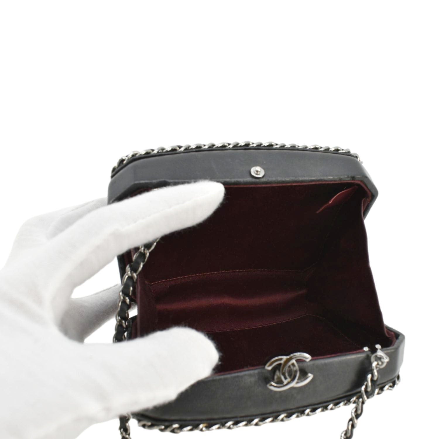 CHANEL Minaudiere Lambskin Leather Chain Clutch Crossbody Black