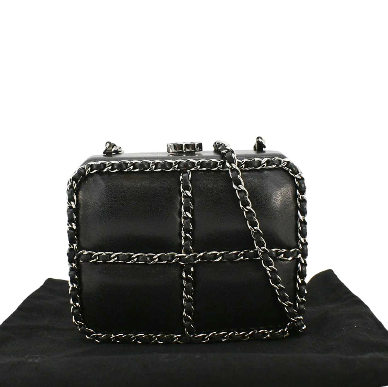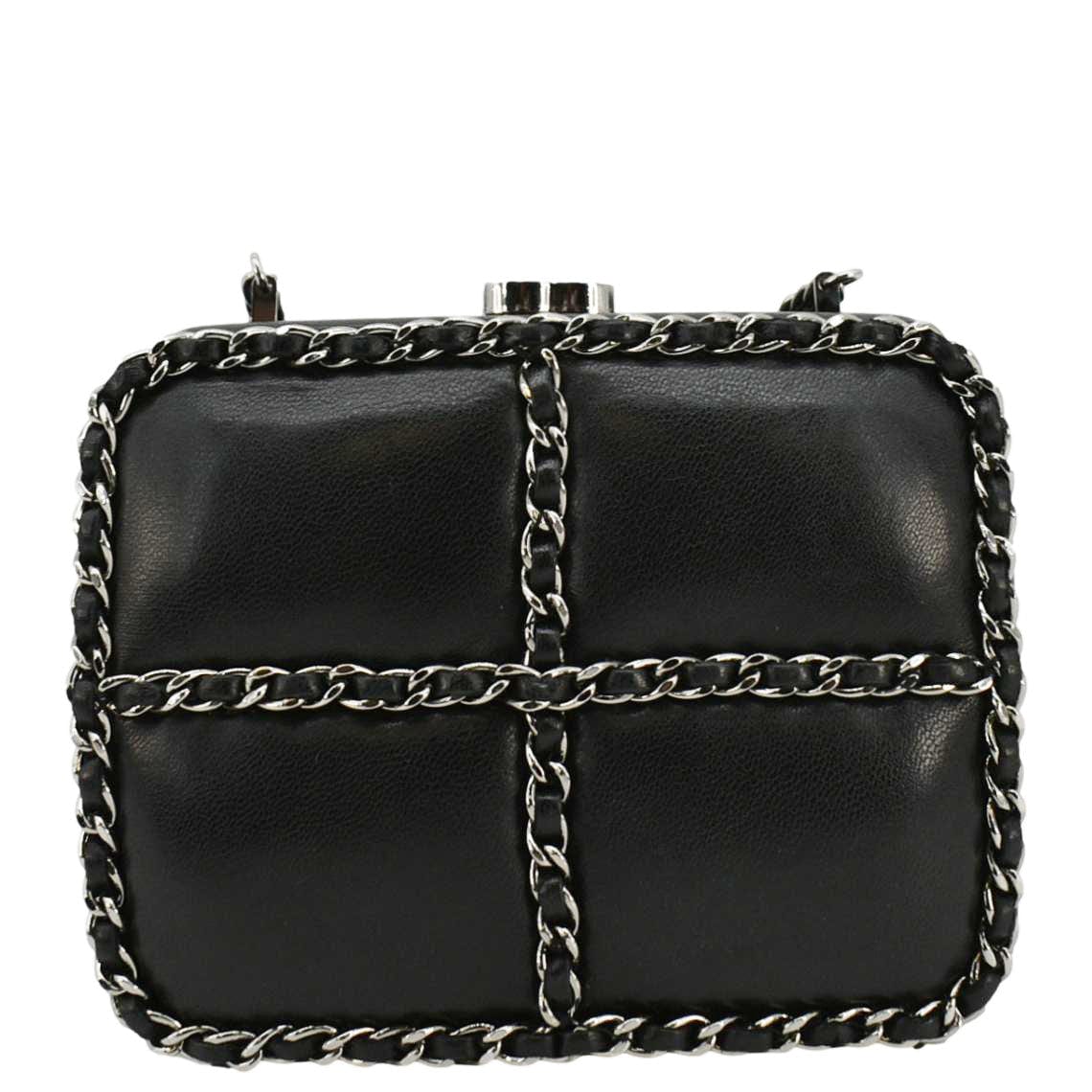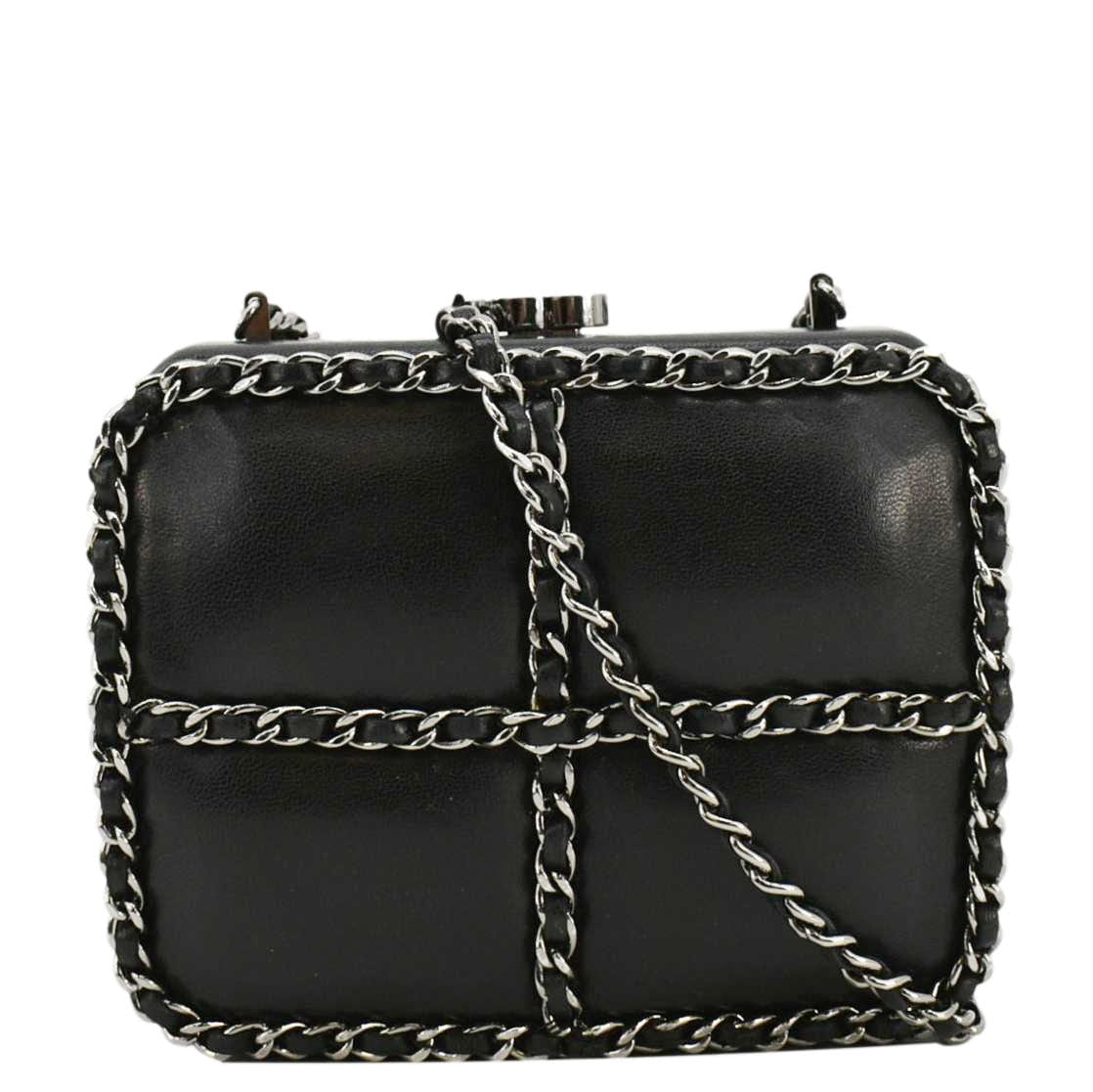 CHANEL Minaudiere Lambskin Leather Chain Clutch Crossbody Black