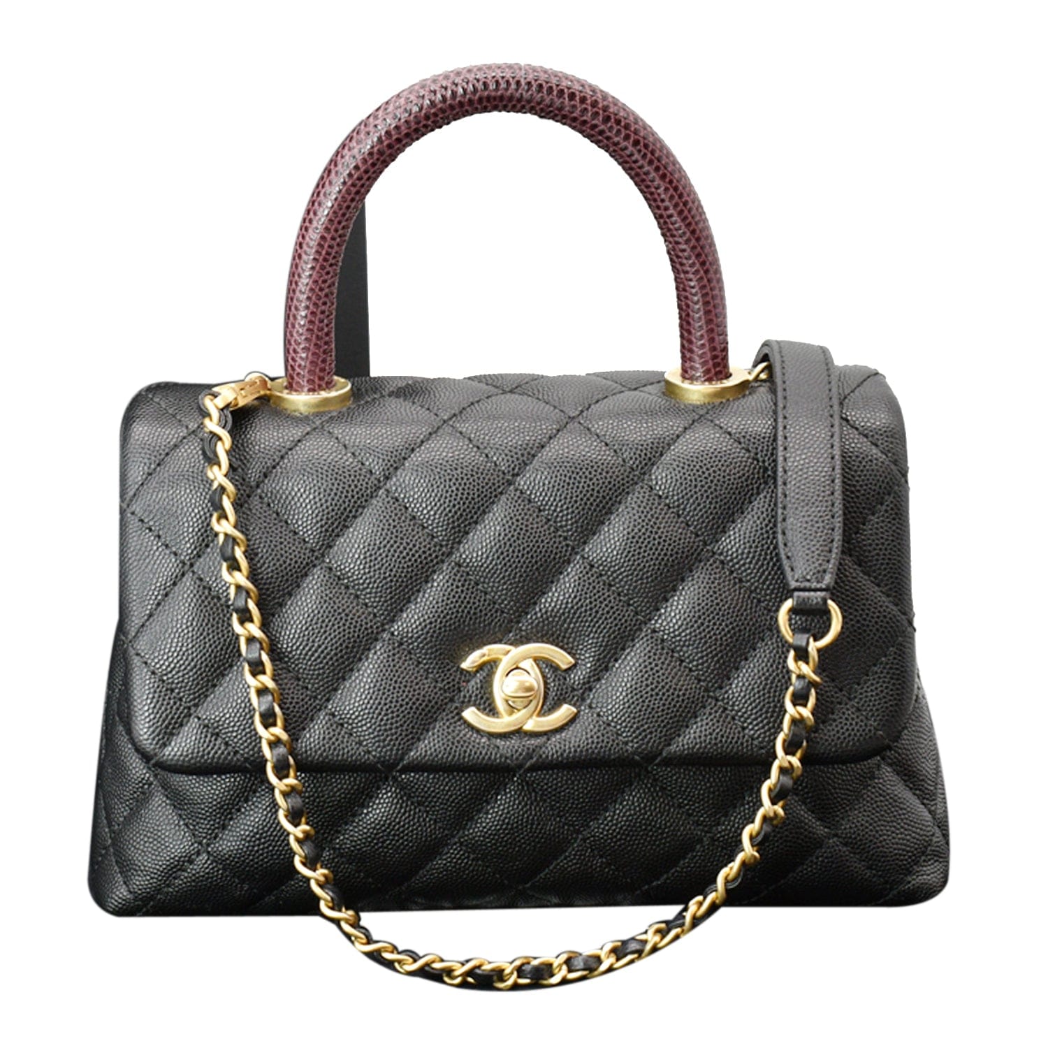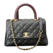 CHANEL Coco Mini Top Lizard Handle Caviar Leather Shoulder Bag Black