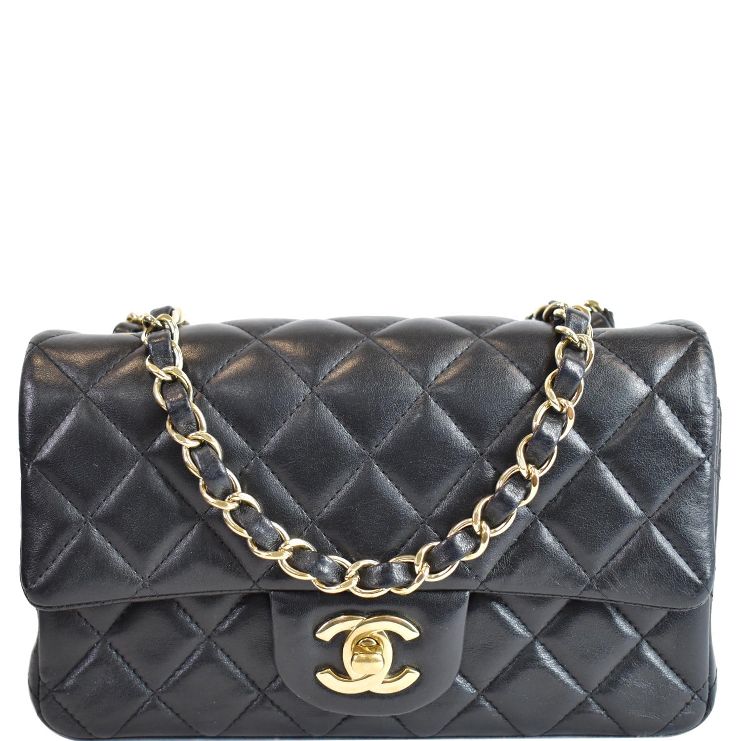 CHANEL Mini Rectangular Flap Quilted Lambskin Leather Shoulder Bag Black