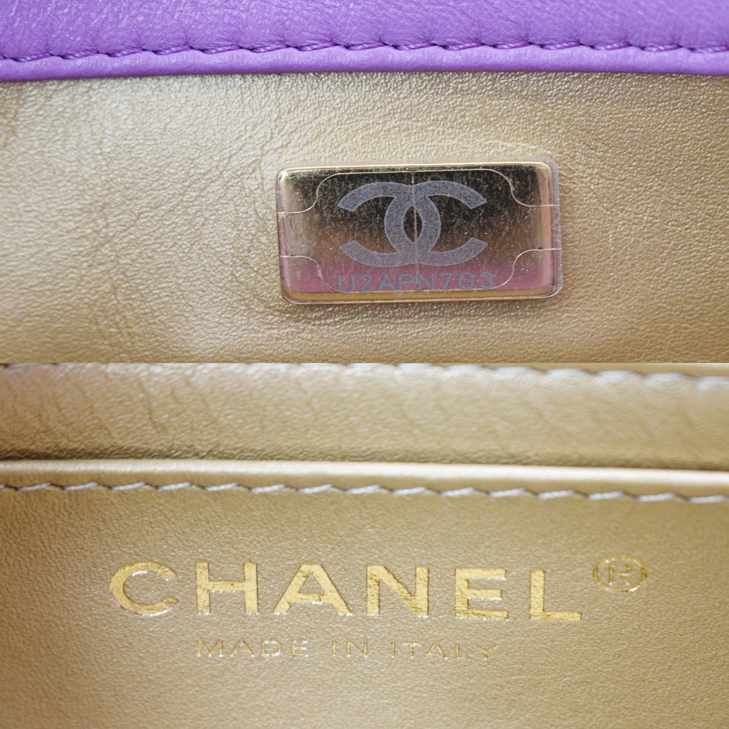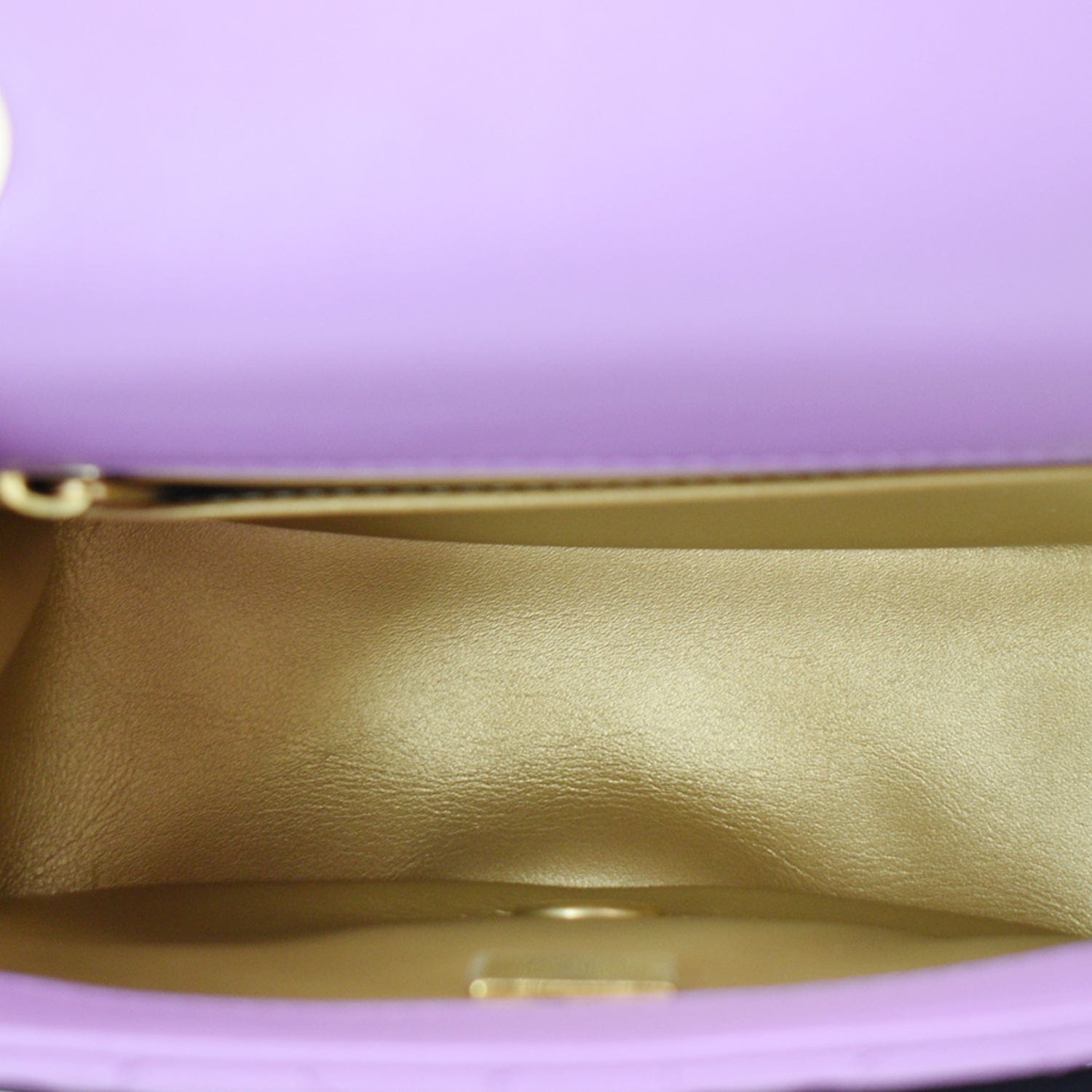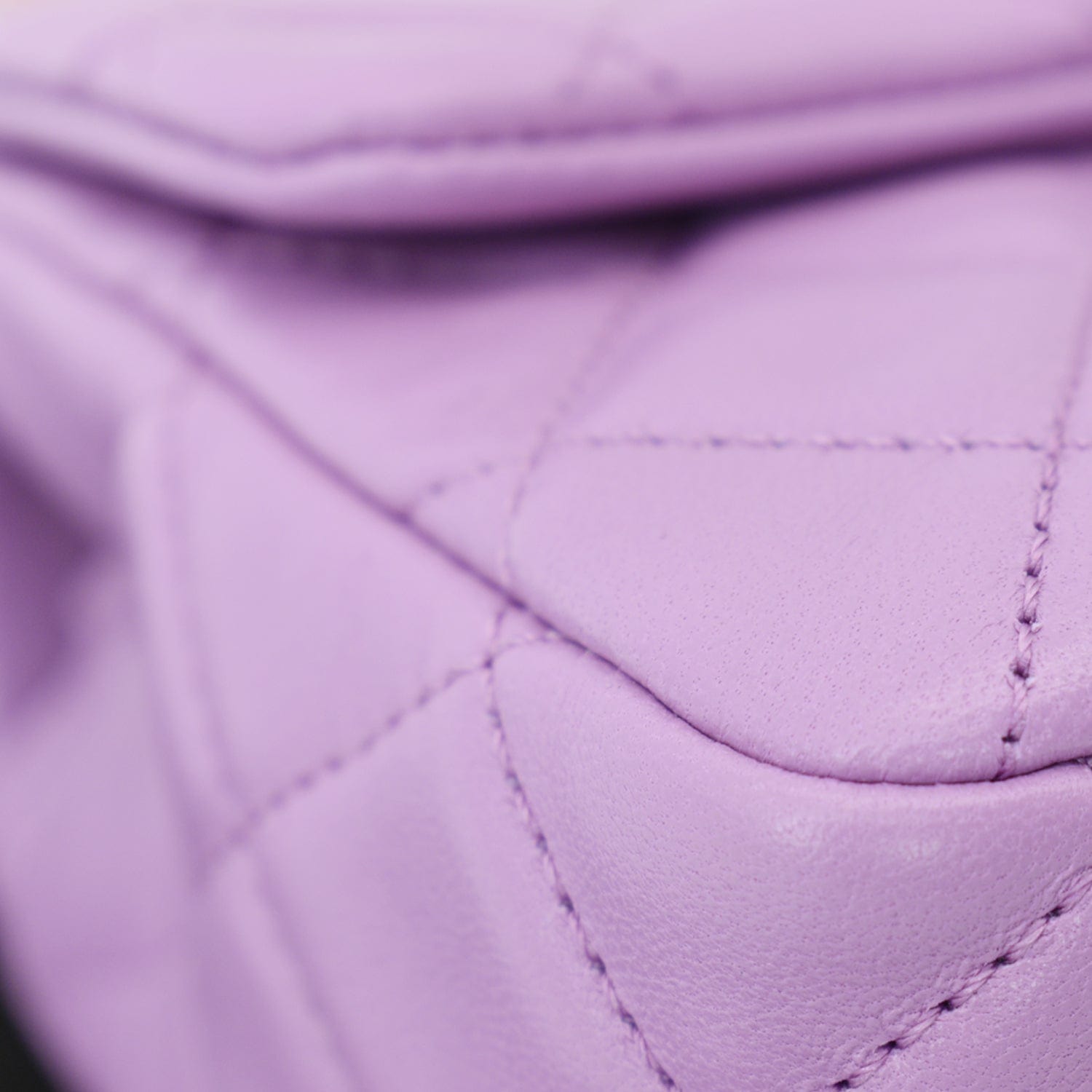 CHANEL 22S Mini Pearl Crush Square Flap Leather Crossbody Bag Purple