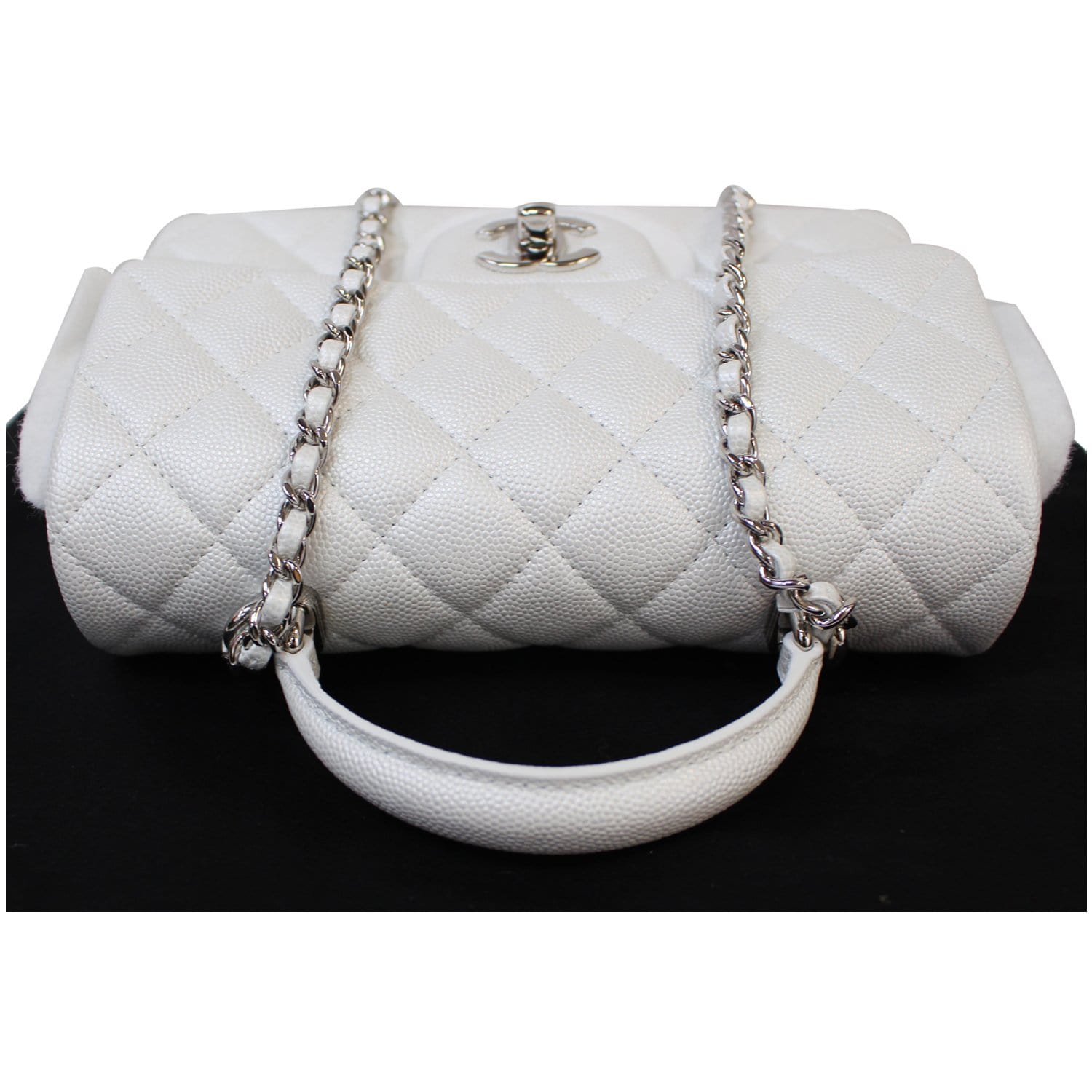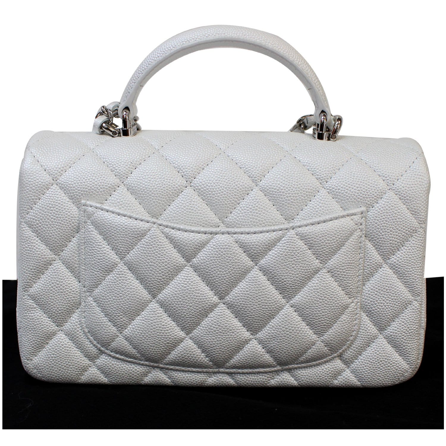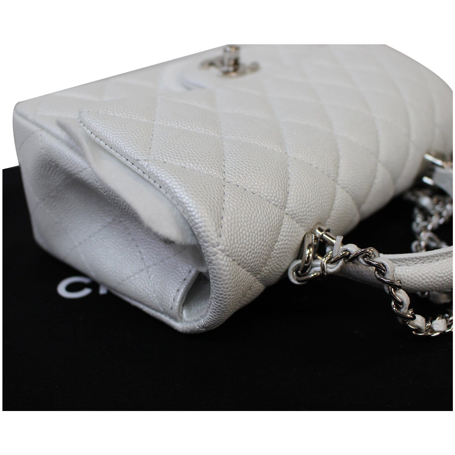 CHANEL Mini Top Handle Flap Caviar Leather Crossbody Bag White