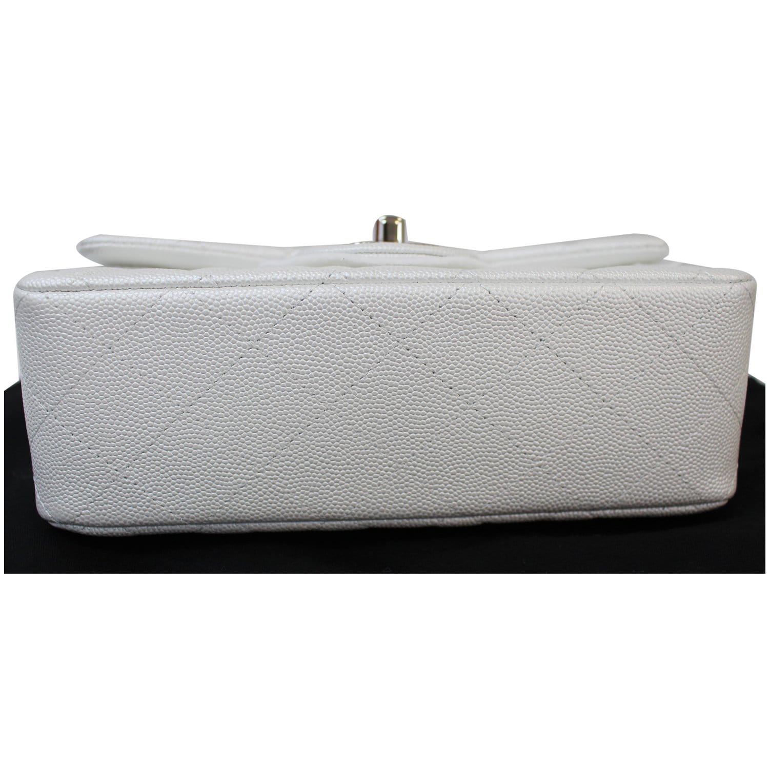 Mini Top Handle Flap Caviar Leather Crossbody Bag White