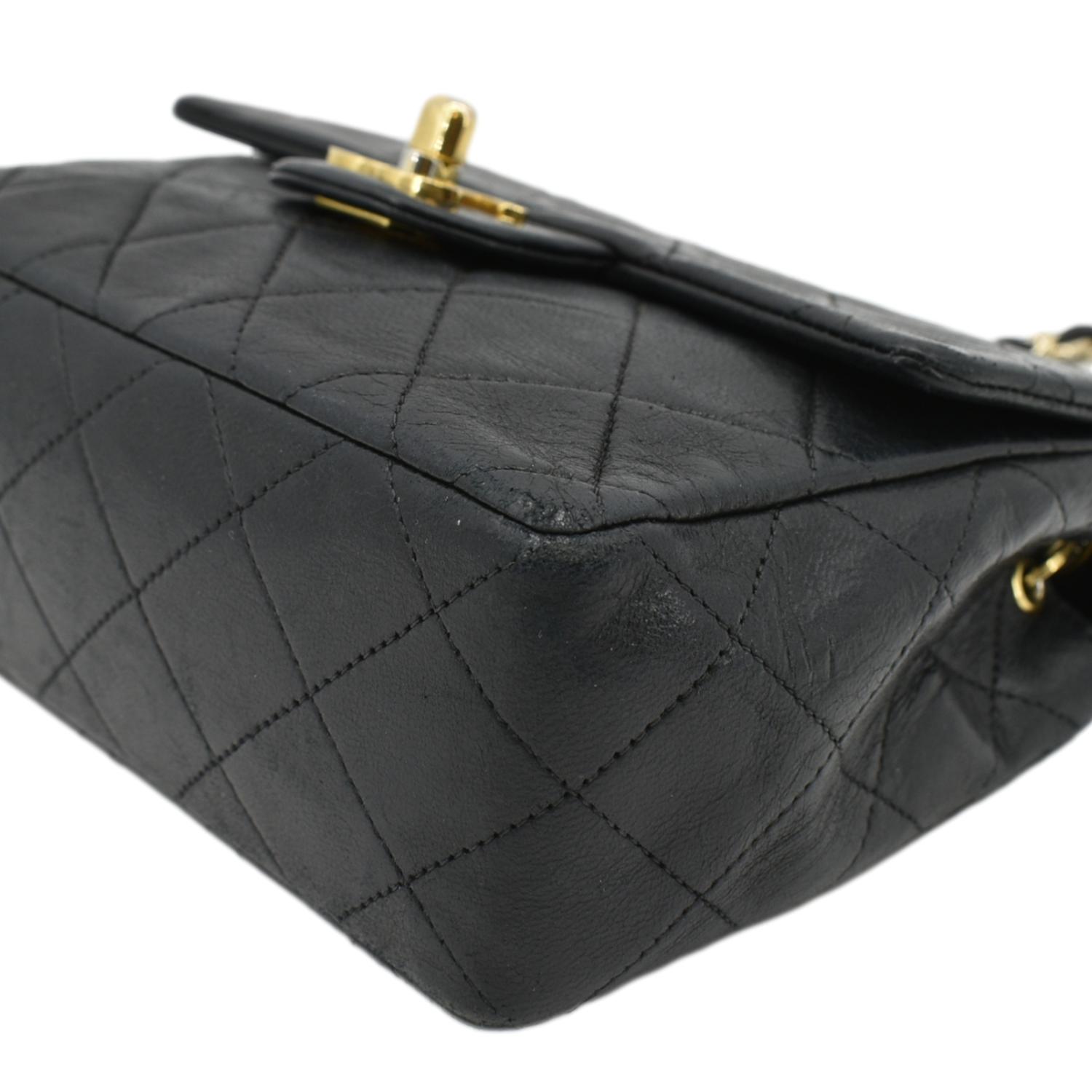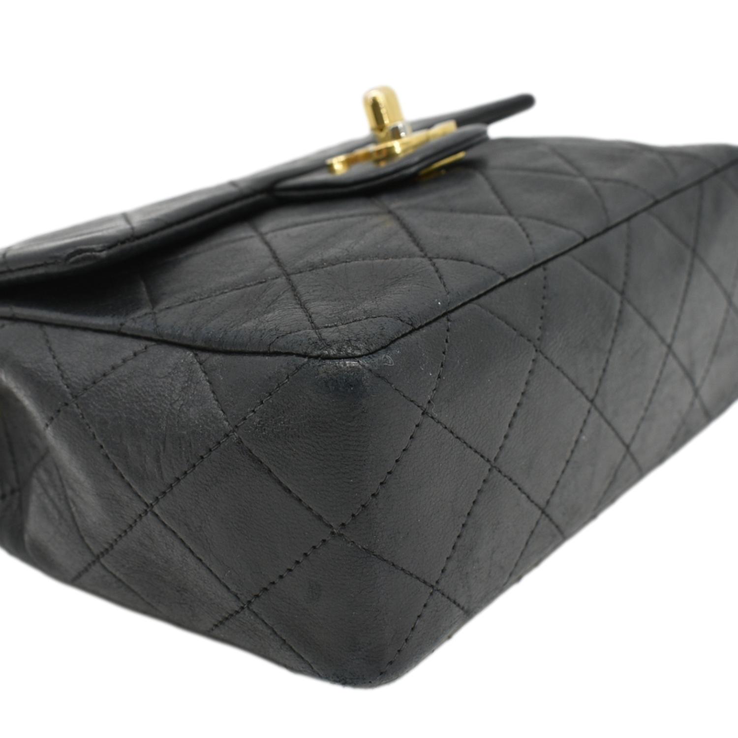 CHANEL Classic Flap Vintage Mini Square Lambskin Leather Crossbody Bag Black