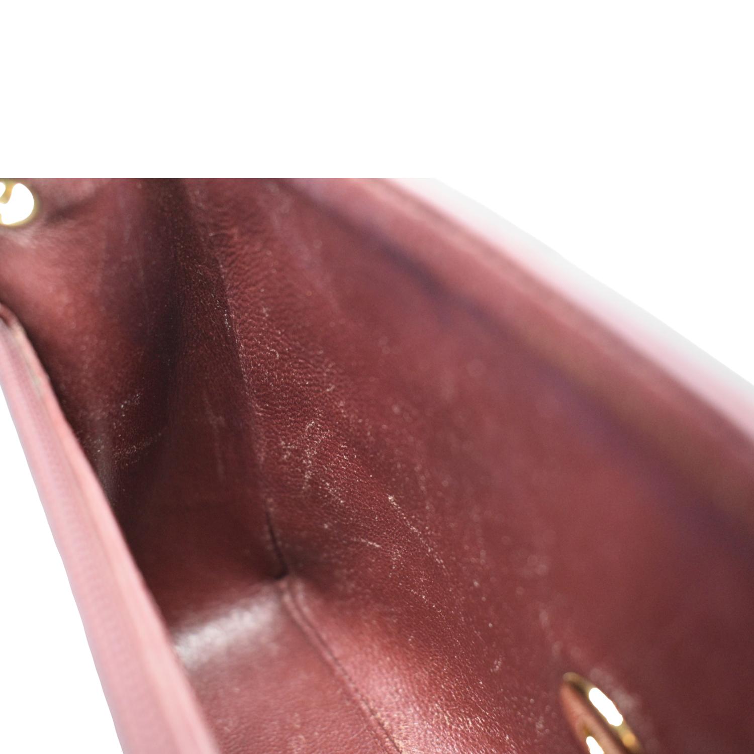 Fair -The item shows signs of use, including corner rubbing, light scratches, and discoloration on the gold hardware. The interior has some scratches, and the bag is out of shape. However, it is free from any unpleasant odors.