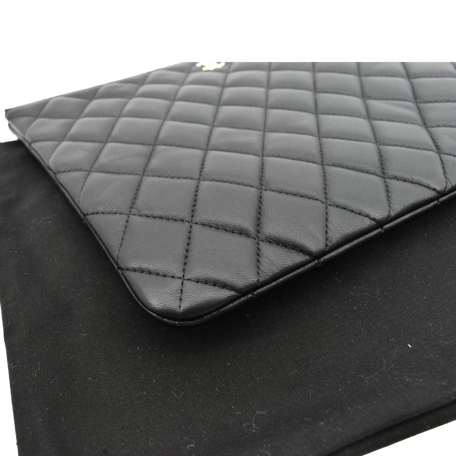 CHANEL O-Case Quilted Lambskin Leather Zip Pouch Black