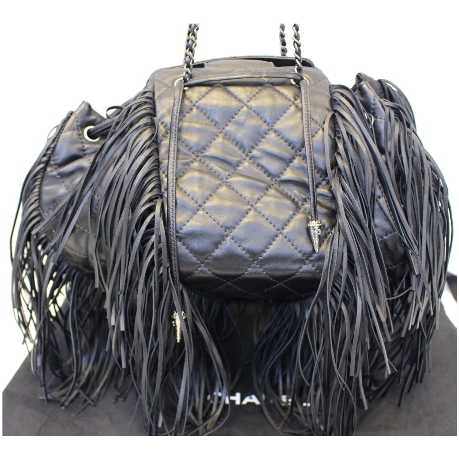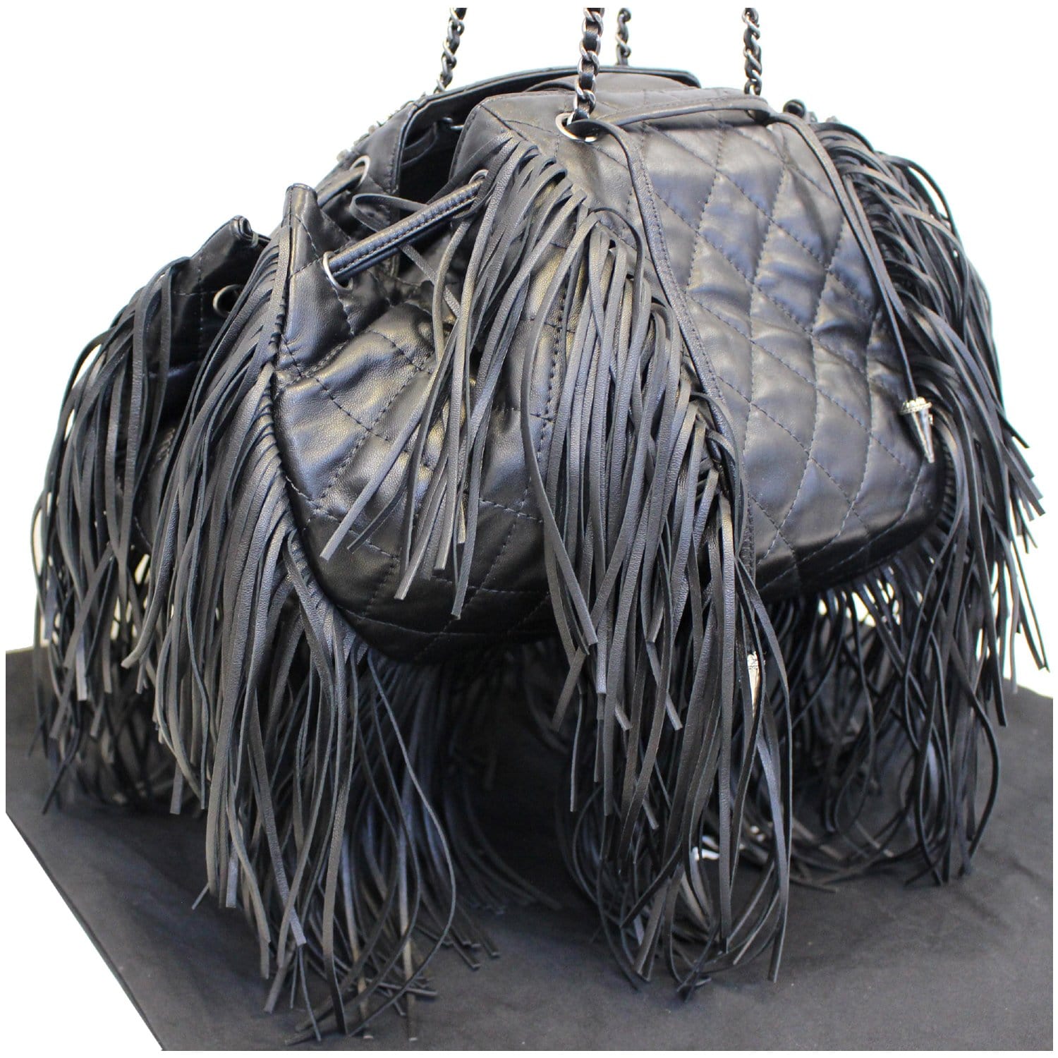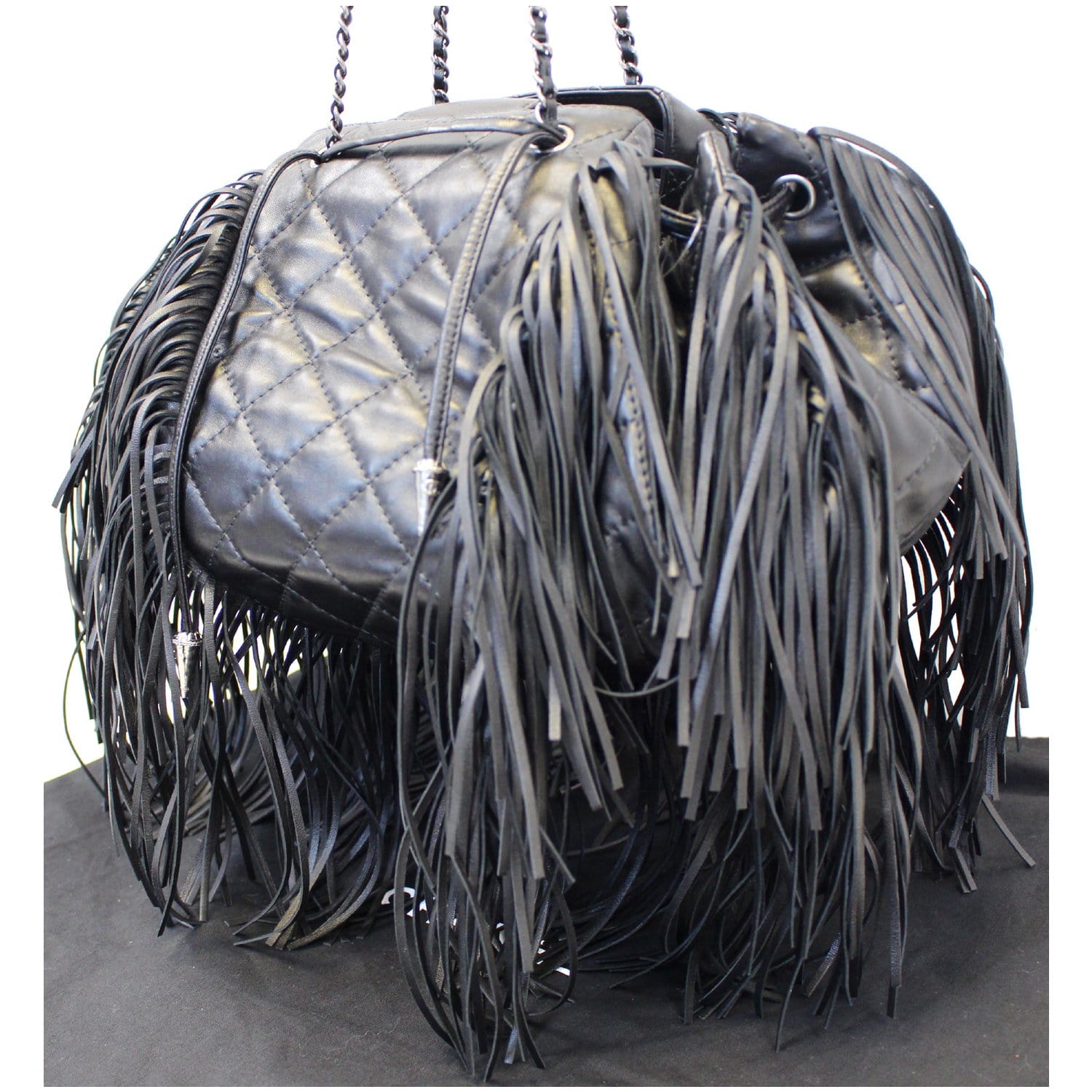 CHANEL Paris Dallas Drawstring Fringe Shoulder Bag Black