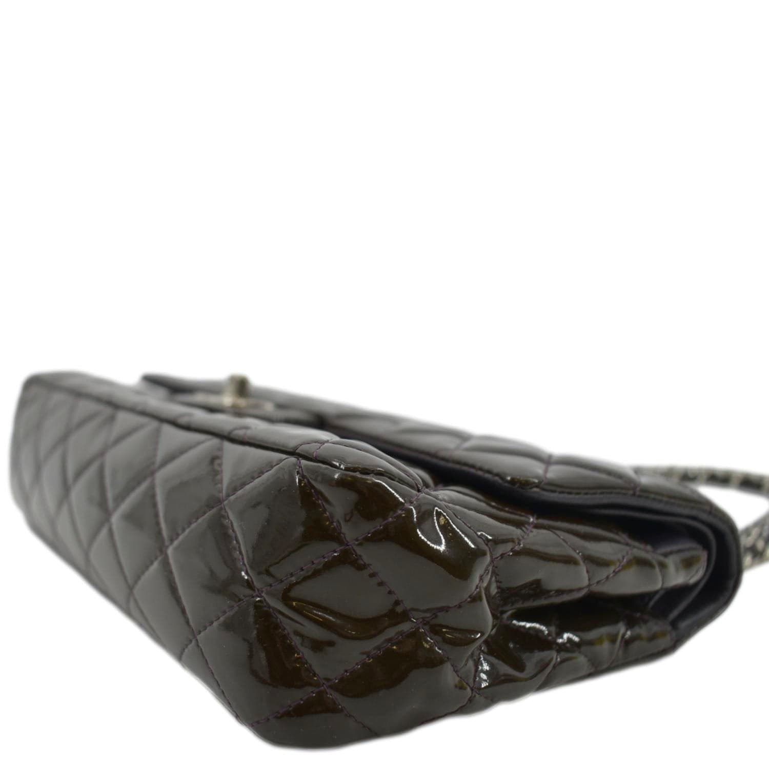 CHANEL Classic Medium Double Flap Patent Leather Shoulder Bag Dark Brown