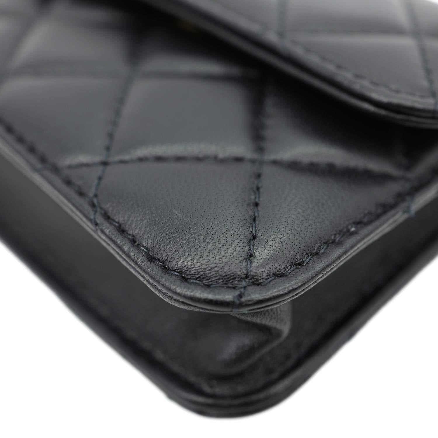 CHANEL Pearl Crush Quilted Leather Clutch With Chain Black