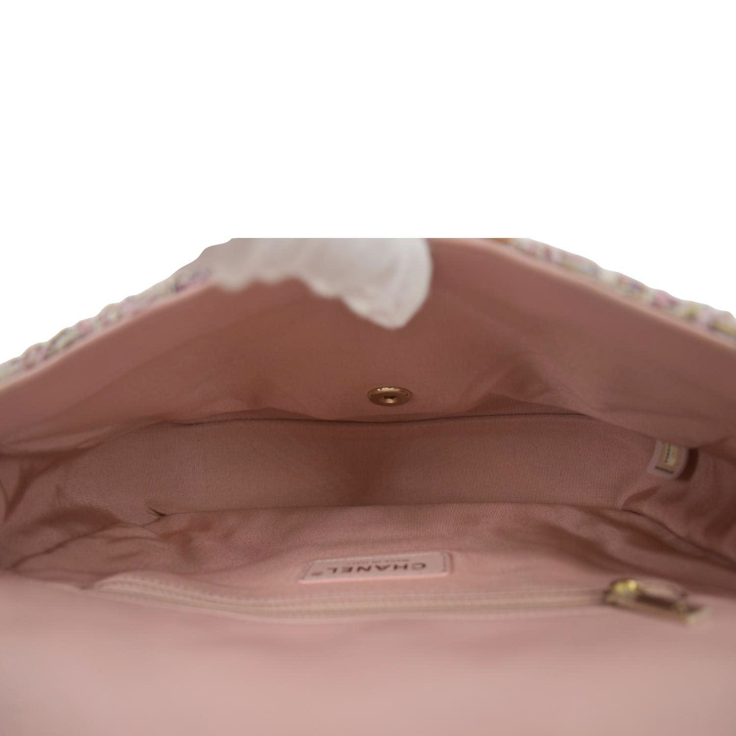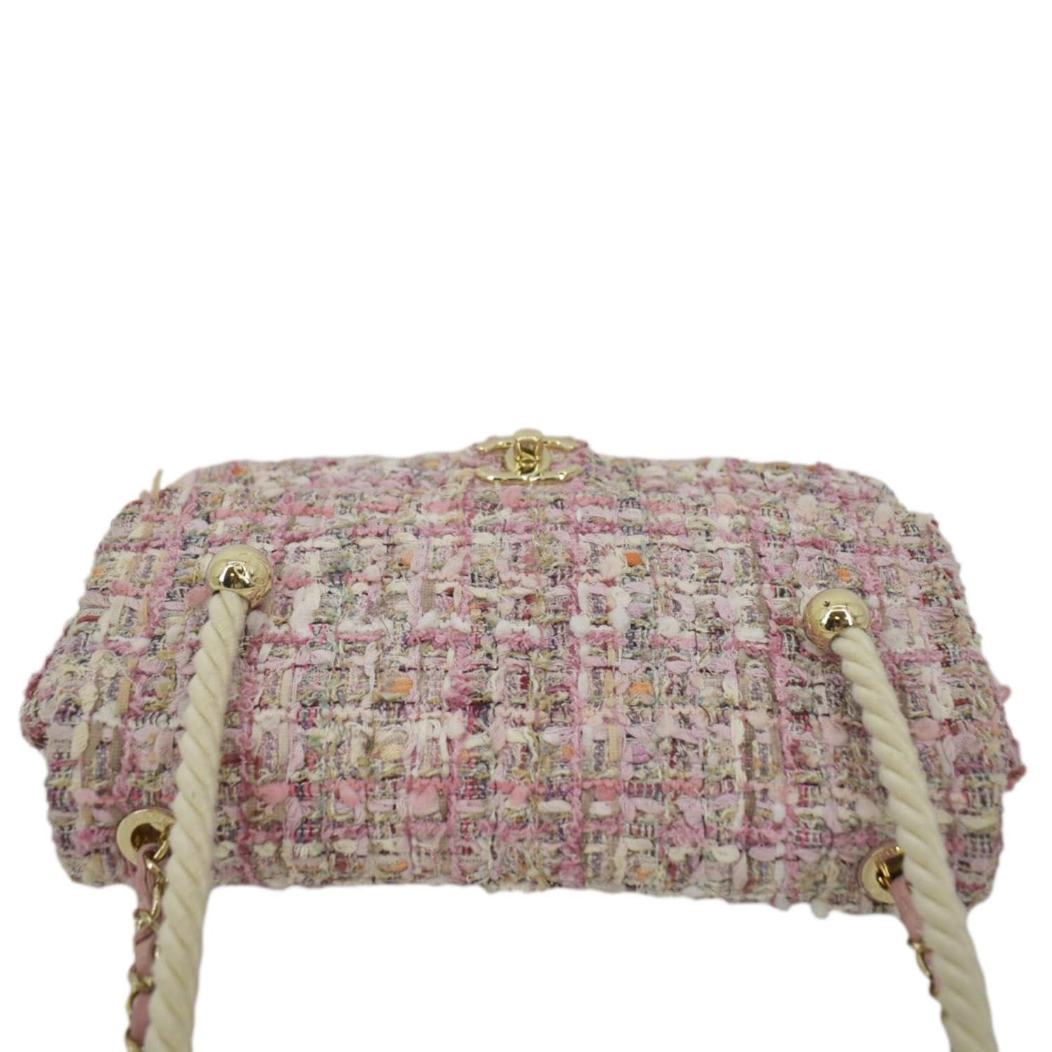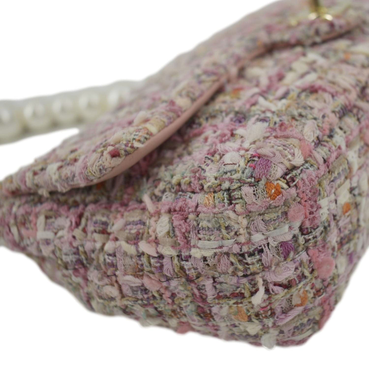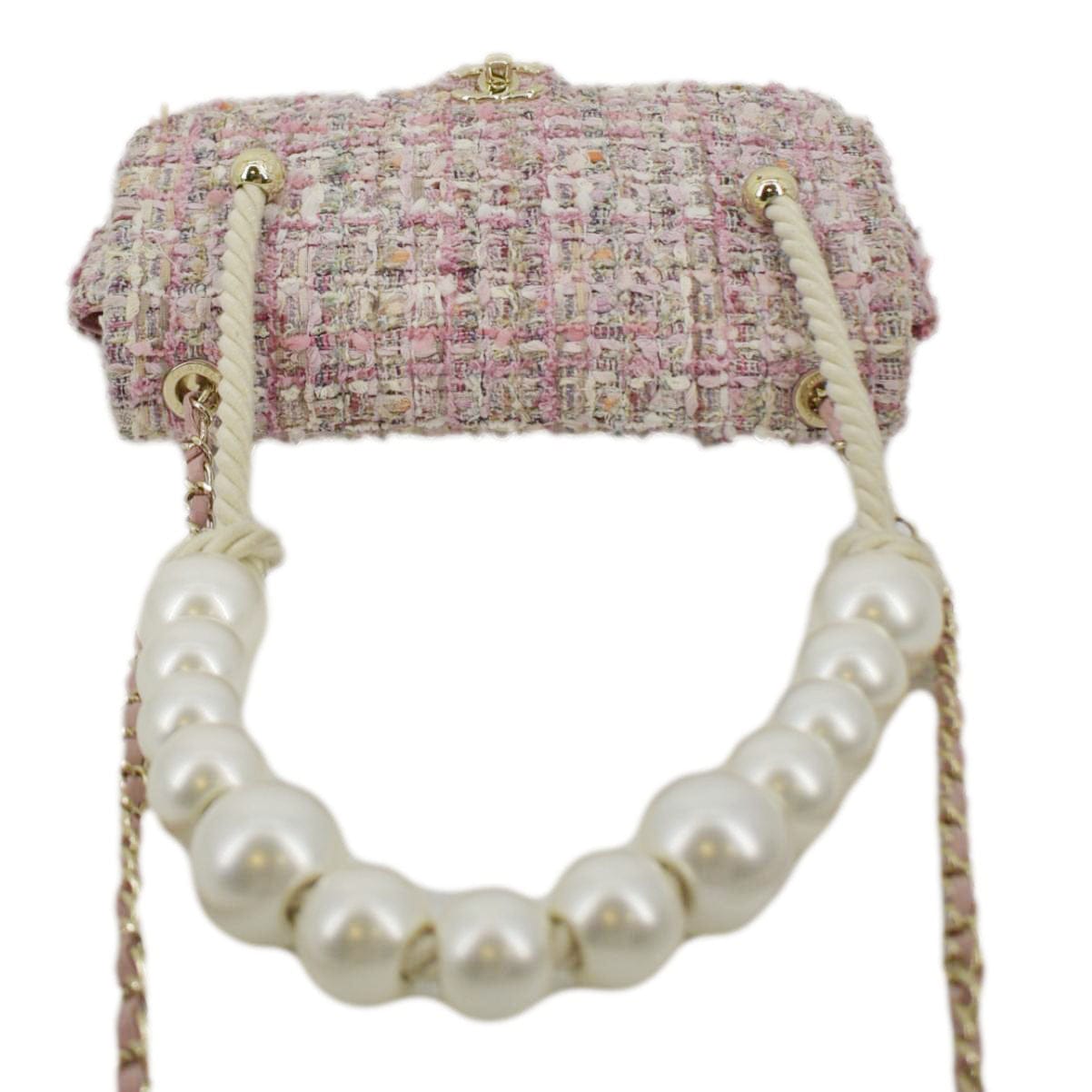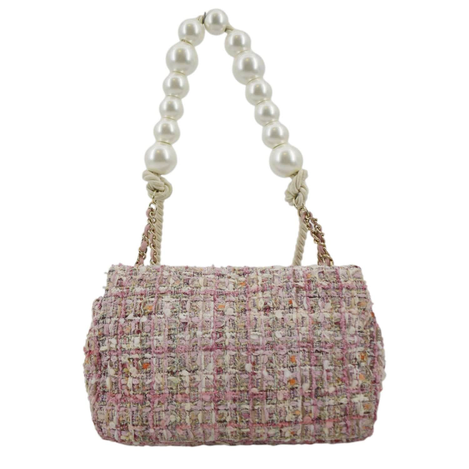 Introducing the Chanel Pearl Handle Pink Tweed Flap—a true embodiment of elegance with its delicate pearl handle and charming pink tweed. This beauty is your statement piece for chic sophistication.