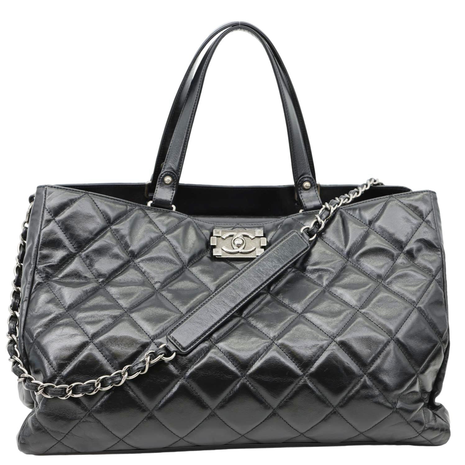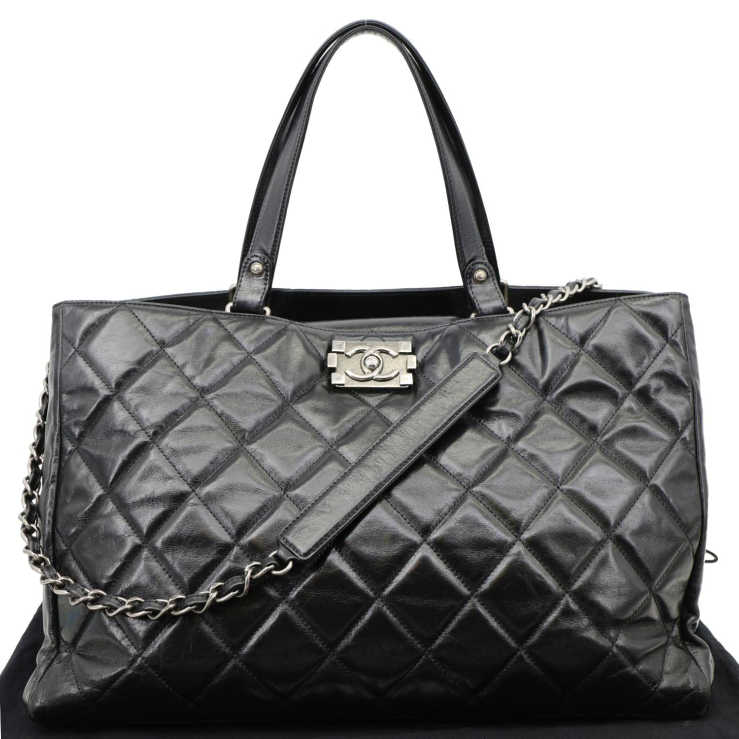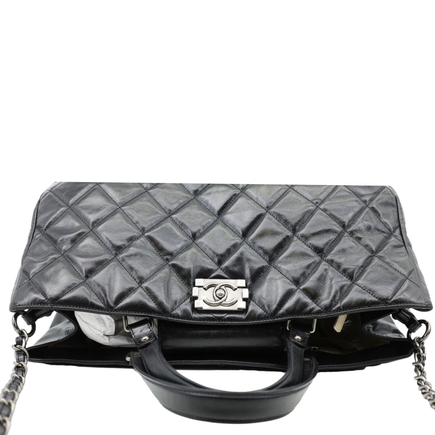 CHANEL Portobello Quilted Calfskin Leather Chain Tote Bag Black