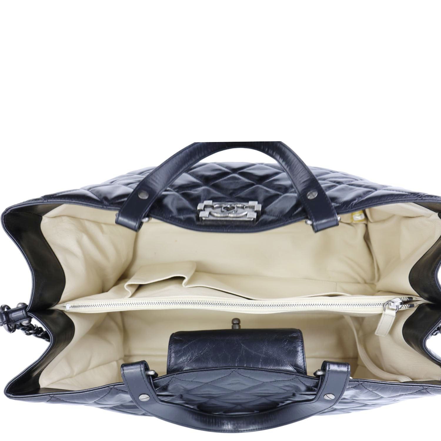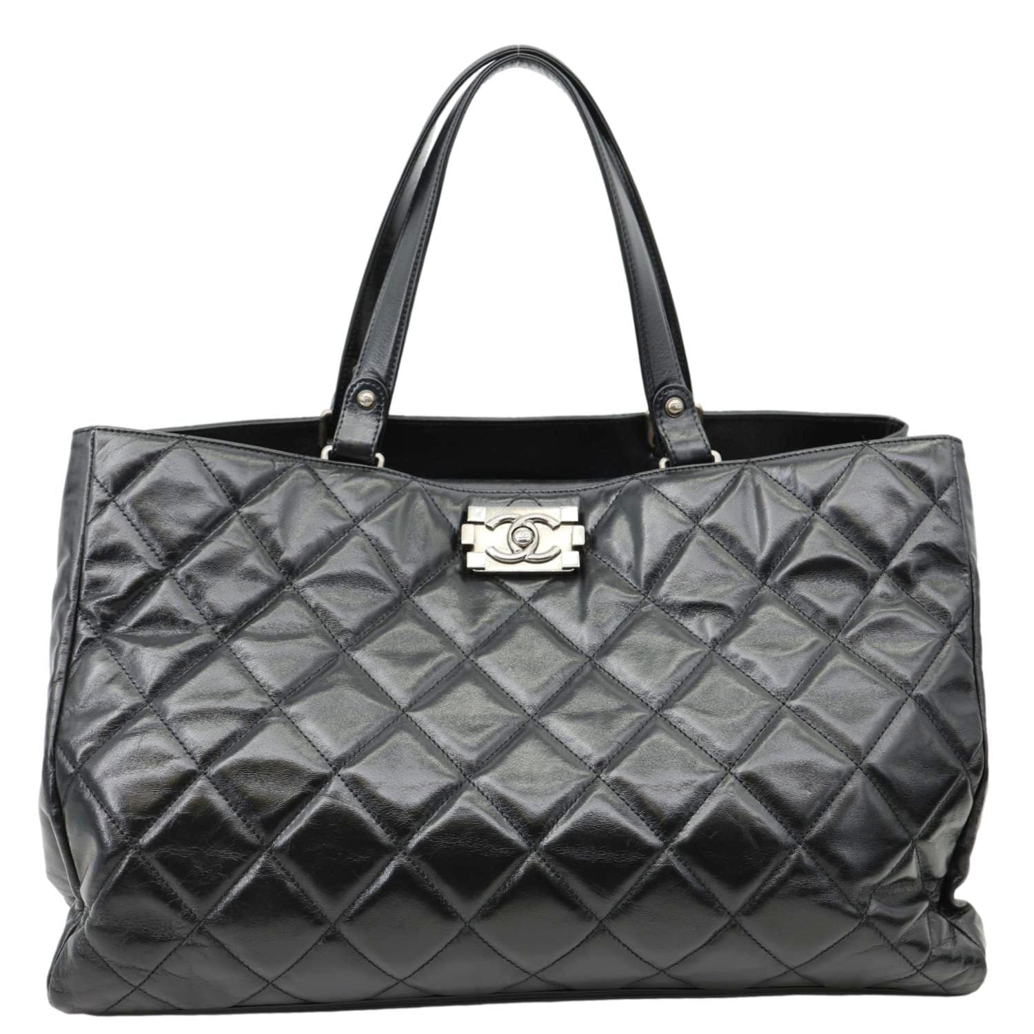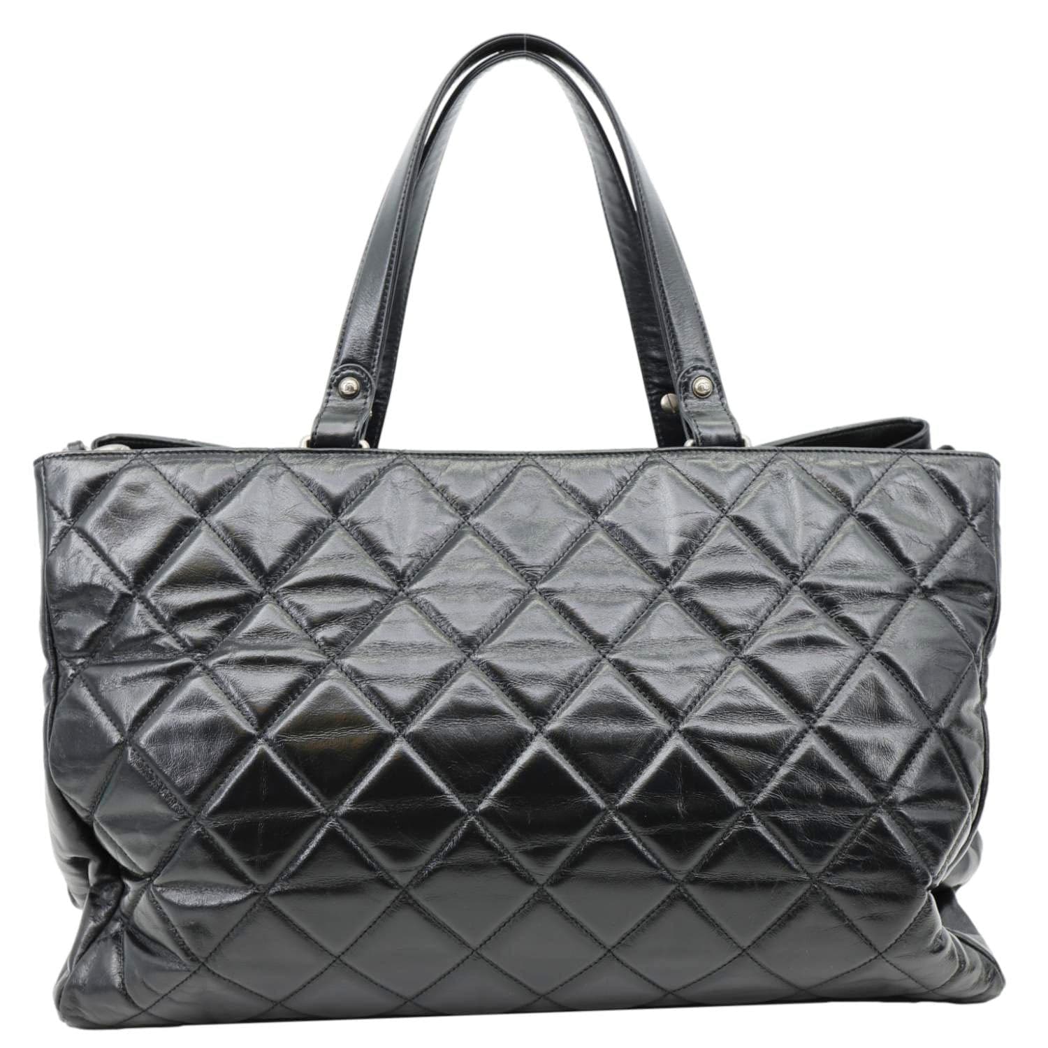 The CHANEL Portobello Quilted Leather Tote Bag in black features a sophisticated quilted design and spacious interior, perfect for everyday luxury. Crafted from high-quality leather, this timeless tote exudes elegance and refinement.