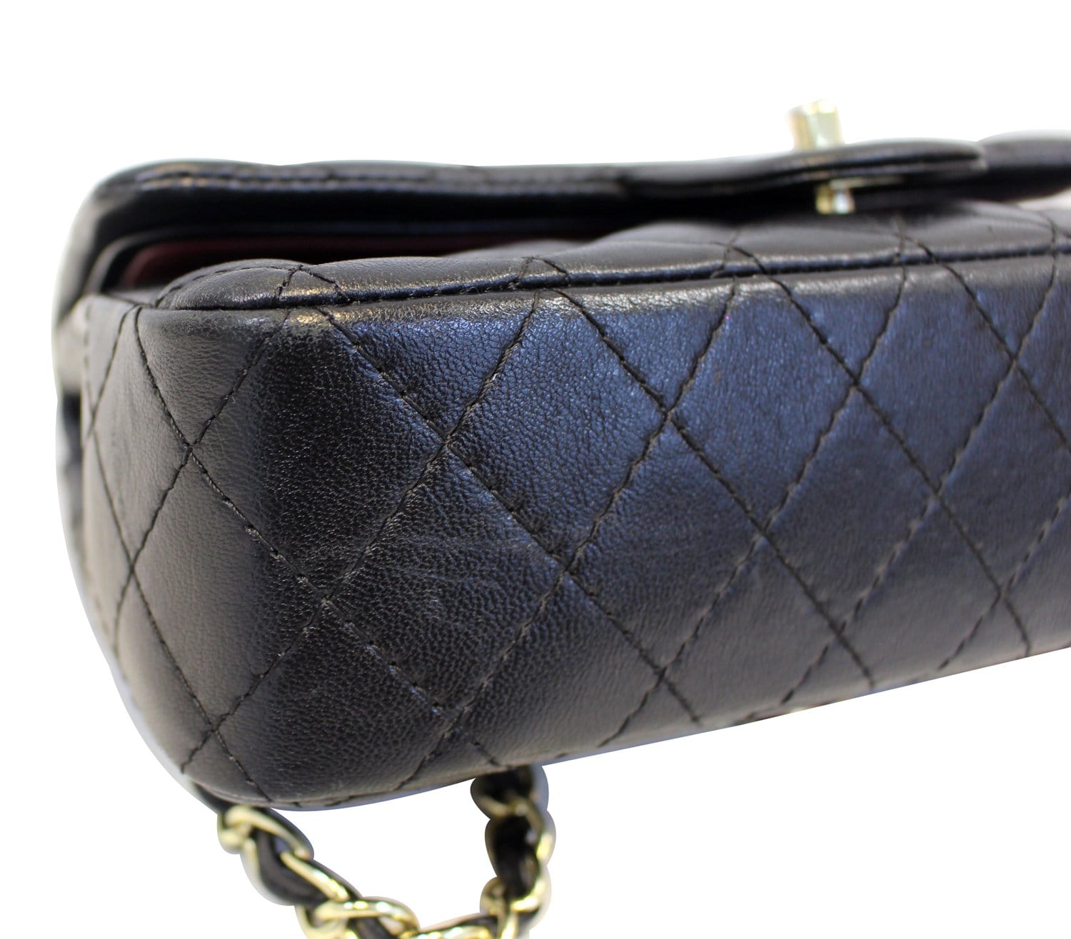 CHANEL Quilted Lambskin Leather Double Flap Classic Medium Black Bag