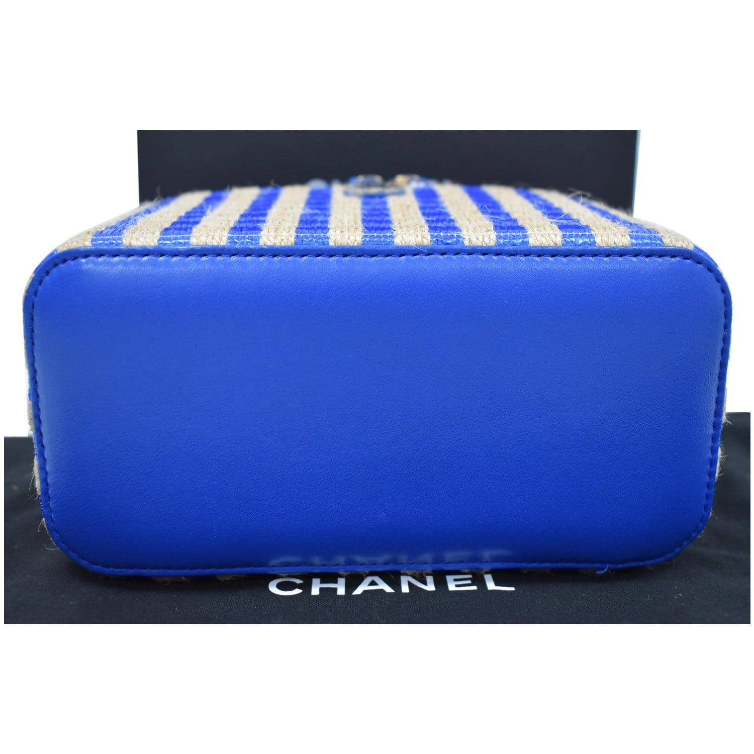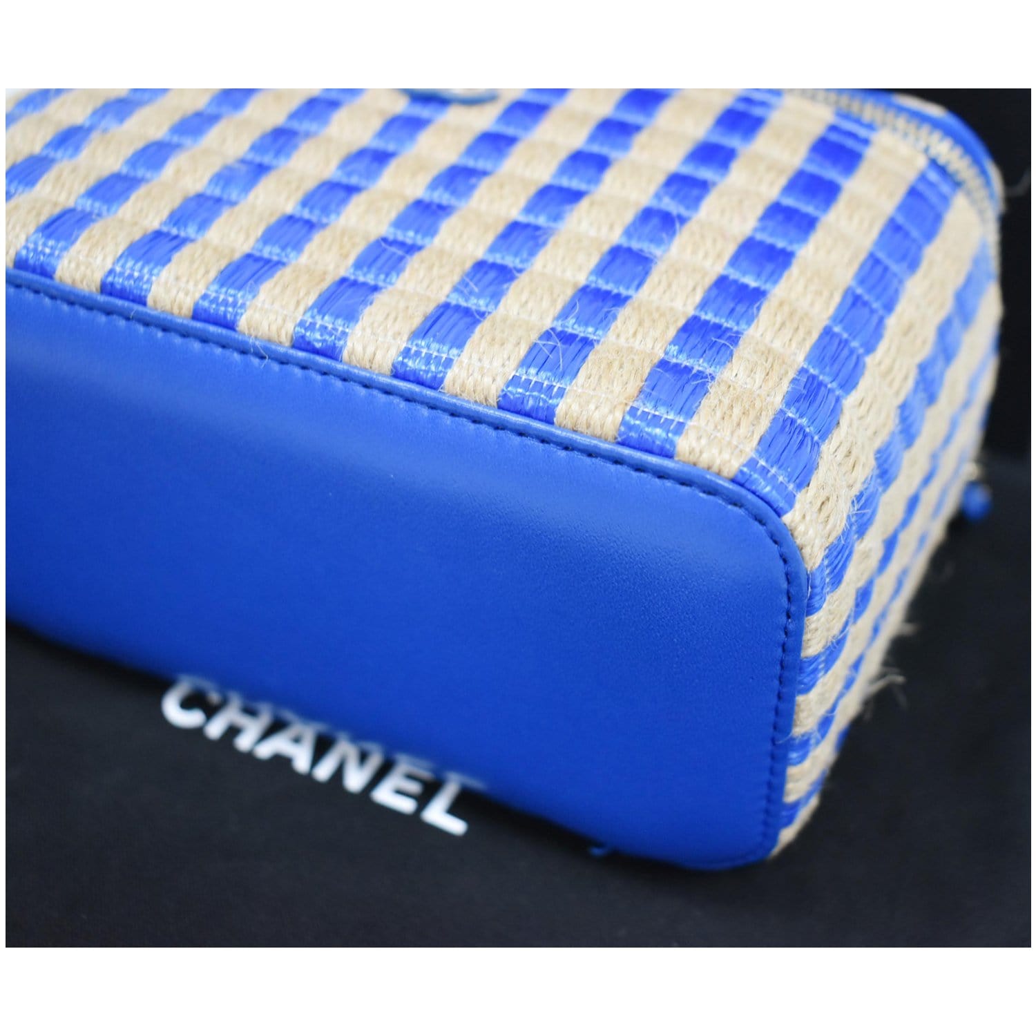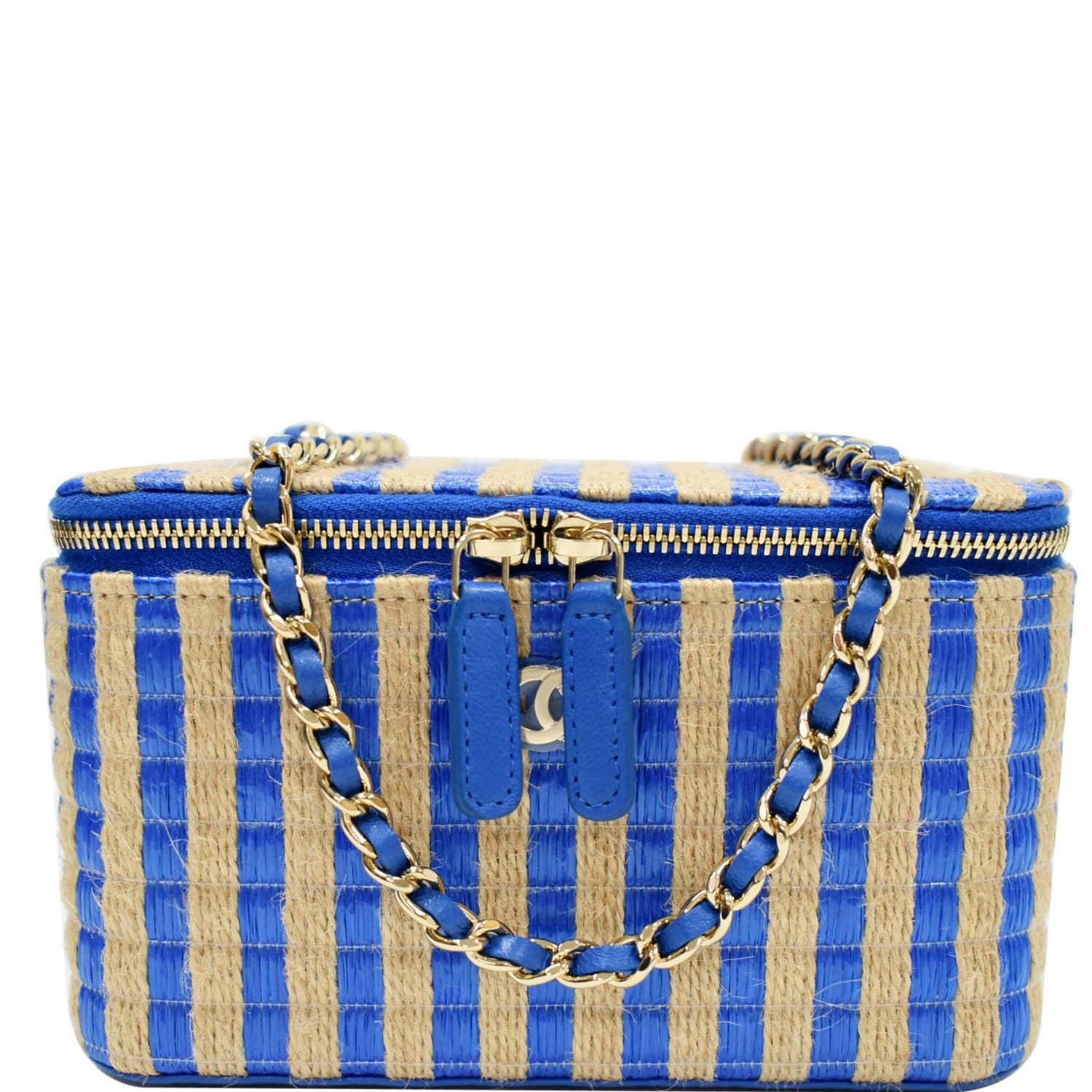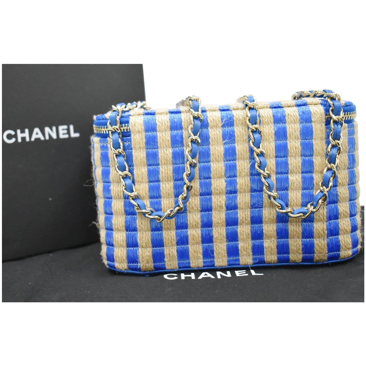 CHANEL Raffia Jute Striped Vanity Case Chain Crossbody Bag Blue - 10% OFF
