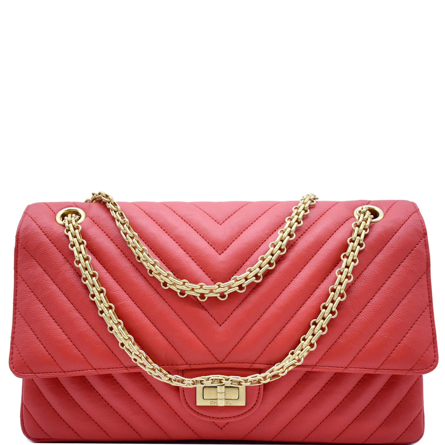 CHANEL 2.55 Reissue Double Flap Chevron Leather Shoulder Bag Red
