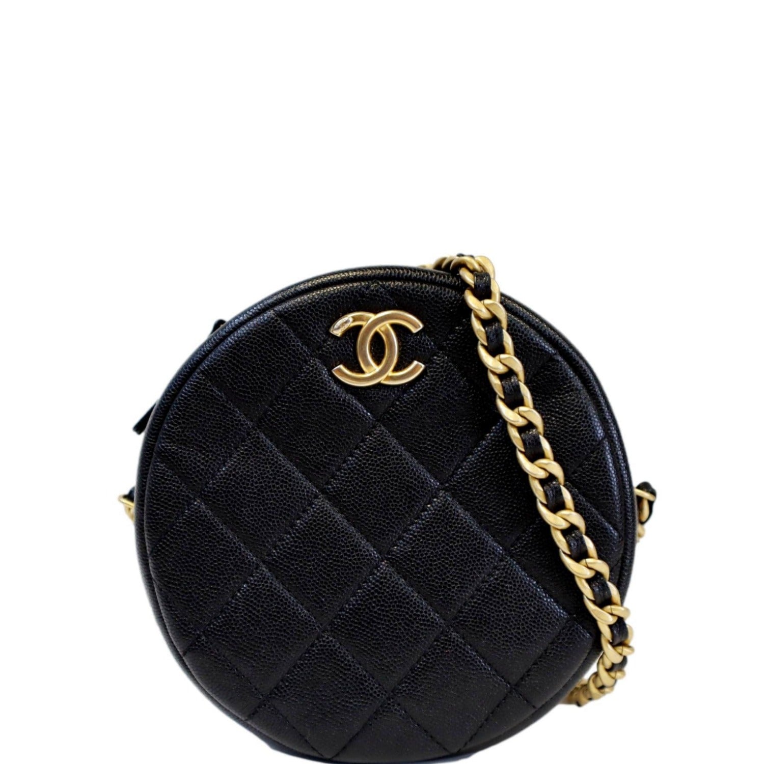 Chanel Round Quilted Caviar Leather Clutch Bag
