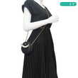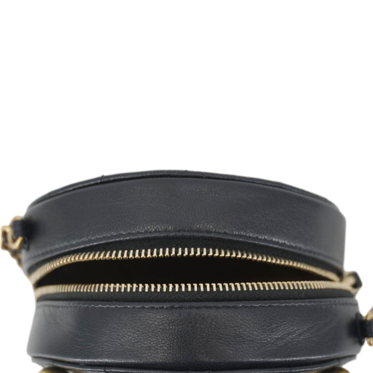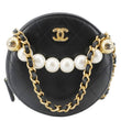 Round Chic Pearls Quilted Leather Crossbody Bag Black