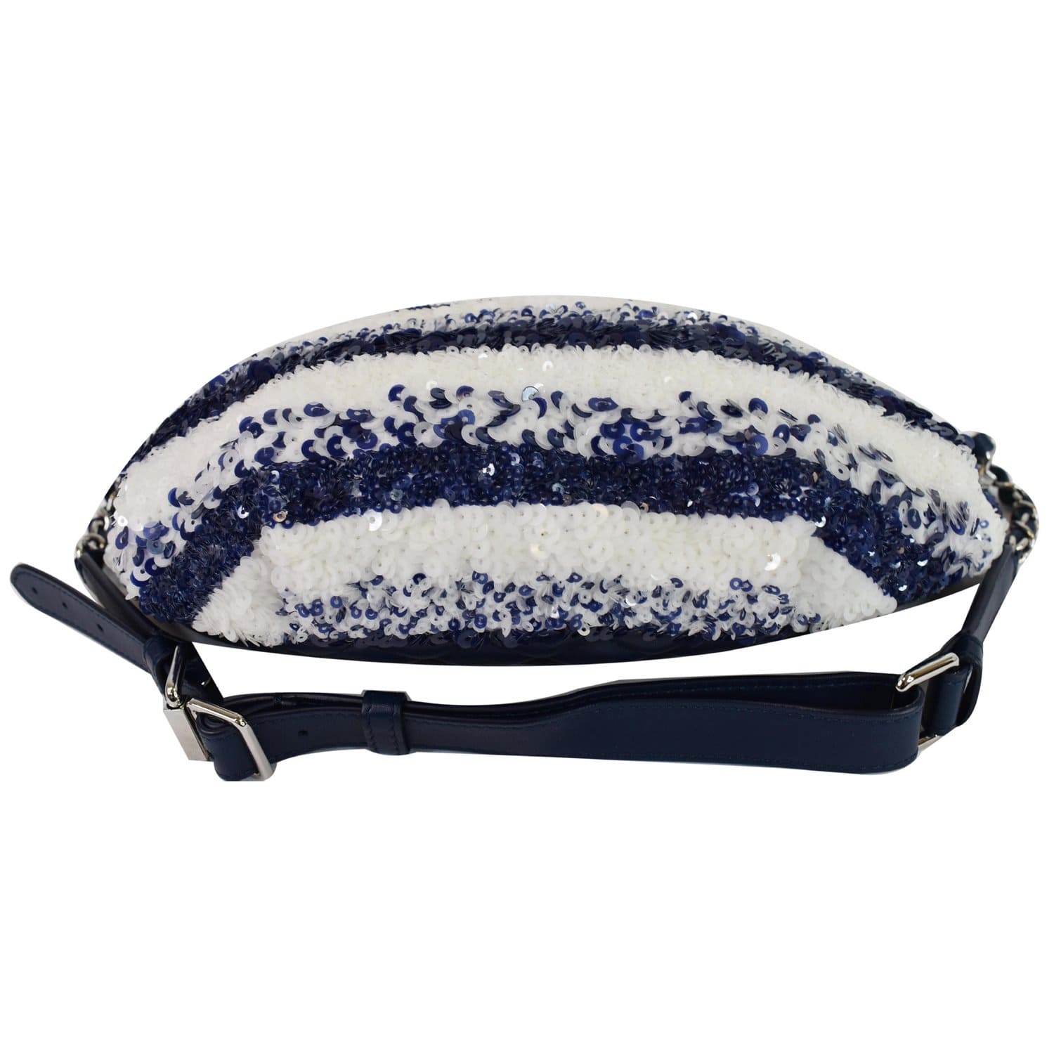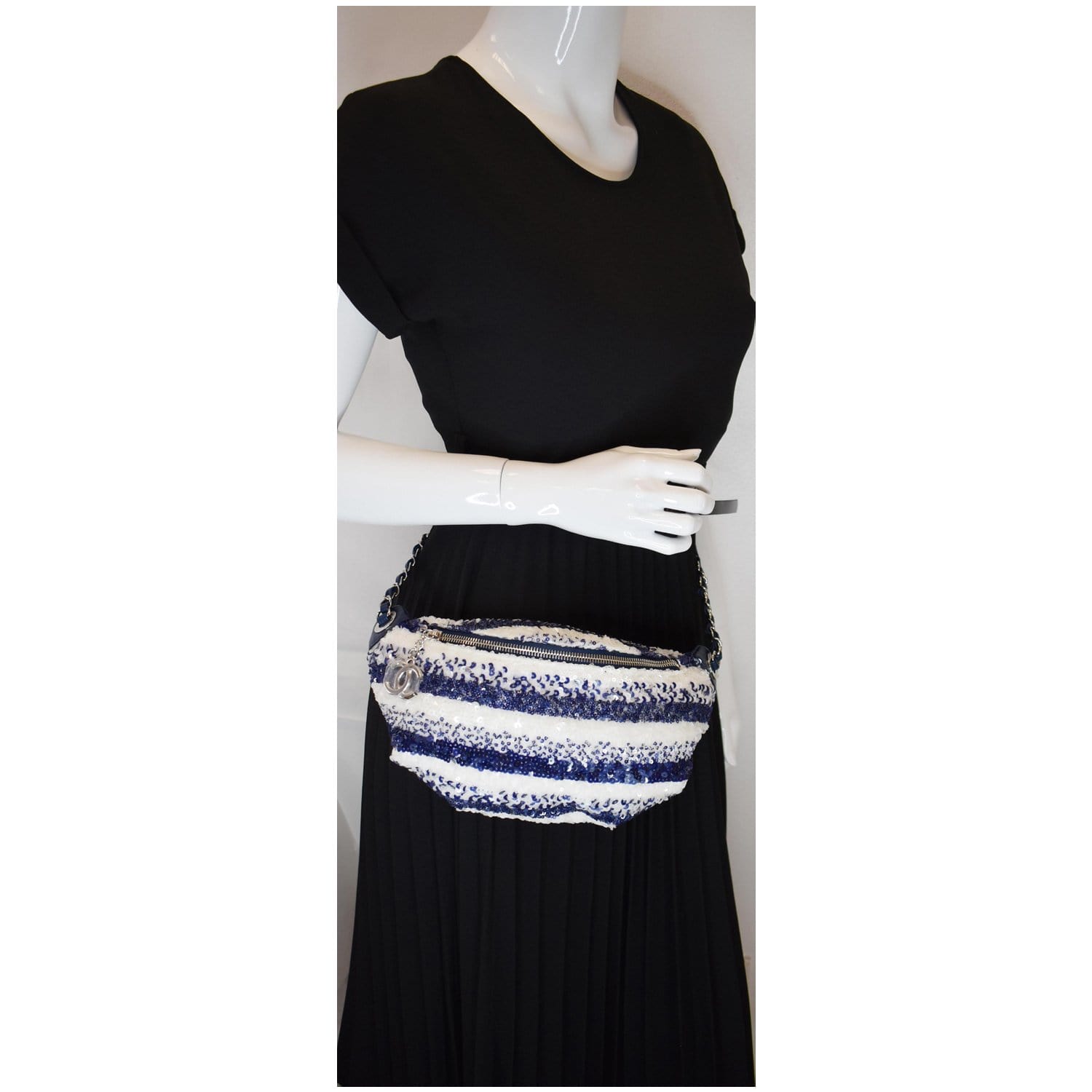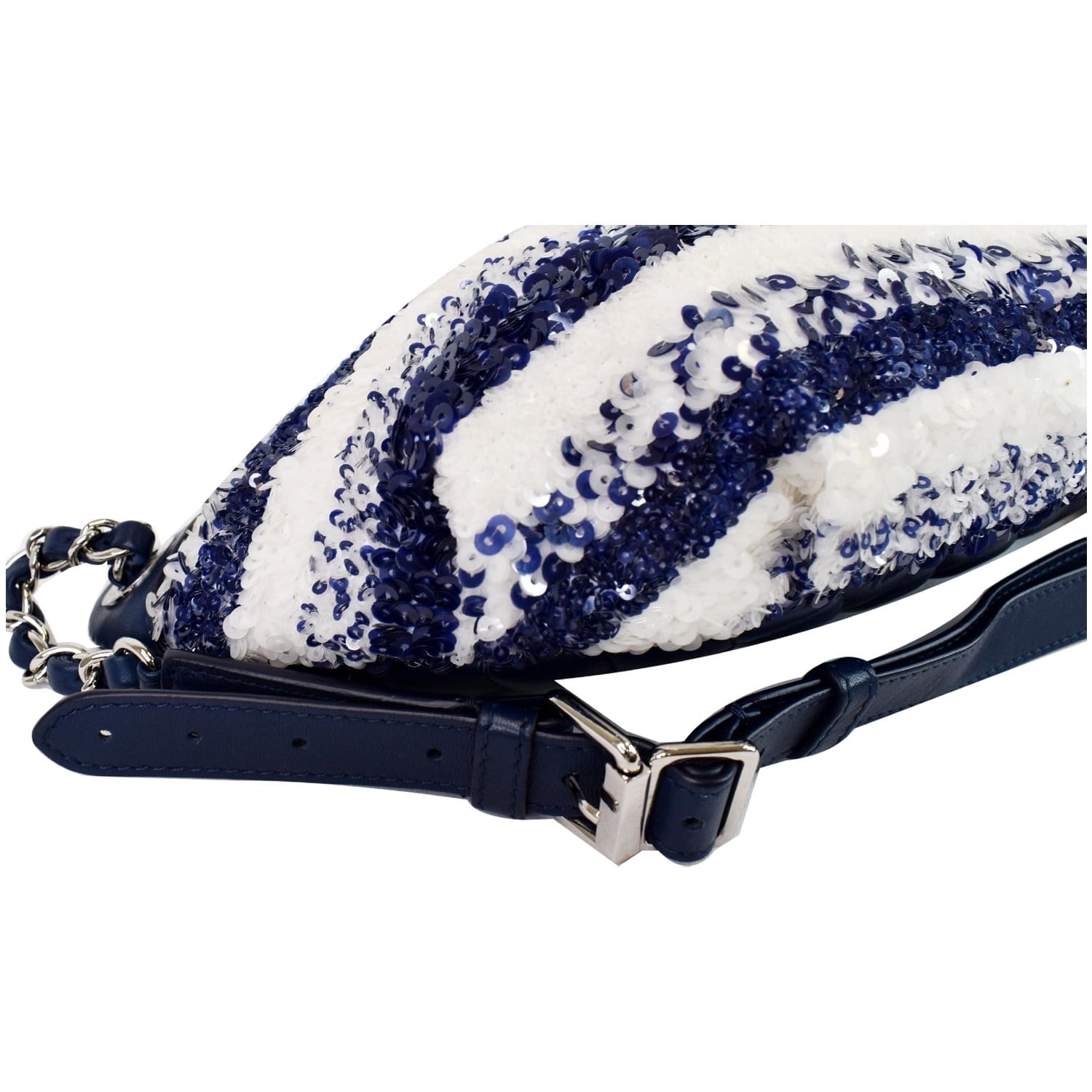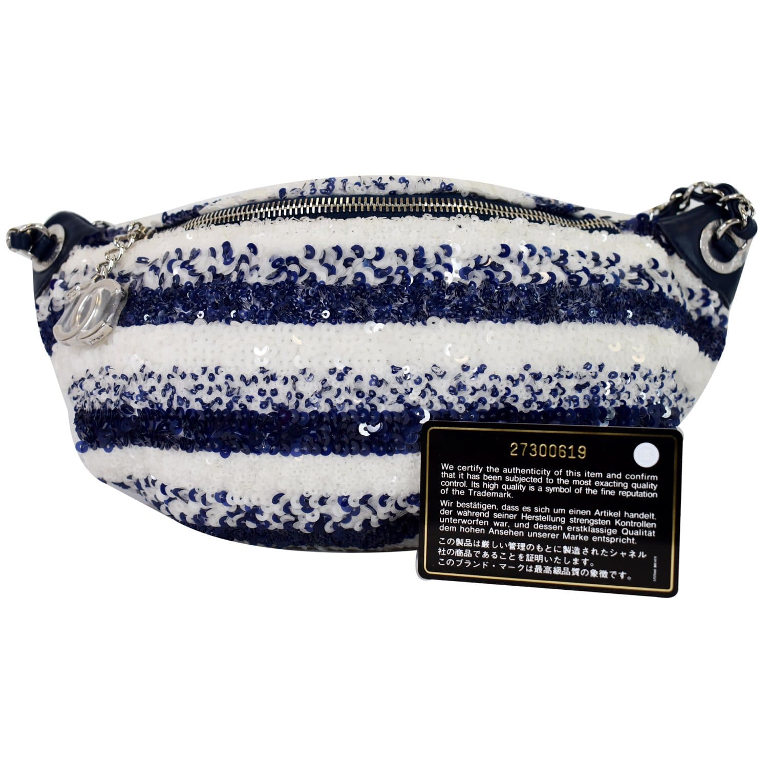 Chanel Sequin Fanny Pack Leather Waist Bag Blue/White