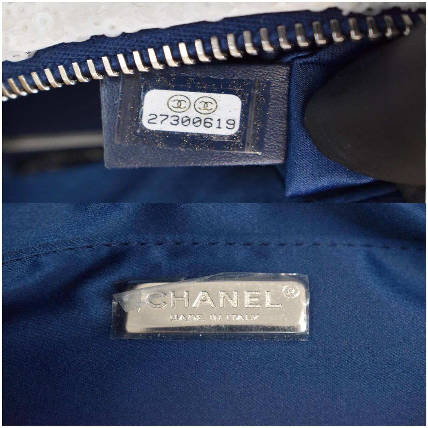 CHANEL Sequin Fanny Pack Leather Waist Bag Blue/White