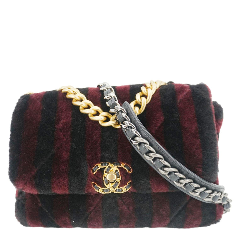 CHANEL 19 Flap Medium Striped Shearling Shoulder Bag in Black