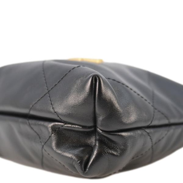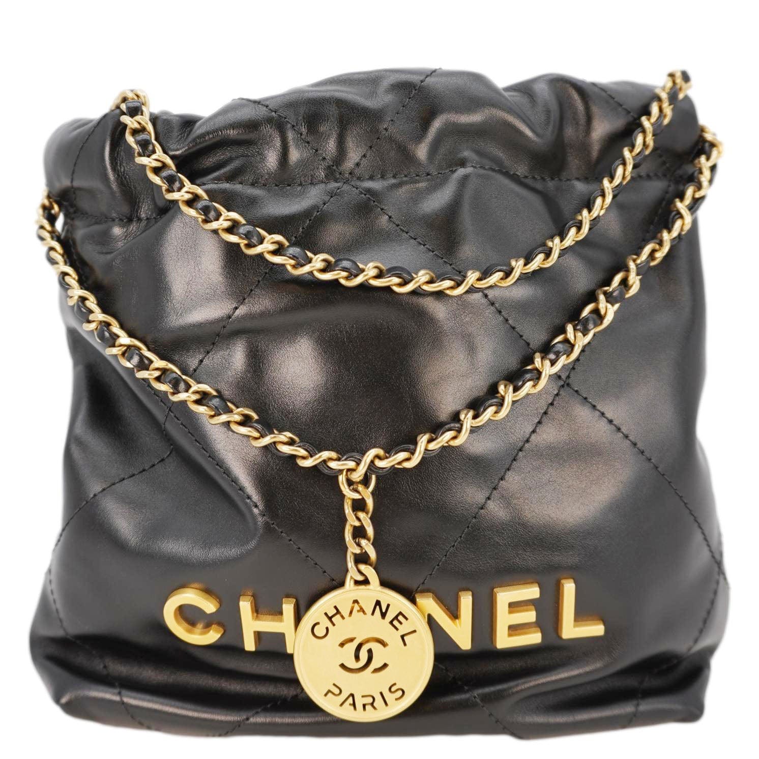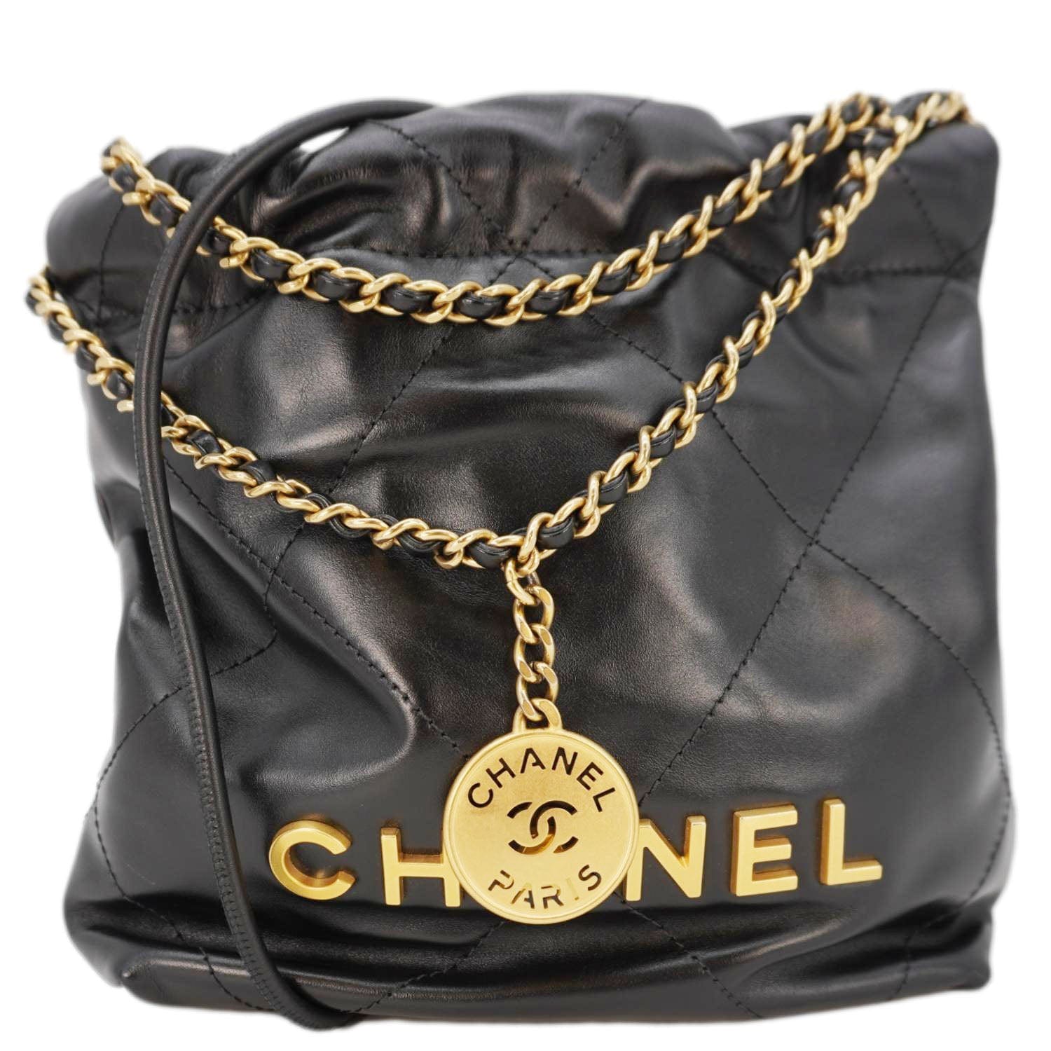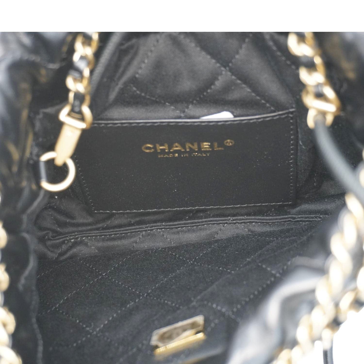 The Chanel Pearl 22 Crossbody Bag in shiny crumpled black leather features a bold design accented with delicate pearl details. Stylish and versatile, it’s a luxurious statement piece perfect for elevating any look.