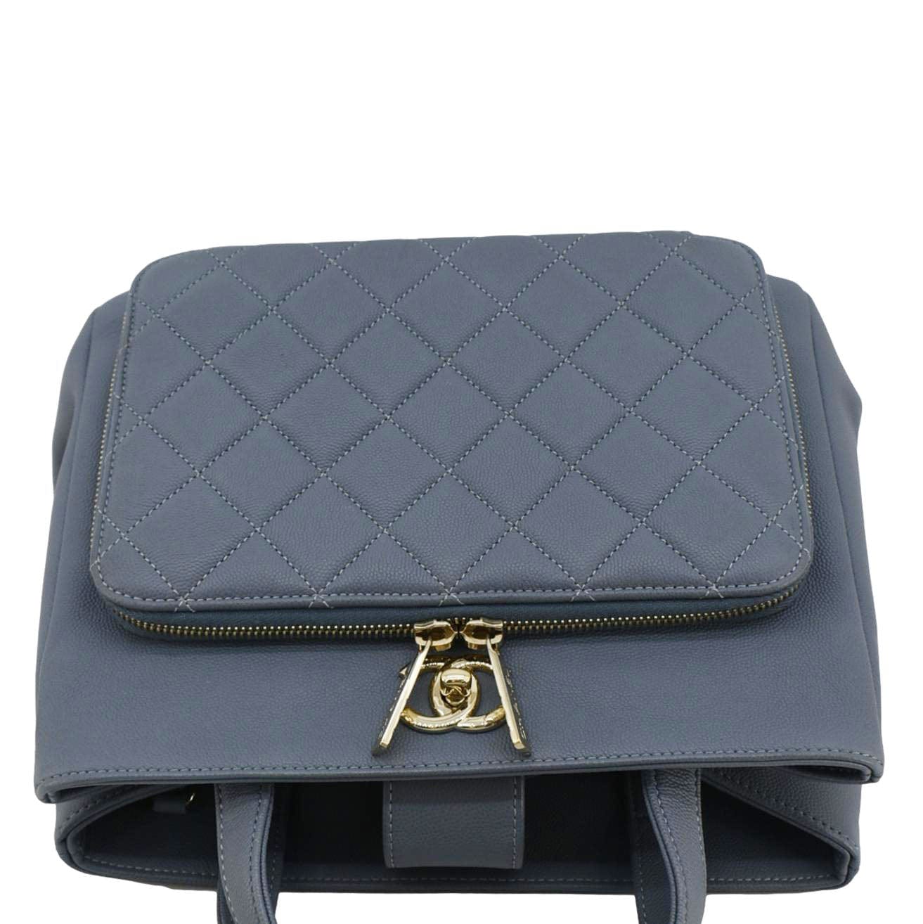 The CHANEL Business Affinity Quilted Caviar Leather Shopping Tote Bag in Light Blue features luxurious quilted caviar leather and a spacious, elegant design. Perfect for both everyday use and business occasions.