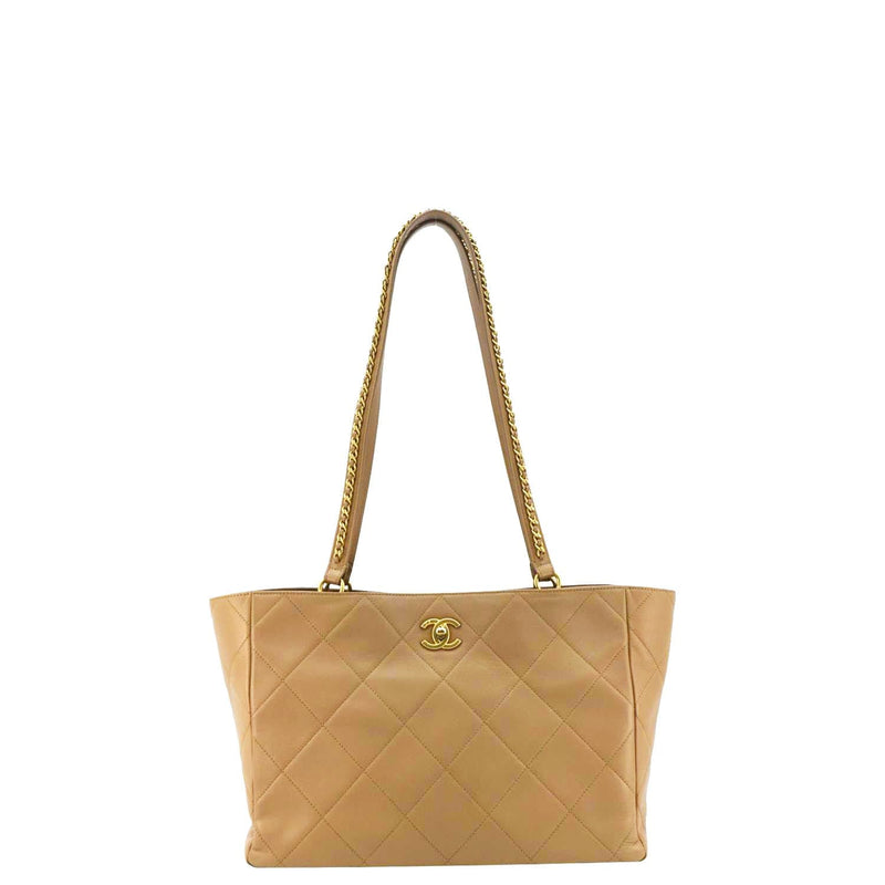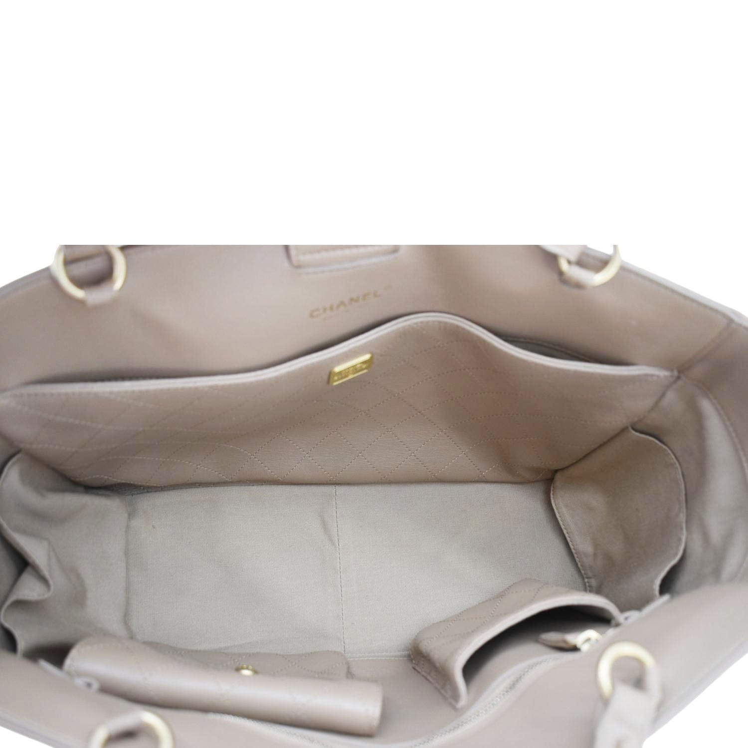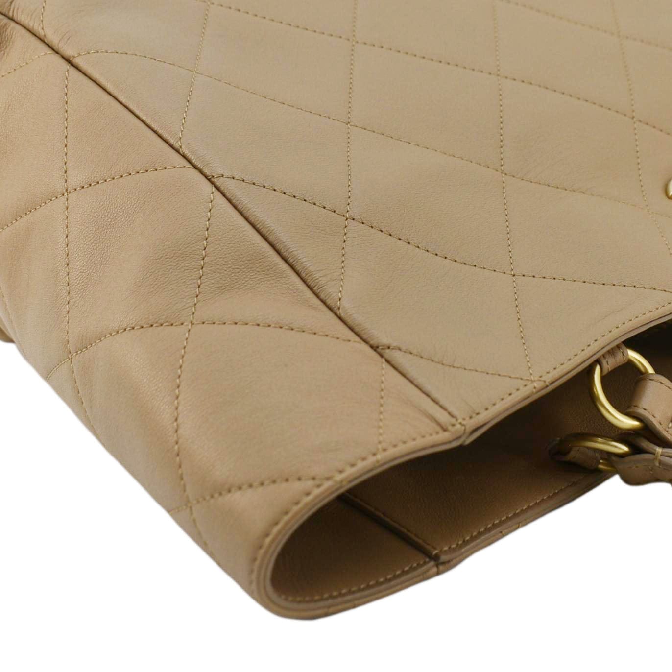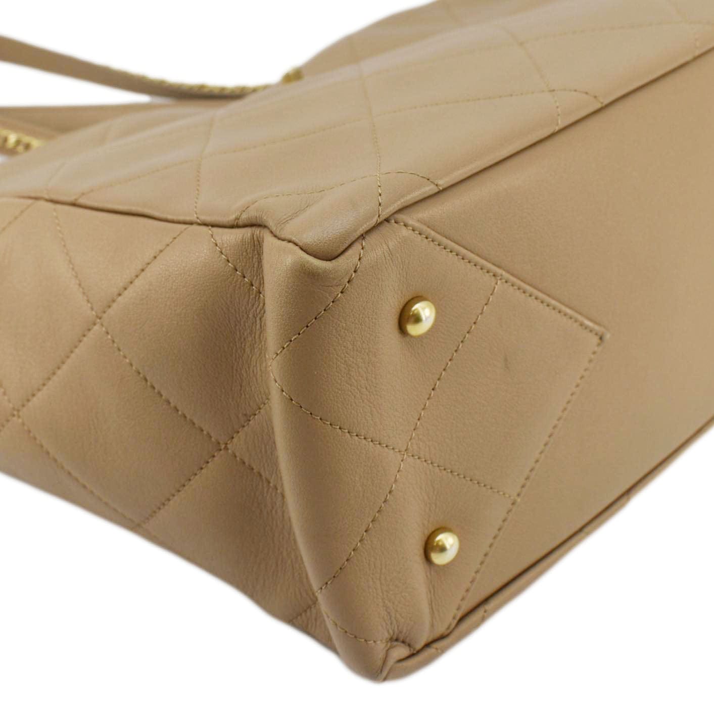 CHANEL Quilted Leather Shopping Tote Bag Beige