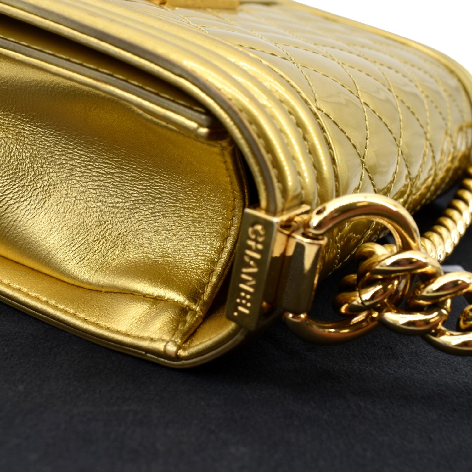 Small Boy CC Chain Leather Shoulder Bag Metallic Gold