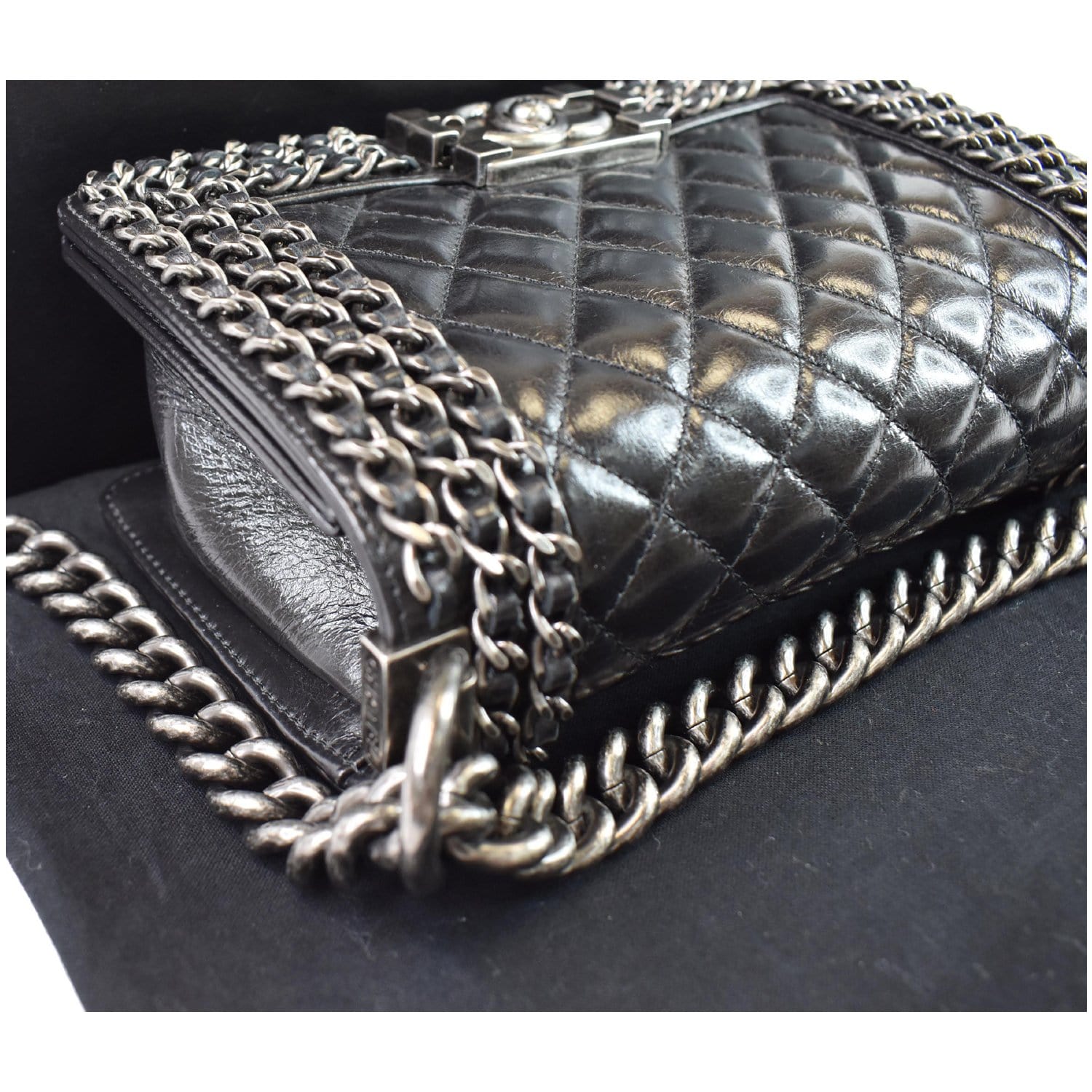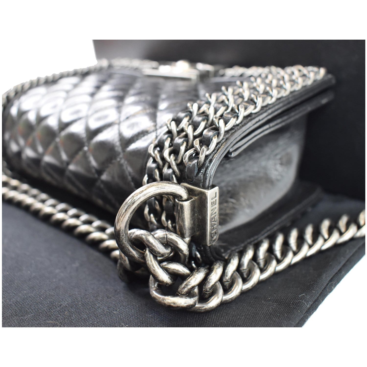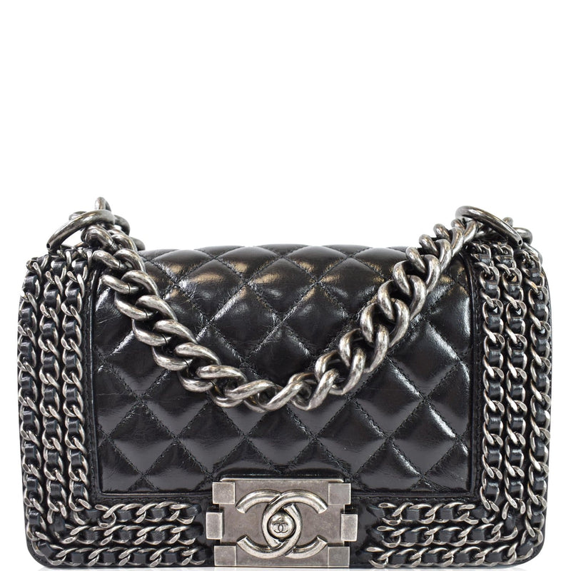 Chanel Small Boy Embellished Chain Lambskin Shoulder Handbag