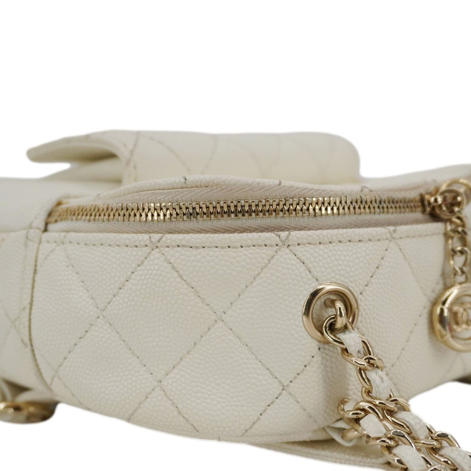 CHANEL CC Day Small Caviar Quilted Leather Backpack White