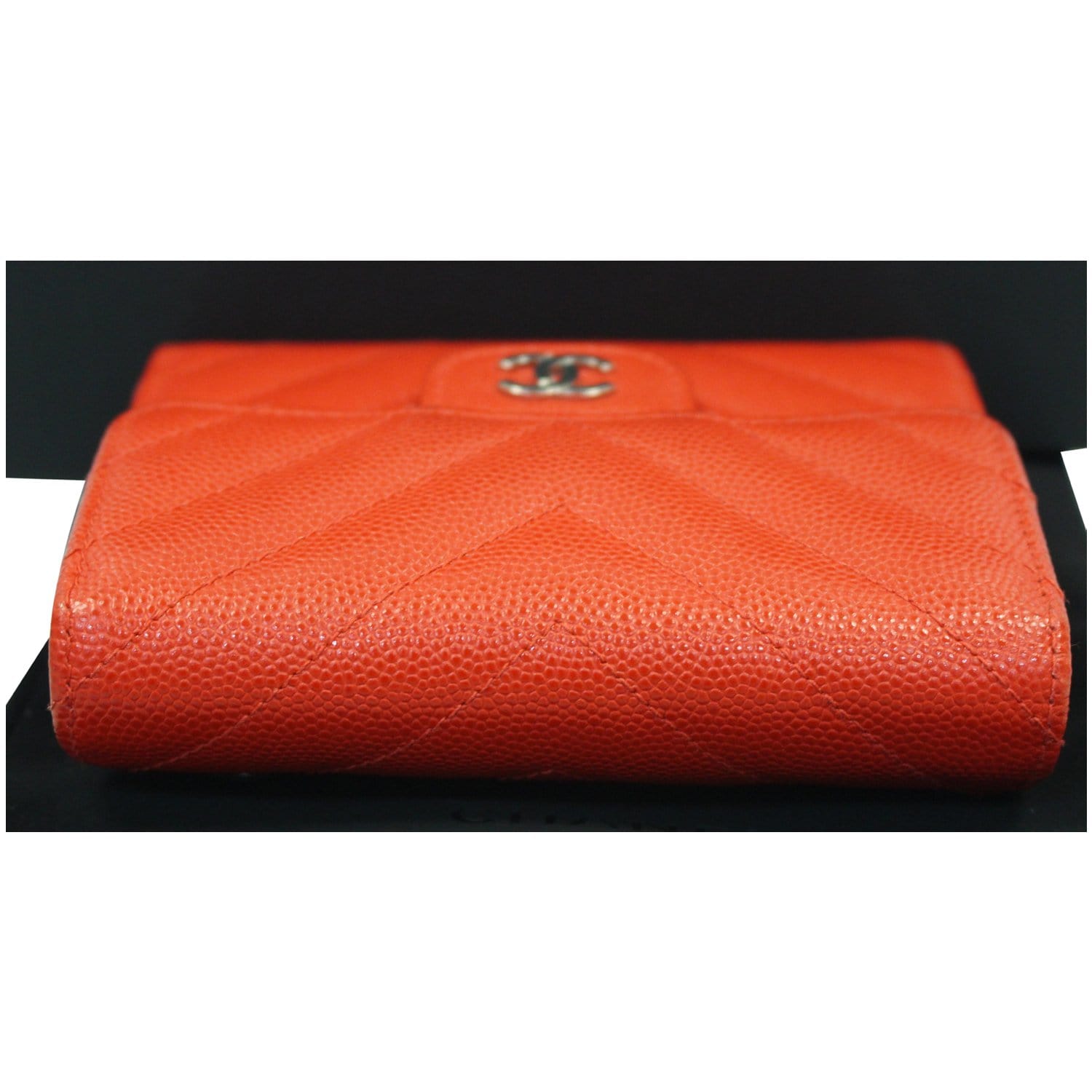CHANEL Small Chevron Quilted Caviar Compact Flap Wallet Red