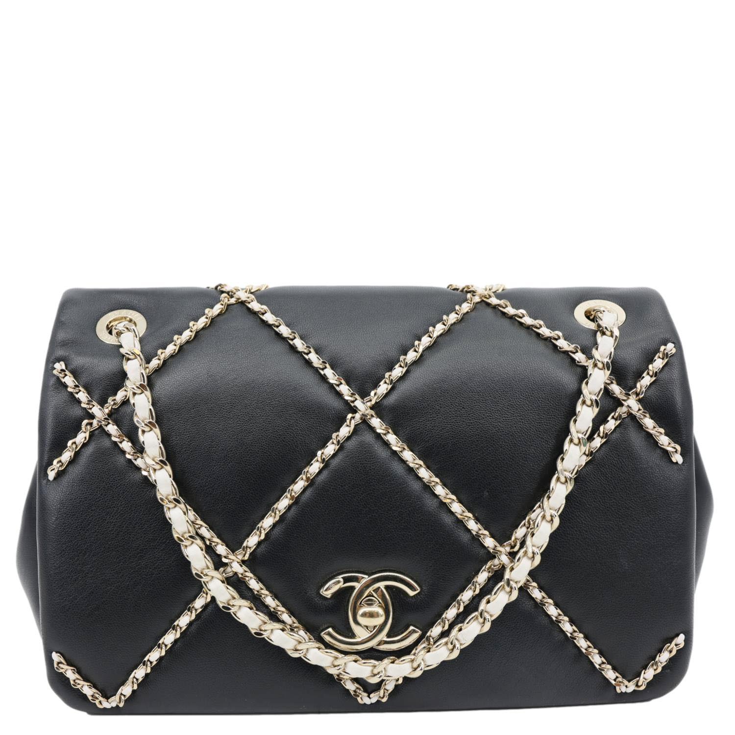 CHANEL Entwined Flap Small Lambskin Leather Chain Crossbody Black