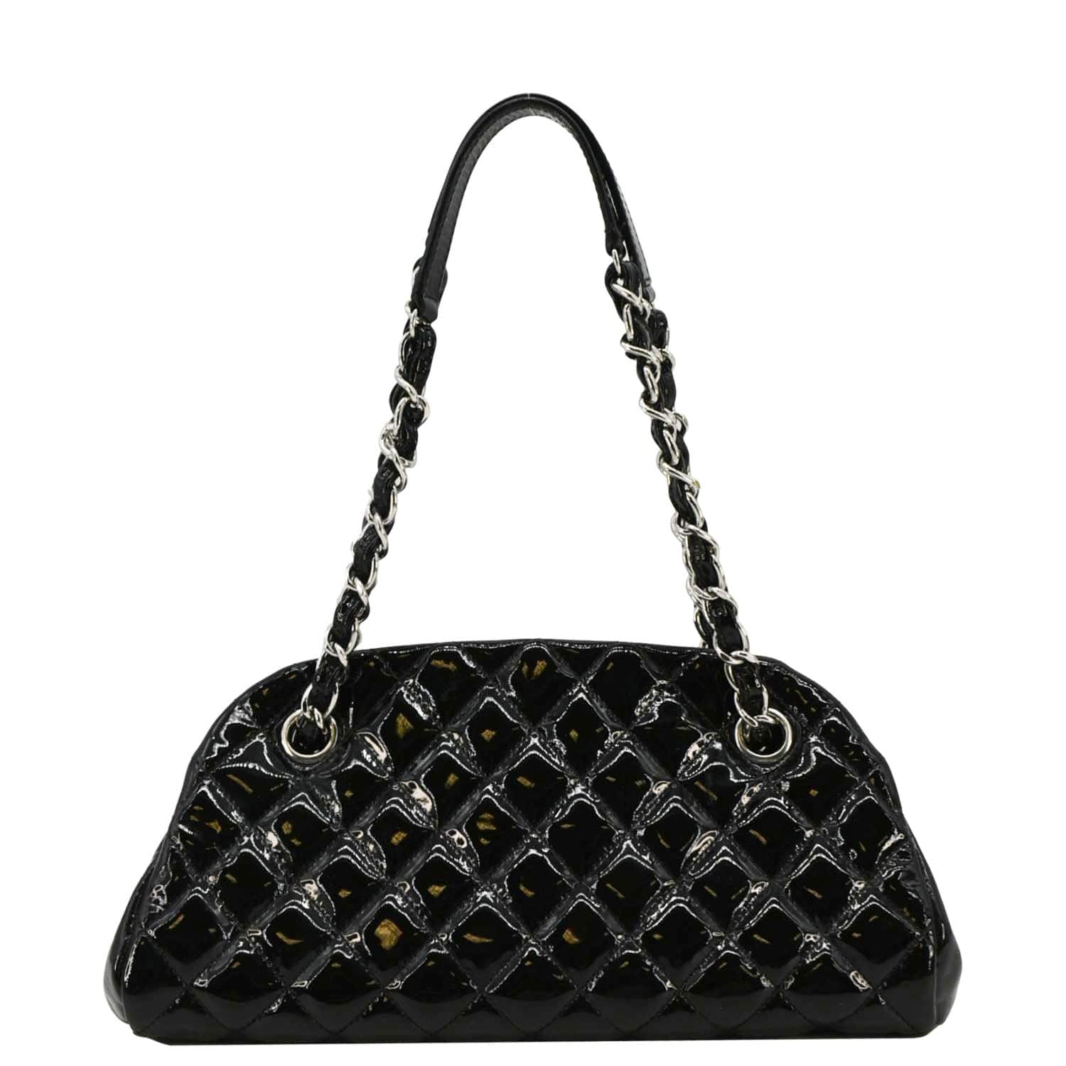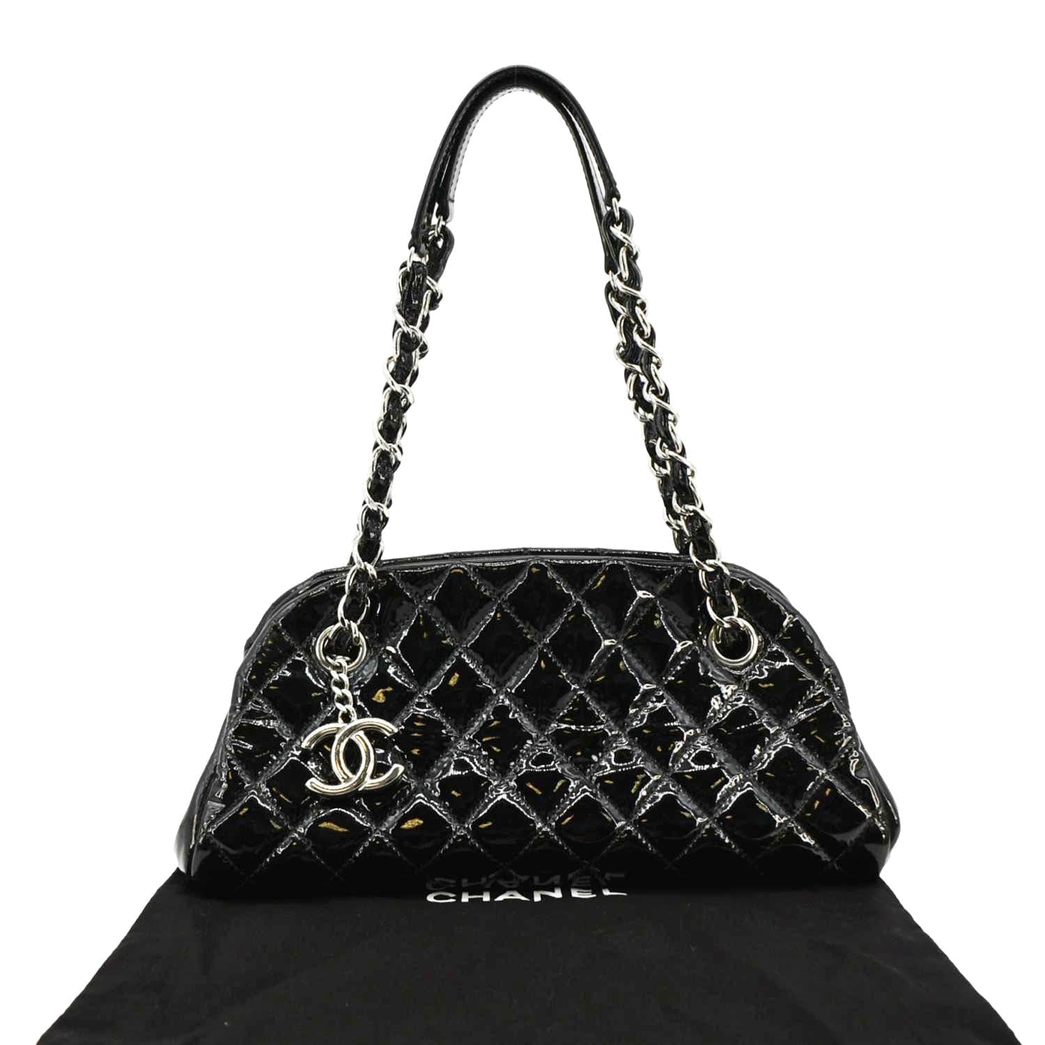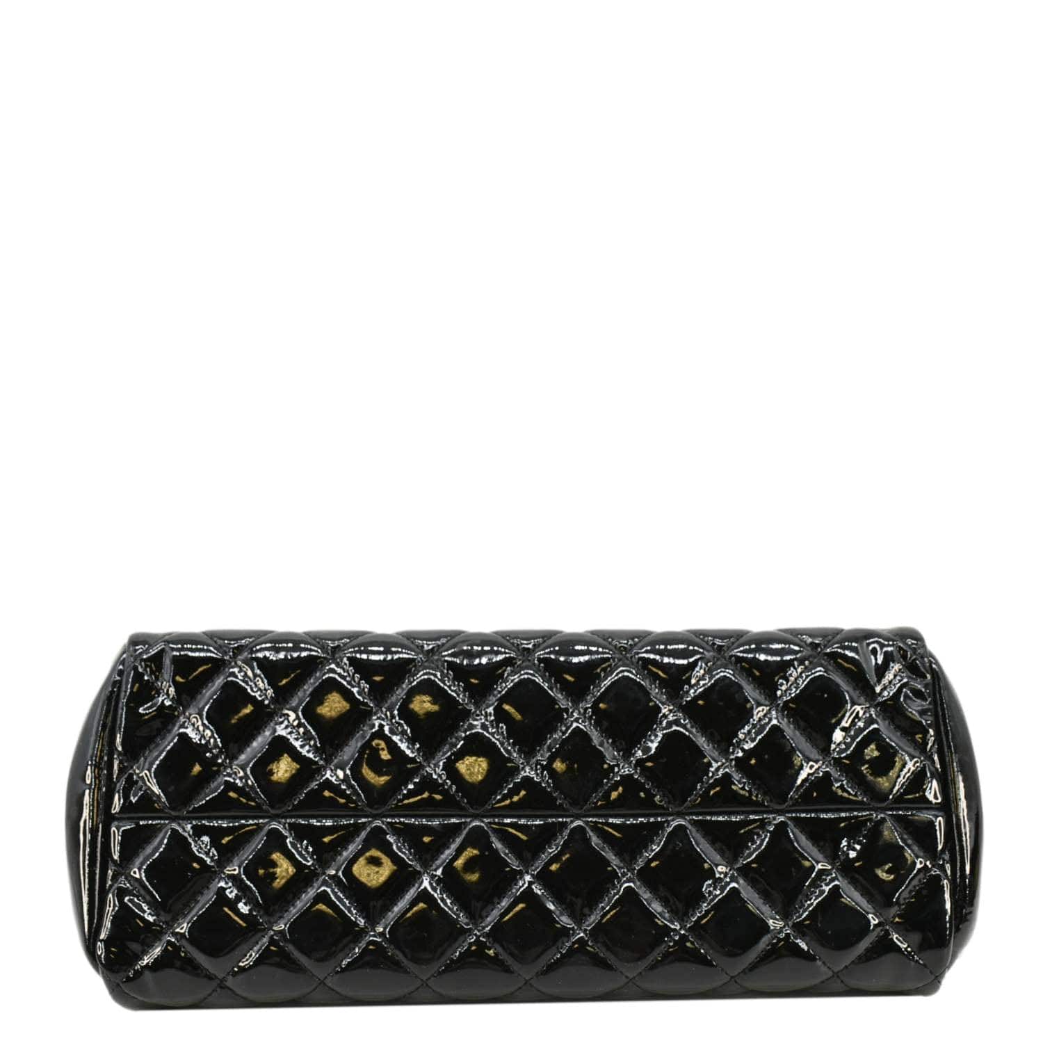 CHANEL Just Mademoiselle Bowling Small Quilted Patent Leather Shoulder Bag Black