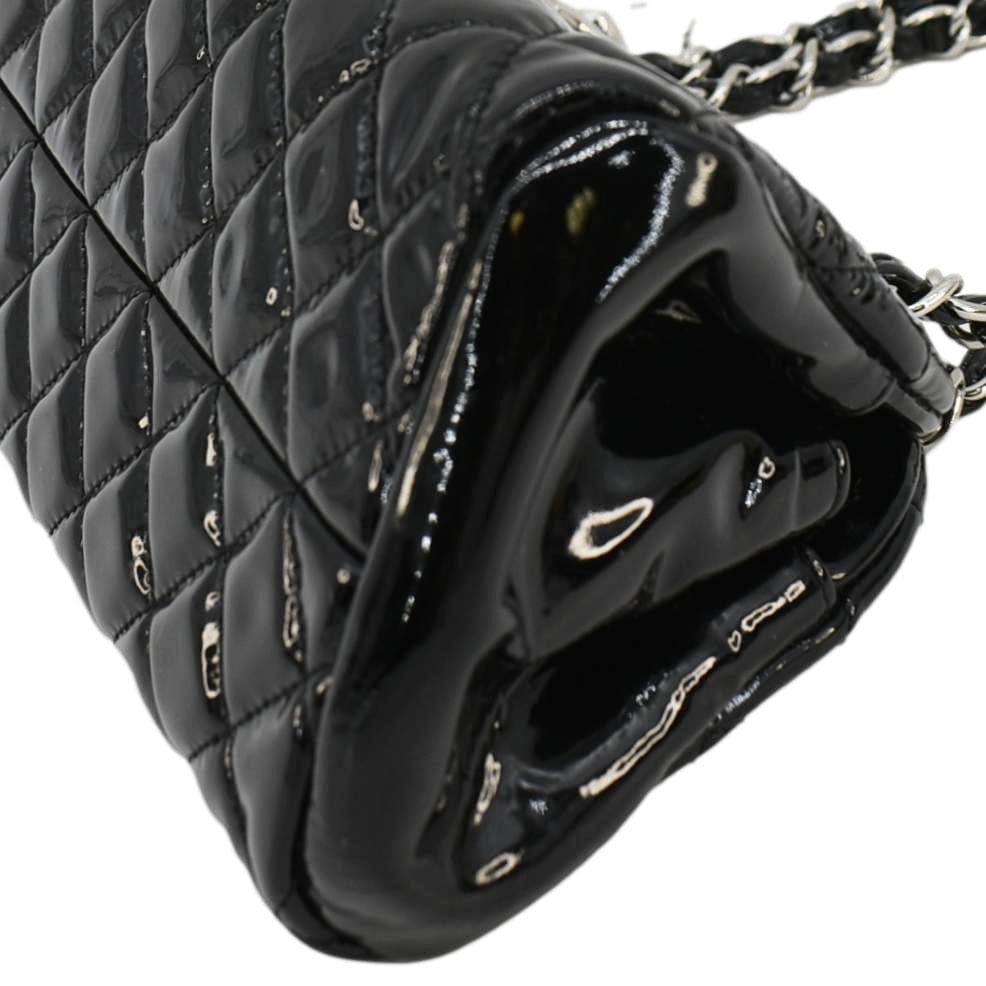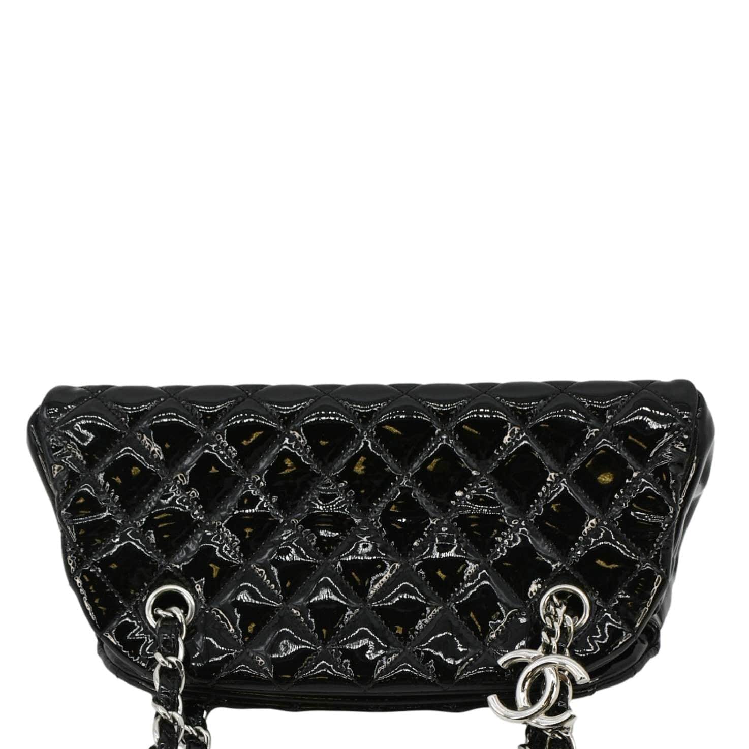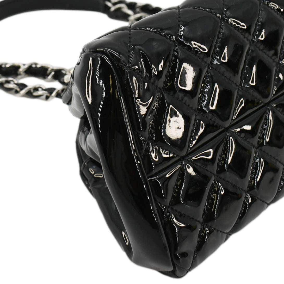 CHANEL Just Mademoiselle Bowling Small Quilted Patent Leather Shoulder Bag Black