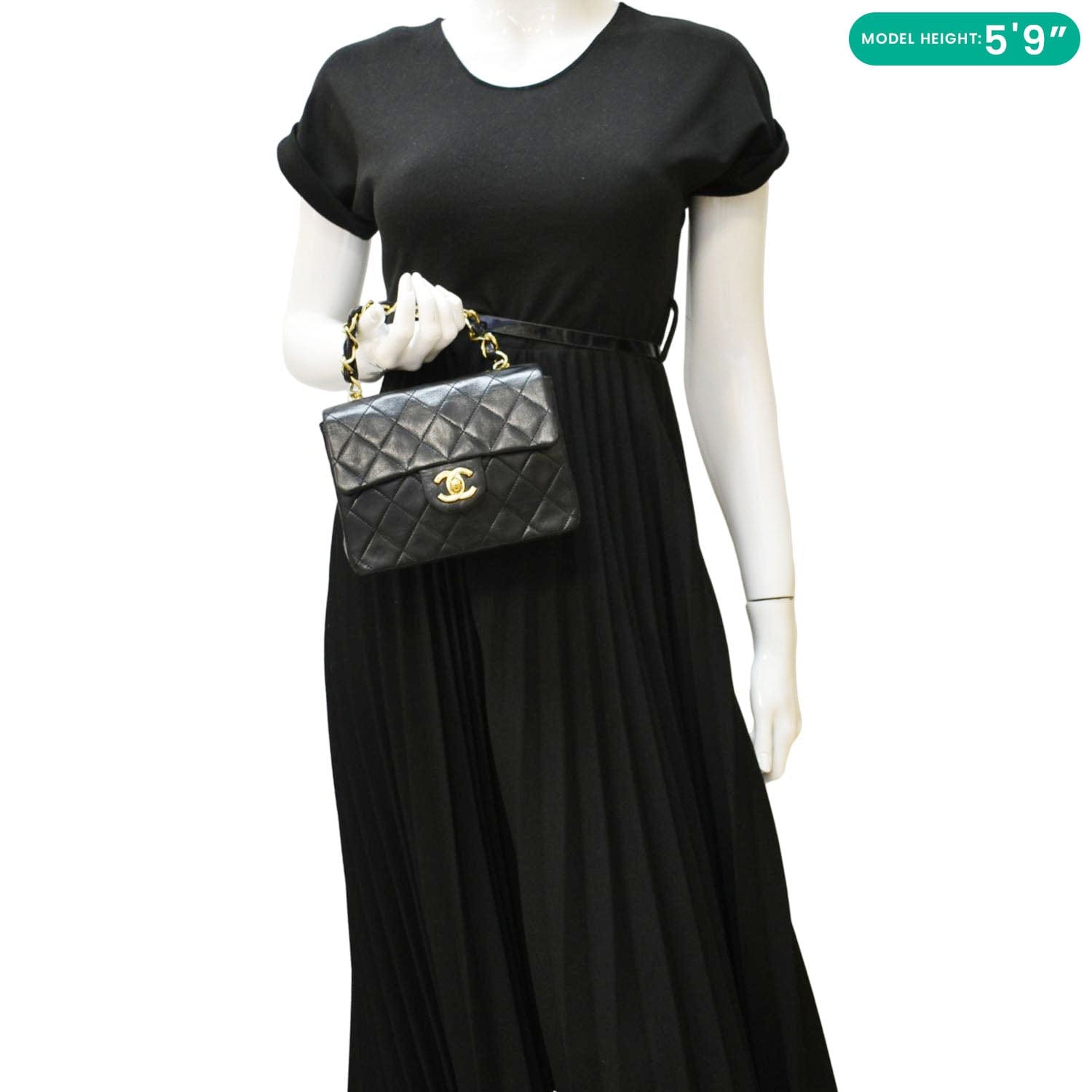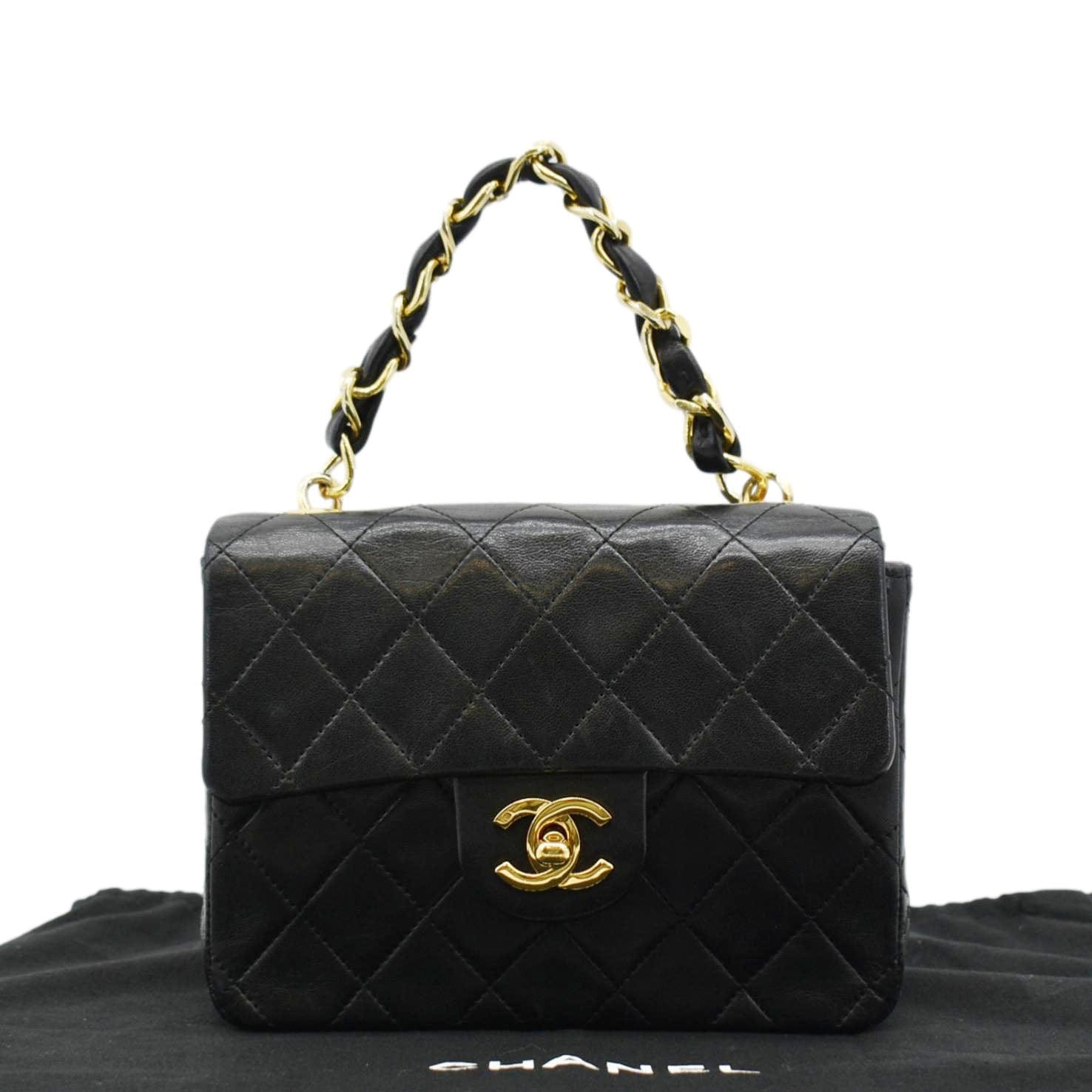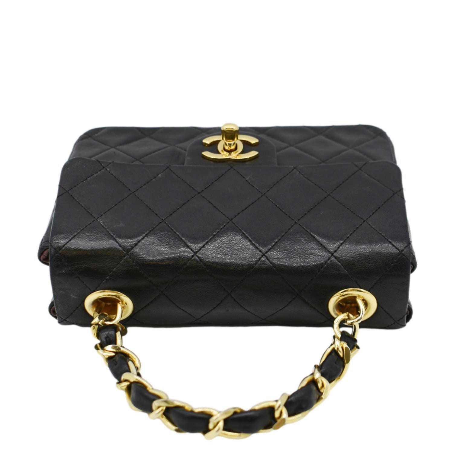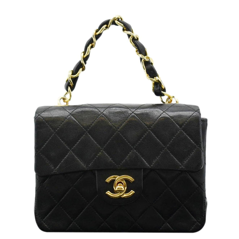 CHANEL Square Mini Flap Quilted Leather Chain Shoulder Bag Black