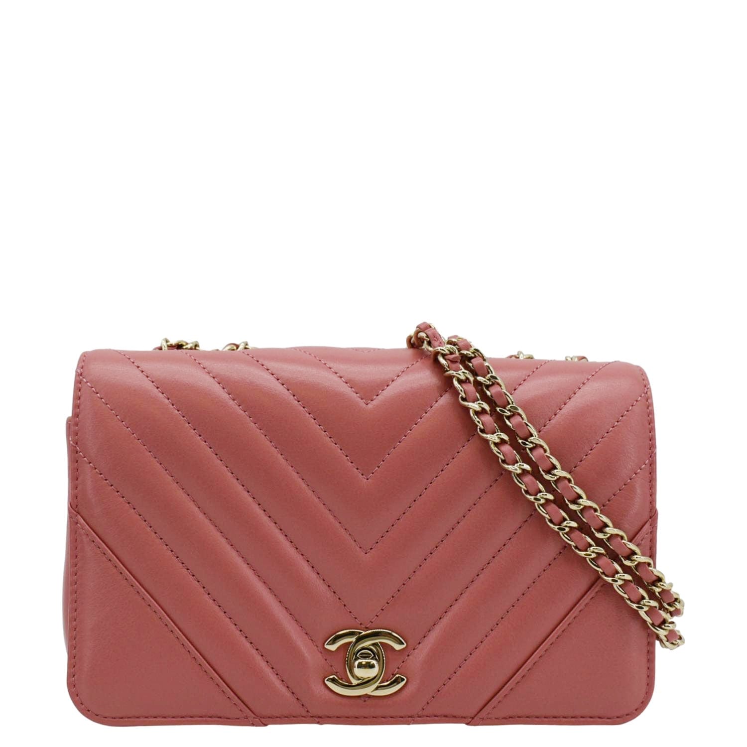 CHANEL Statement Flap Mini Quilted Chevron Crossbody Bag Pink