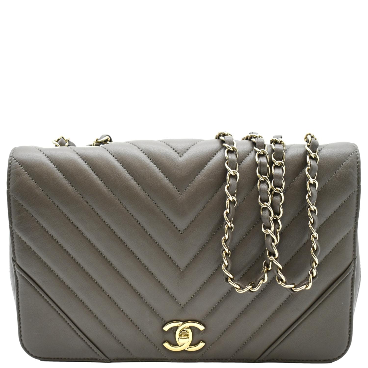 CHANEL Statement Medium Flap Quilted Chevron Crossbody Bag Khaki