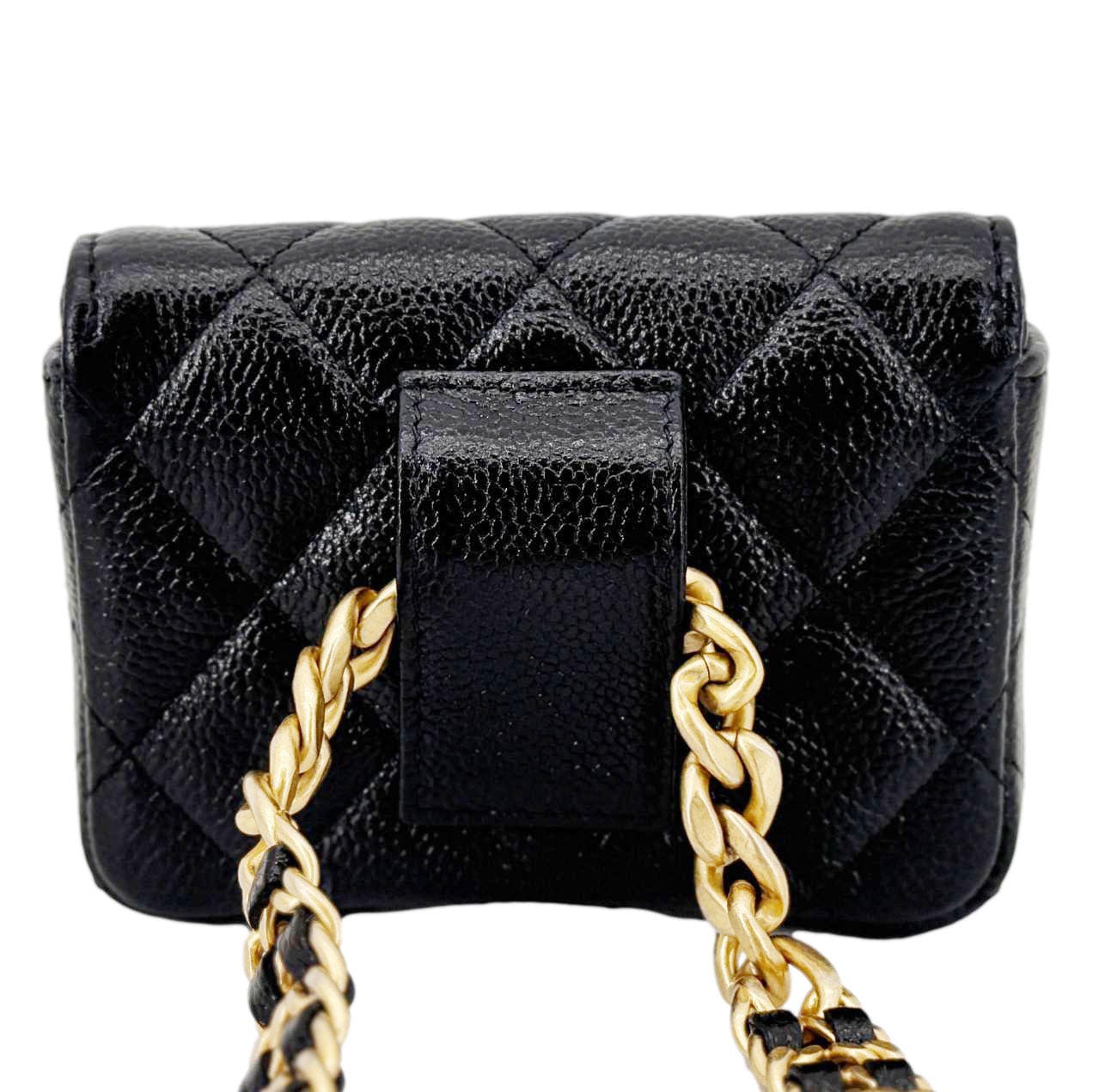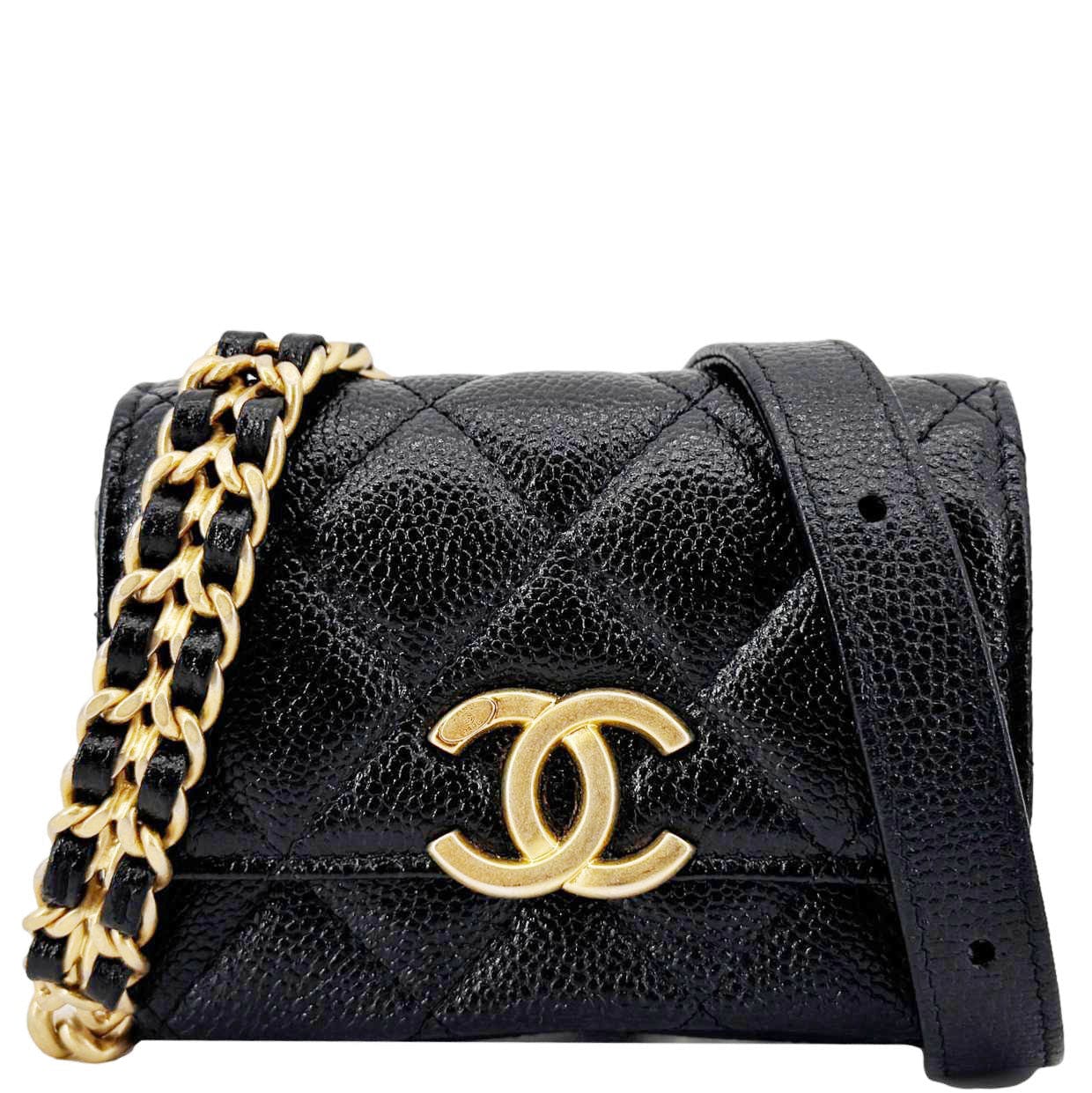 Sweetheart CC Chain Quilted Caviar Leather Belt Bag Black