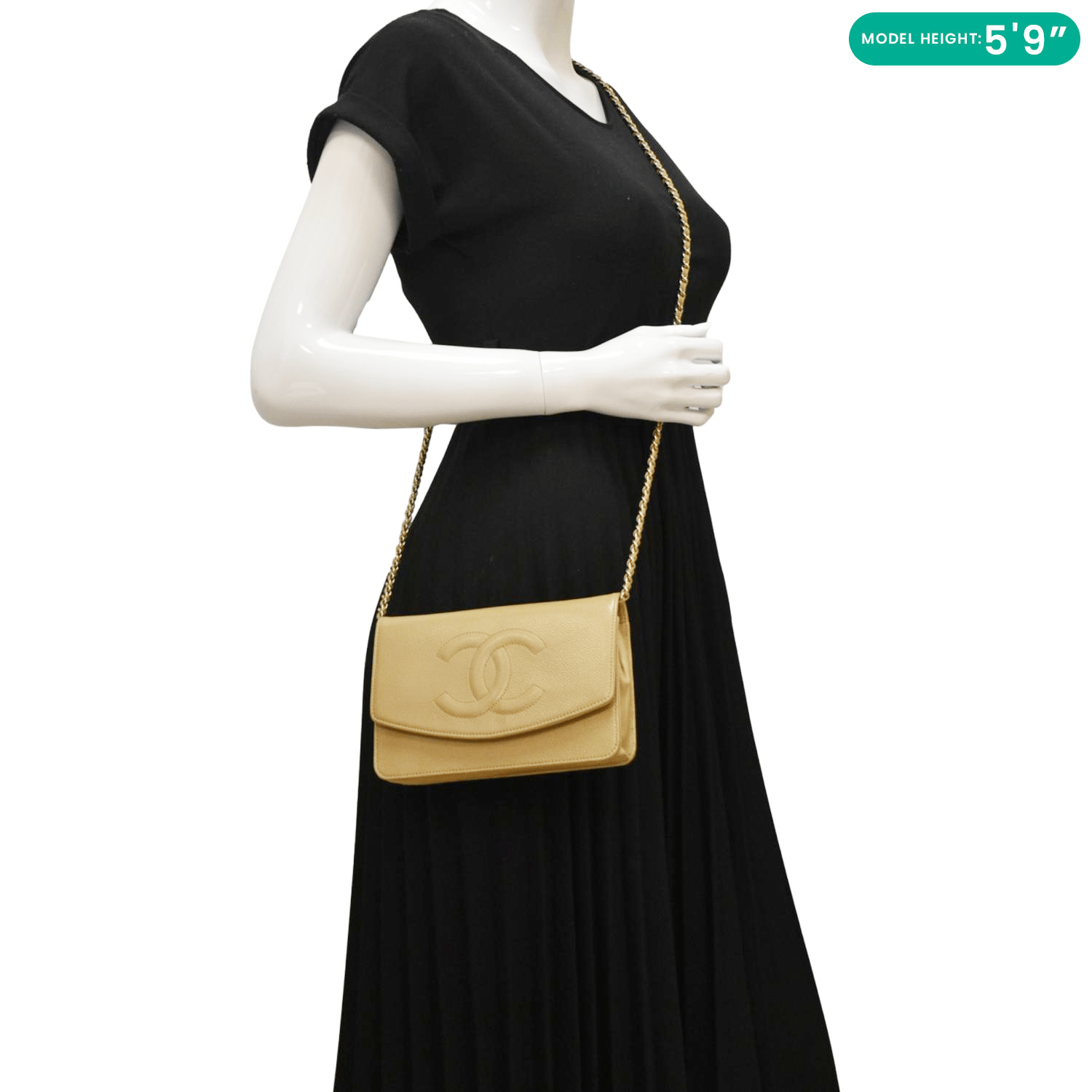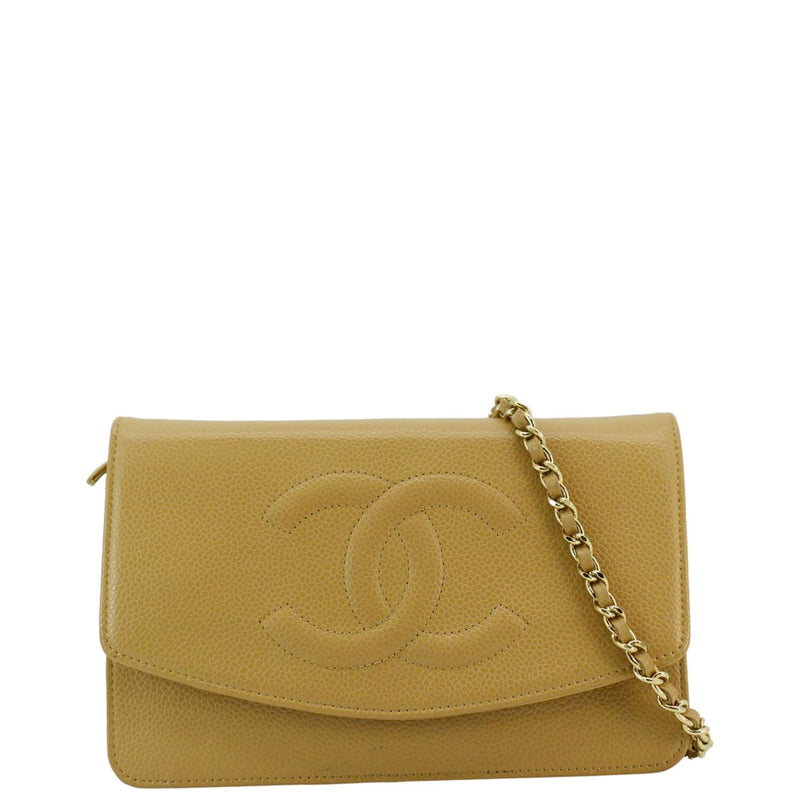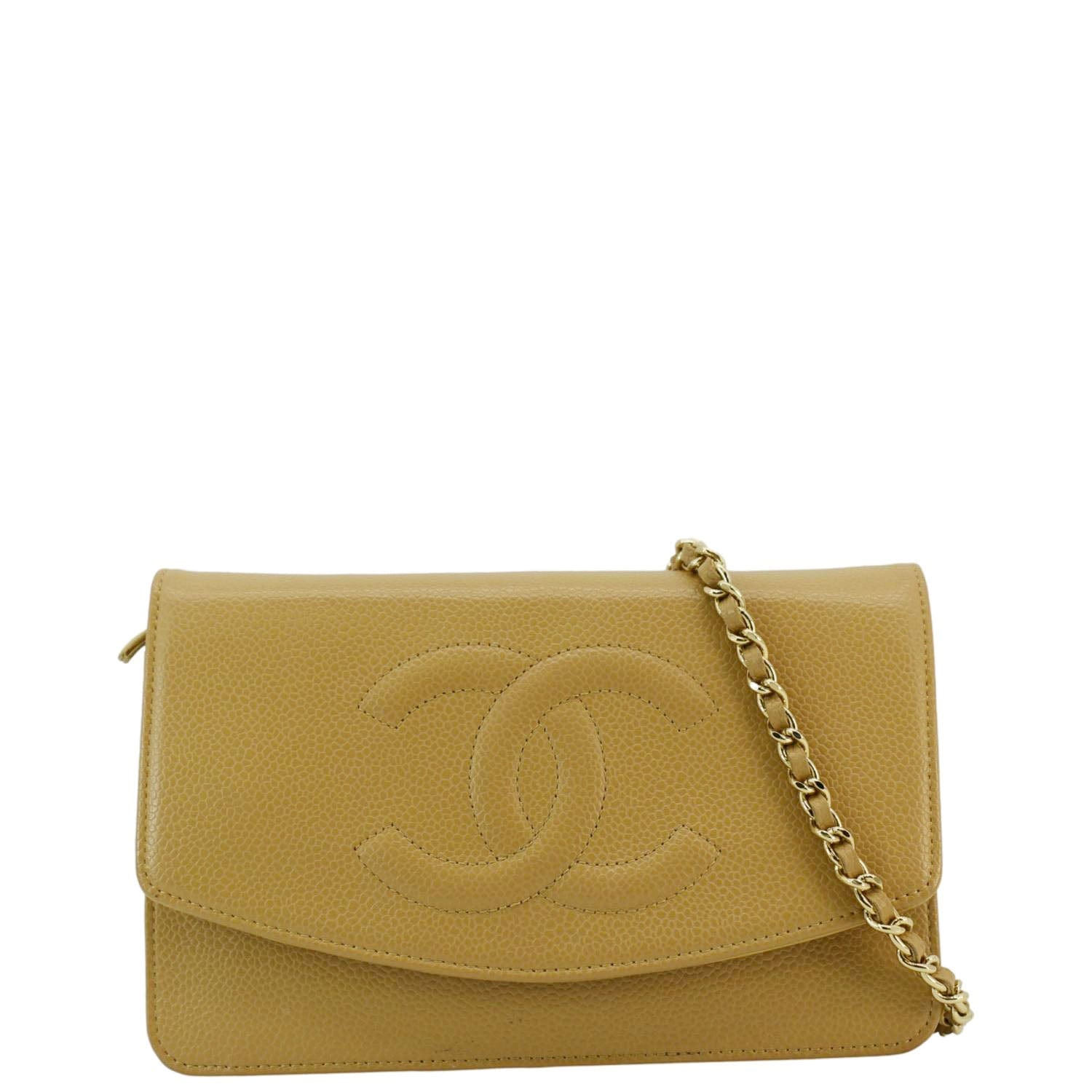 CHANEL Timeless Caviar Leather Wallet On Chain Clutch Crossbody Bag Beige
