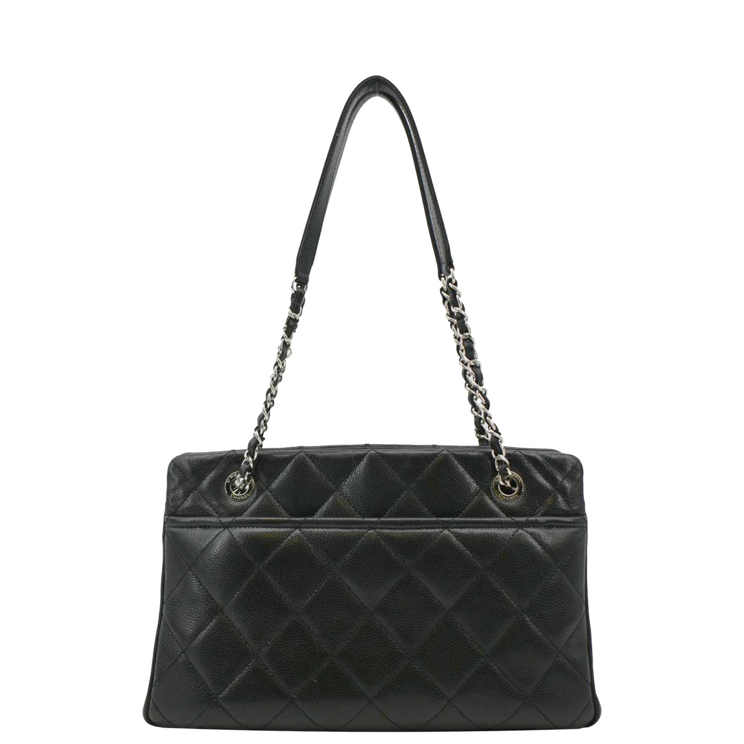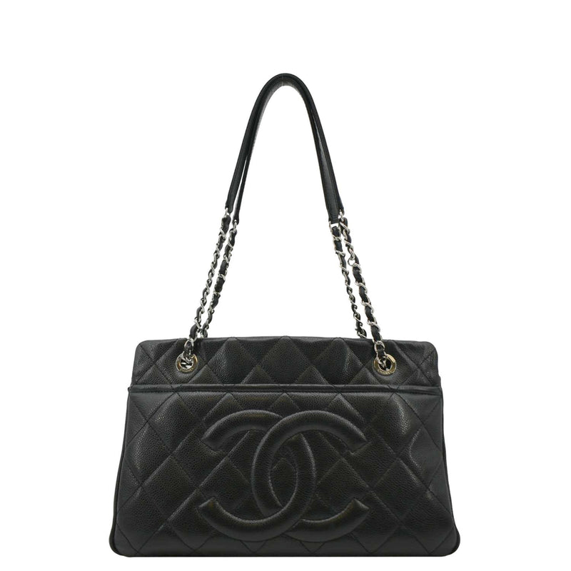 Timeless CC Soft Quilted Caviar Leather Shopping Tote Bag Black