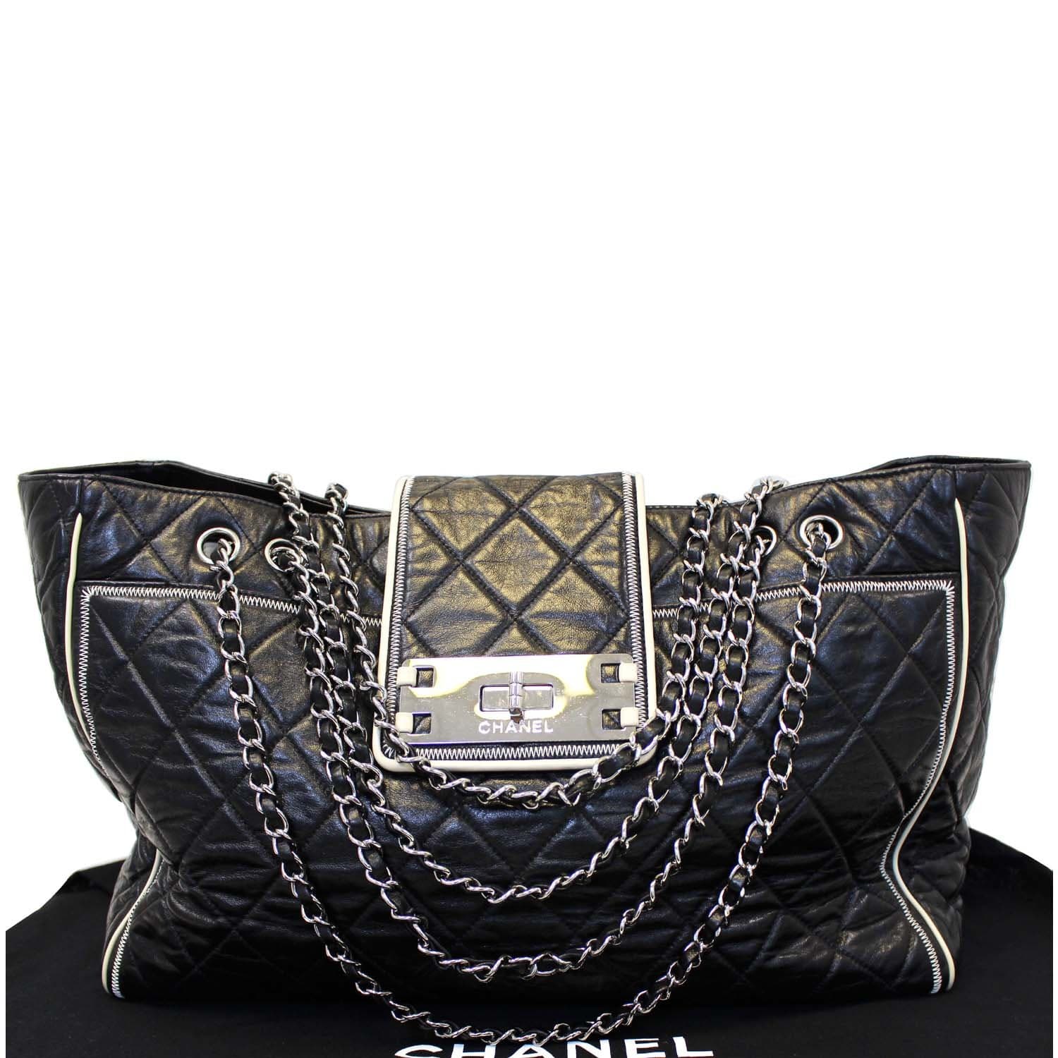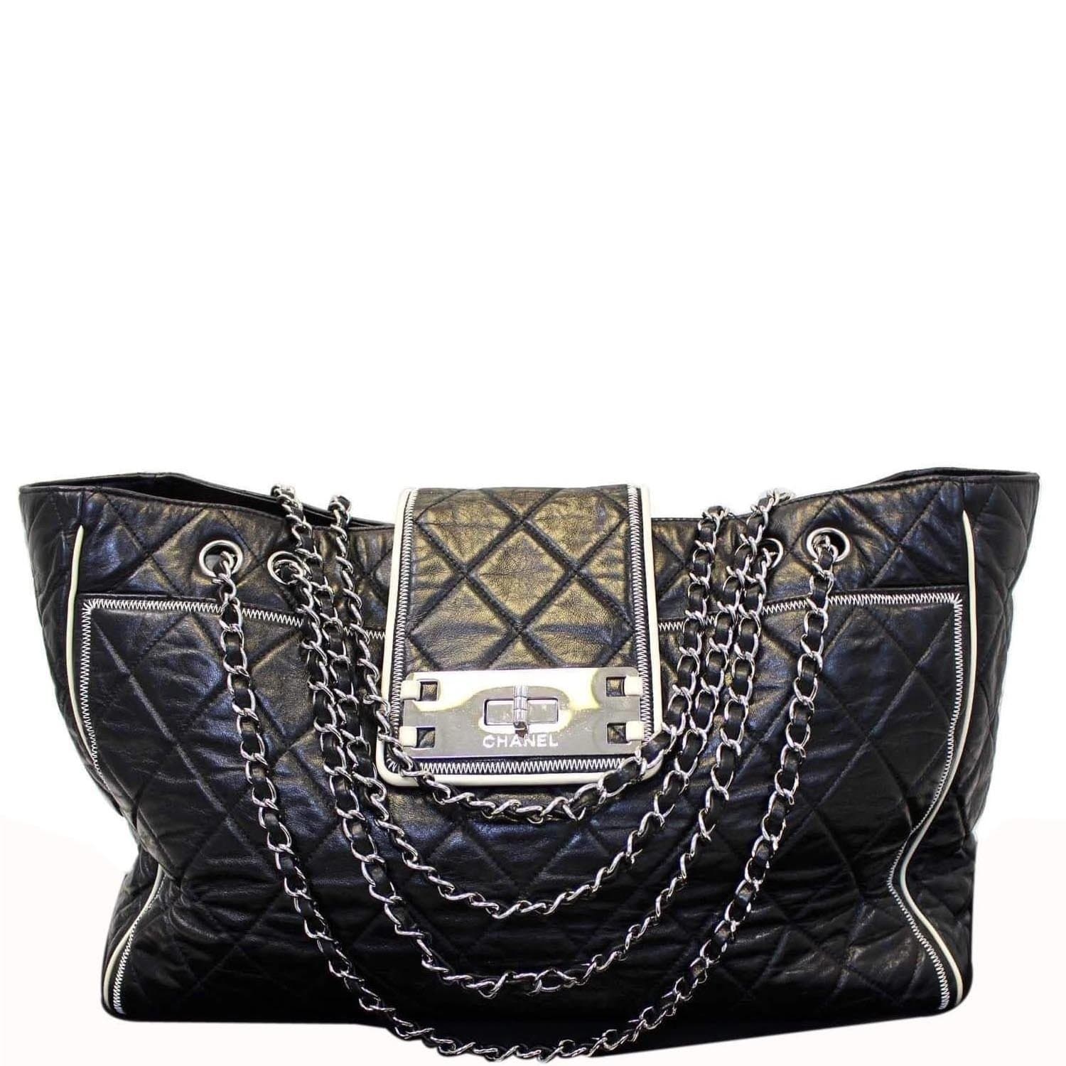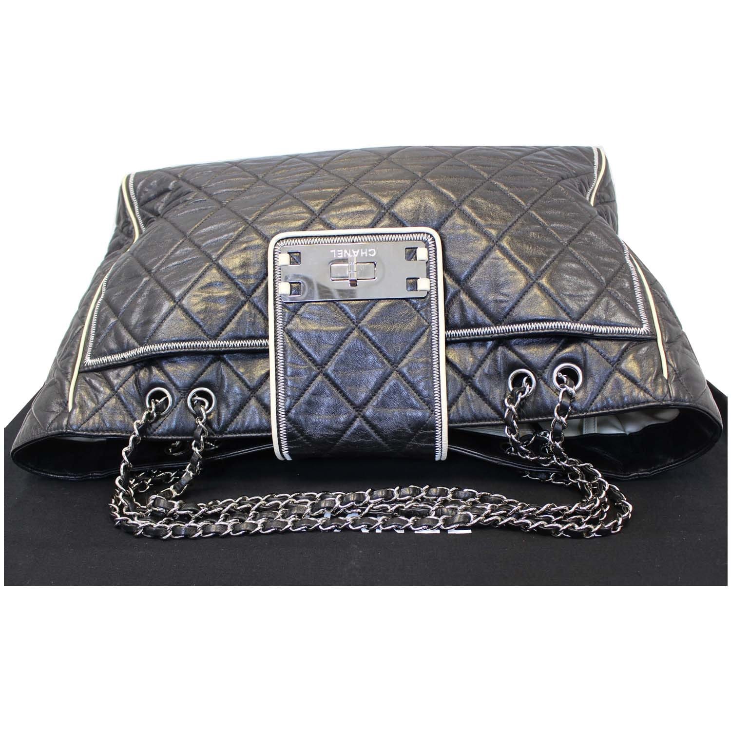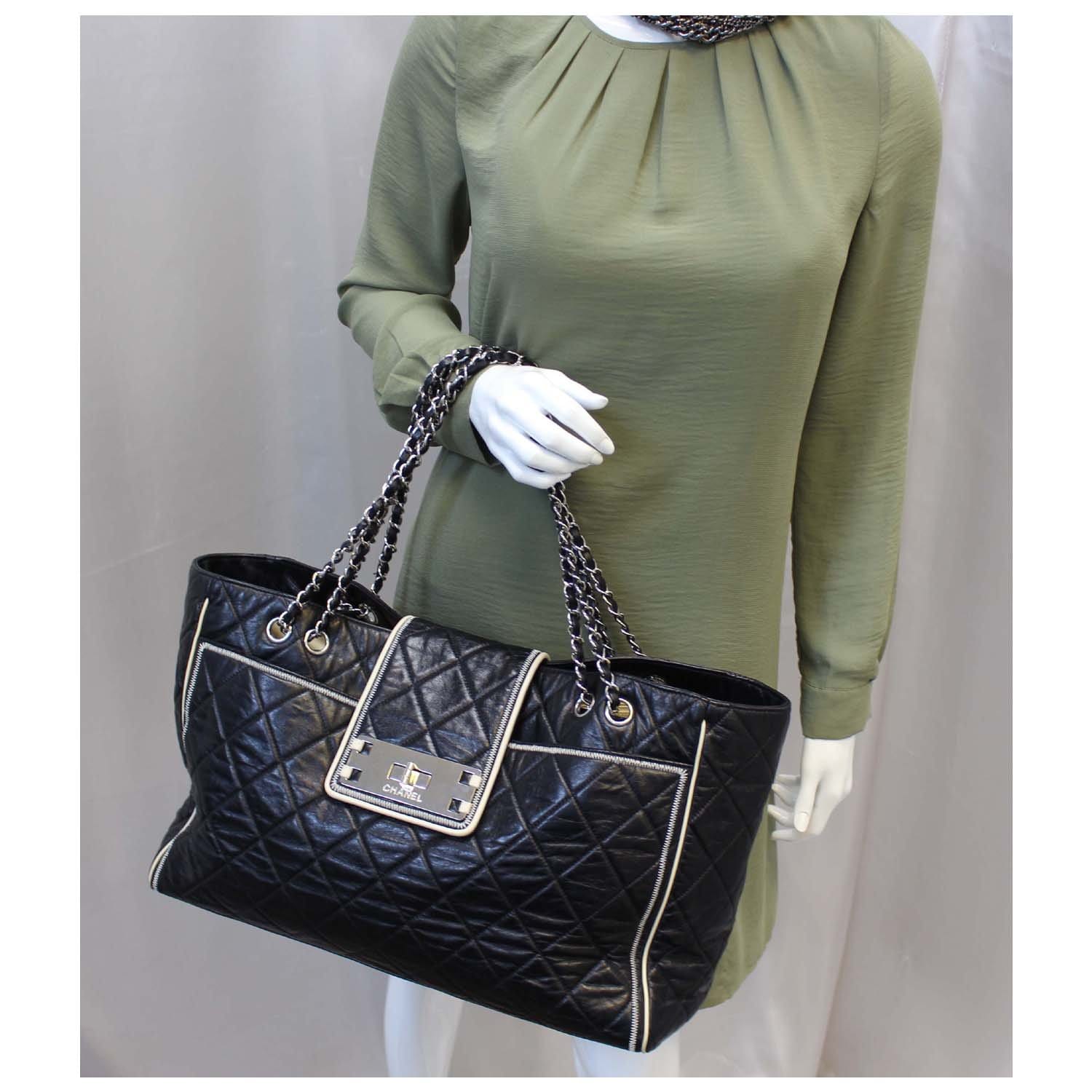 CHANEL East West Large Lambskin Quilted Leather Tote Shoulder Bag Black