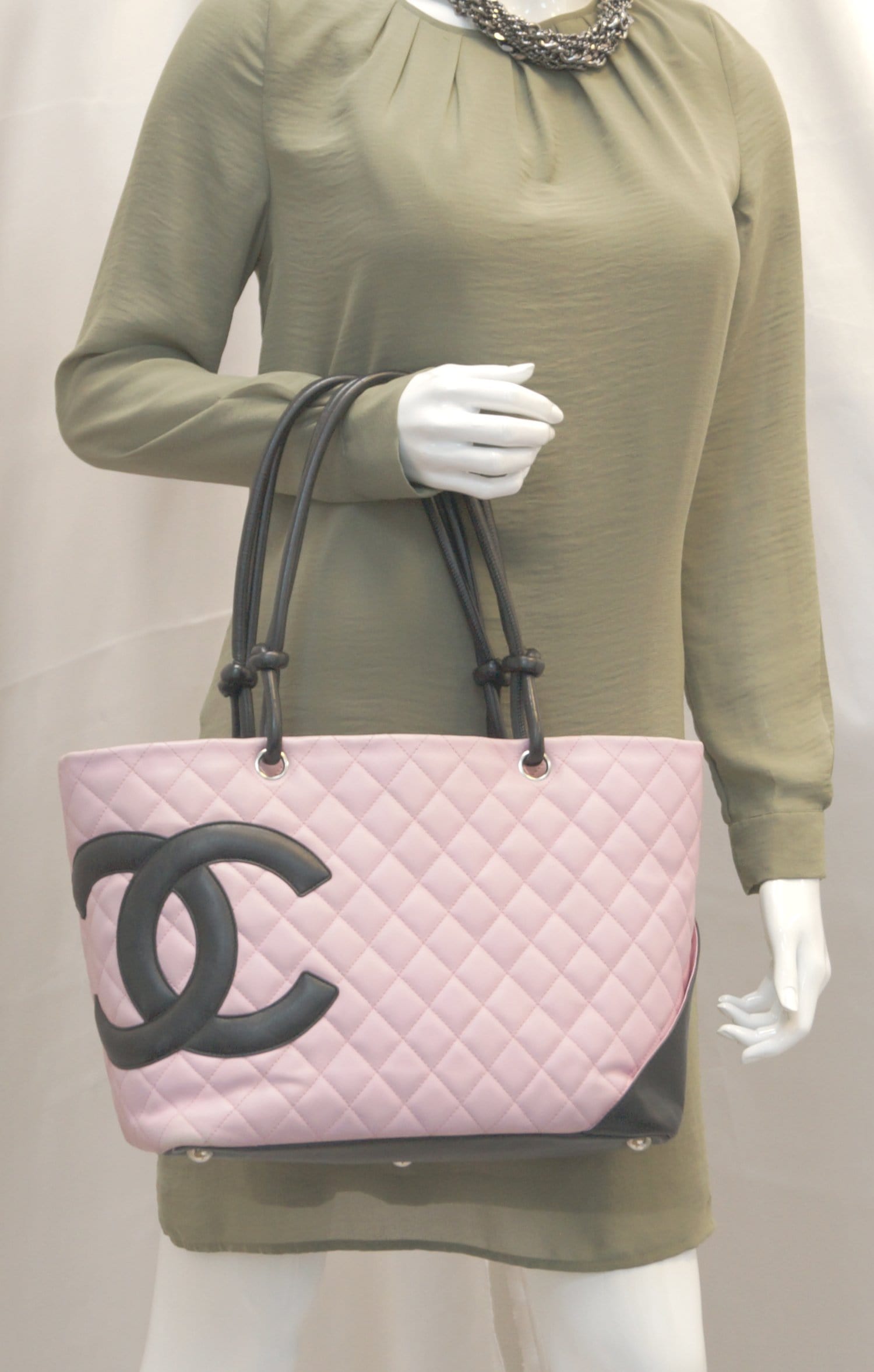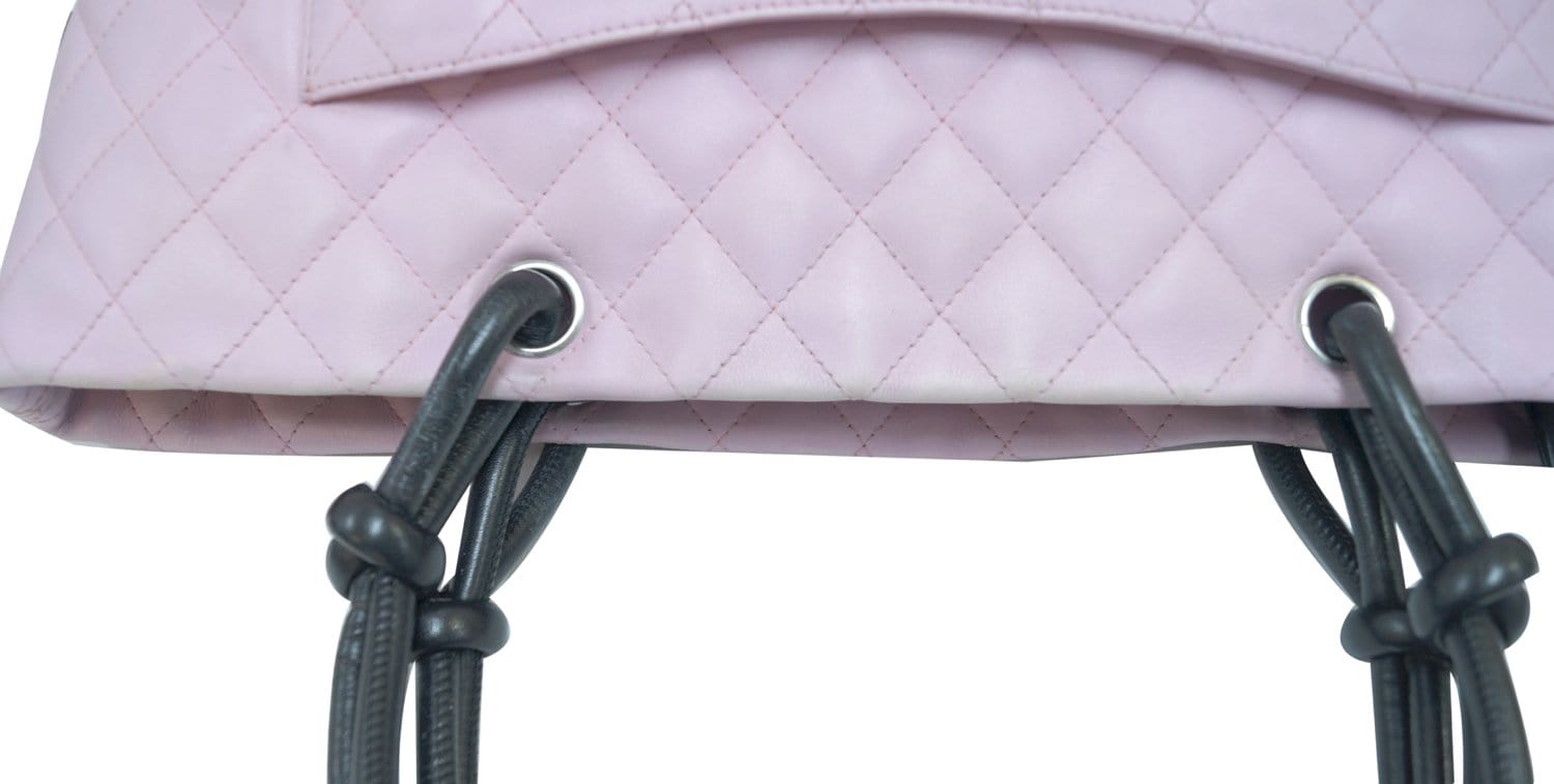 CHANEL Quilted Leather Pink/Black Cambon Tote Bag