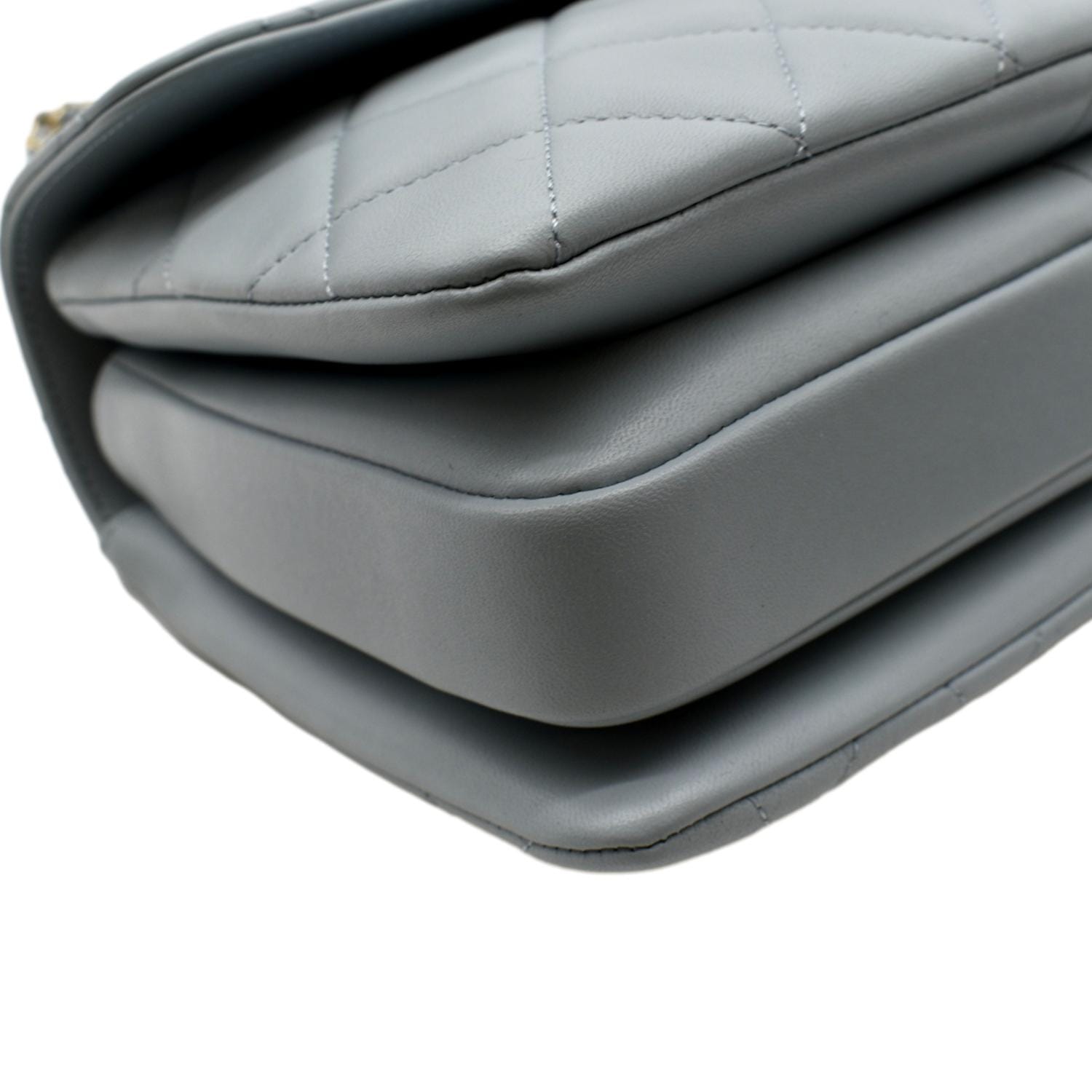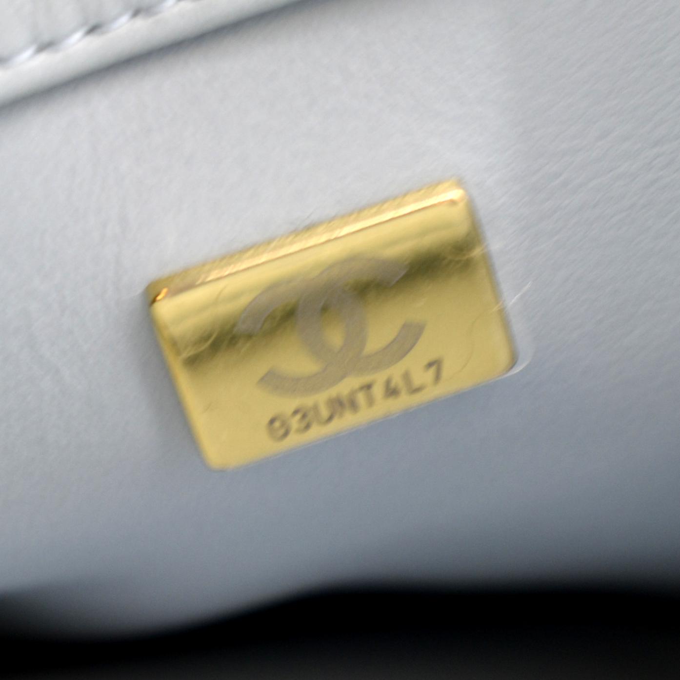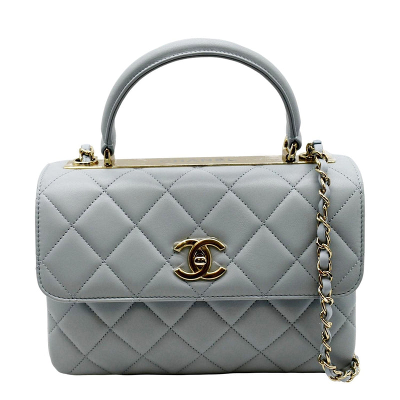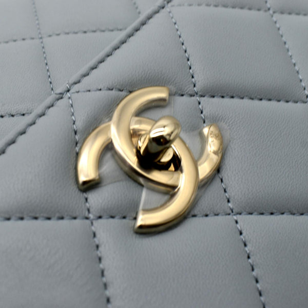 CHANEL Trendy CC Top Handle Flap Quilted Leather Shoulder Bag Light Blue