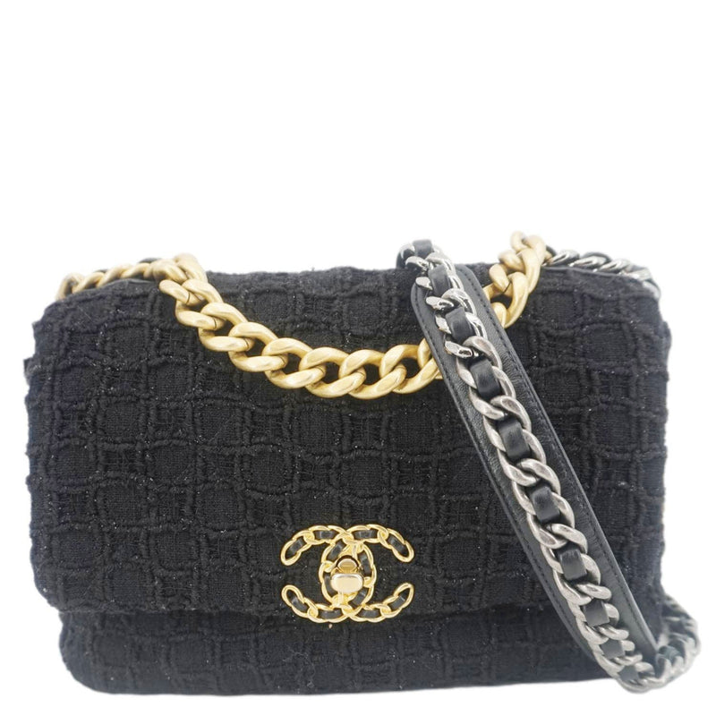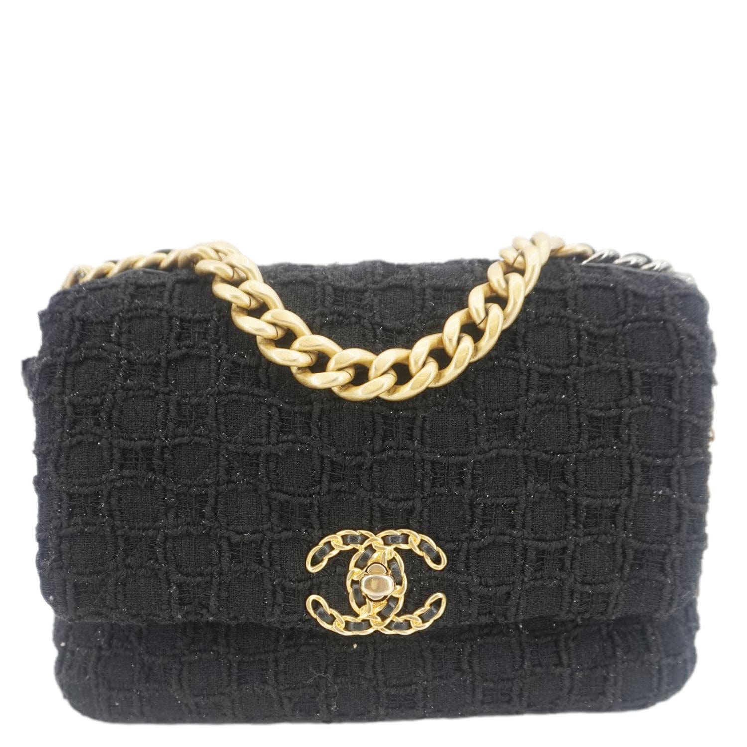 CHANEL 19 Flap Medium Tweed Shoulder Bag Black