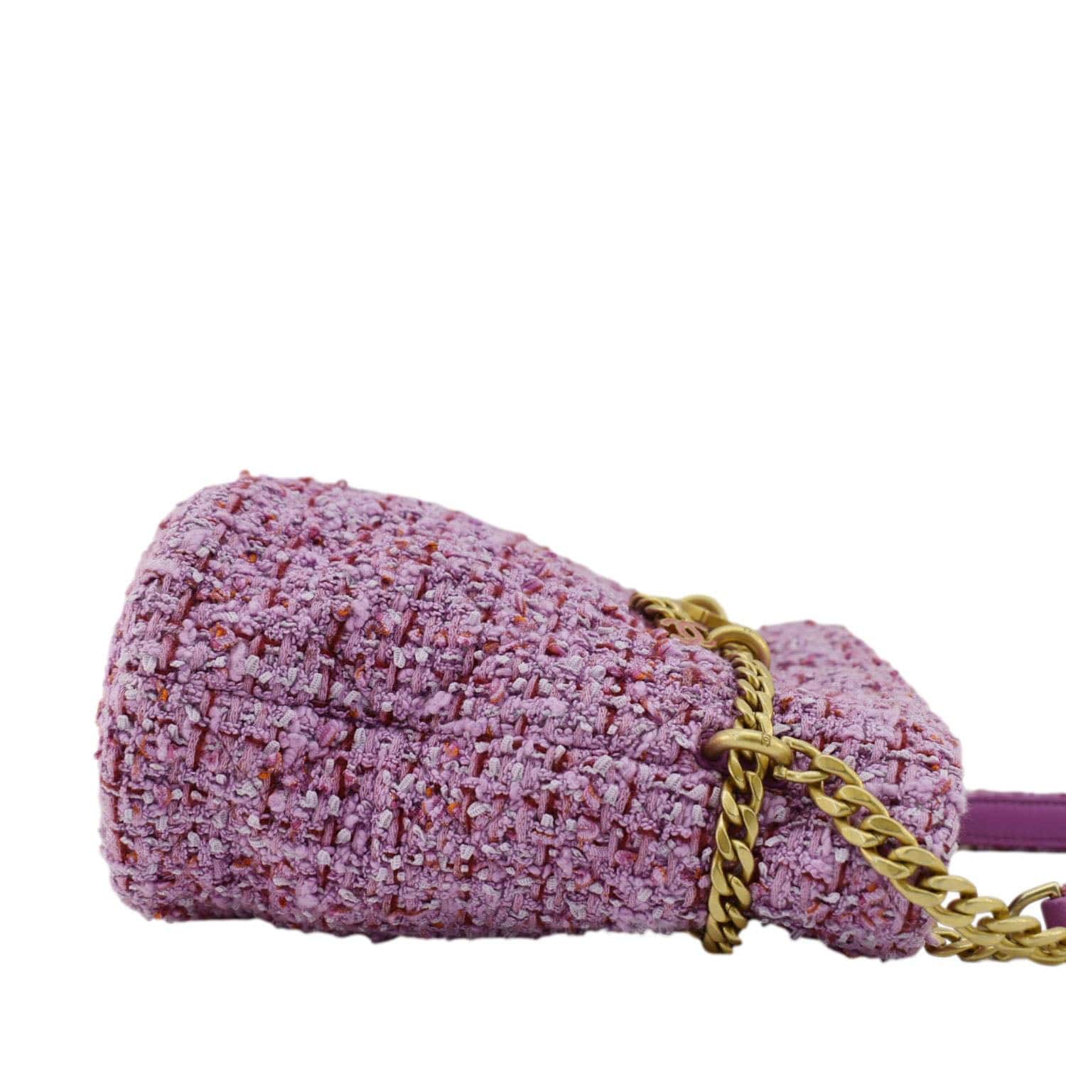 Pending CC Tweed Enamel Drawstring Tote Bucket Bag Pink