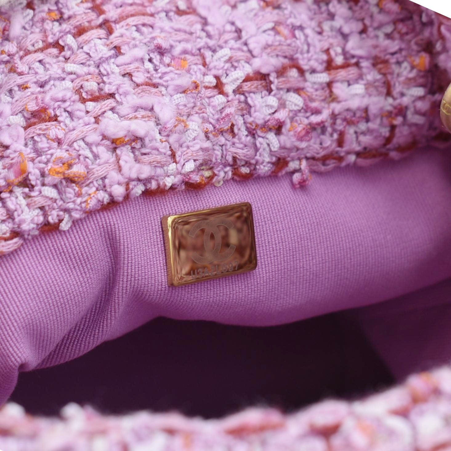 CHANEL Pending CC Tweed Enamel Drawstring Tote Bucket Bag Pink