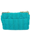The CHANEL 19 Medium Flap Shoulder Bag in Teal Quilted Tweed exudes contemporary elegance. With its signature diamond quilting, oversized CC logo, and mixed-metal chain strap, it’s a vibrant accessory perfect for elevating any look.